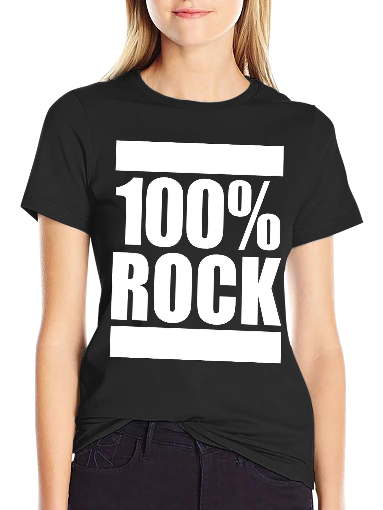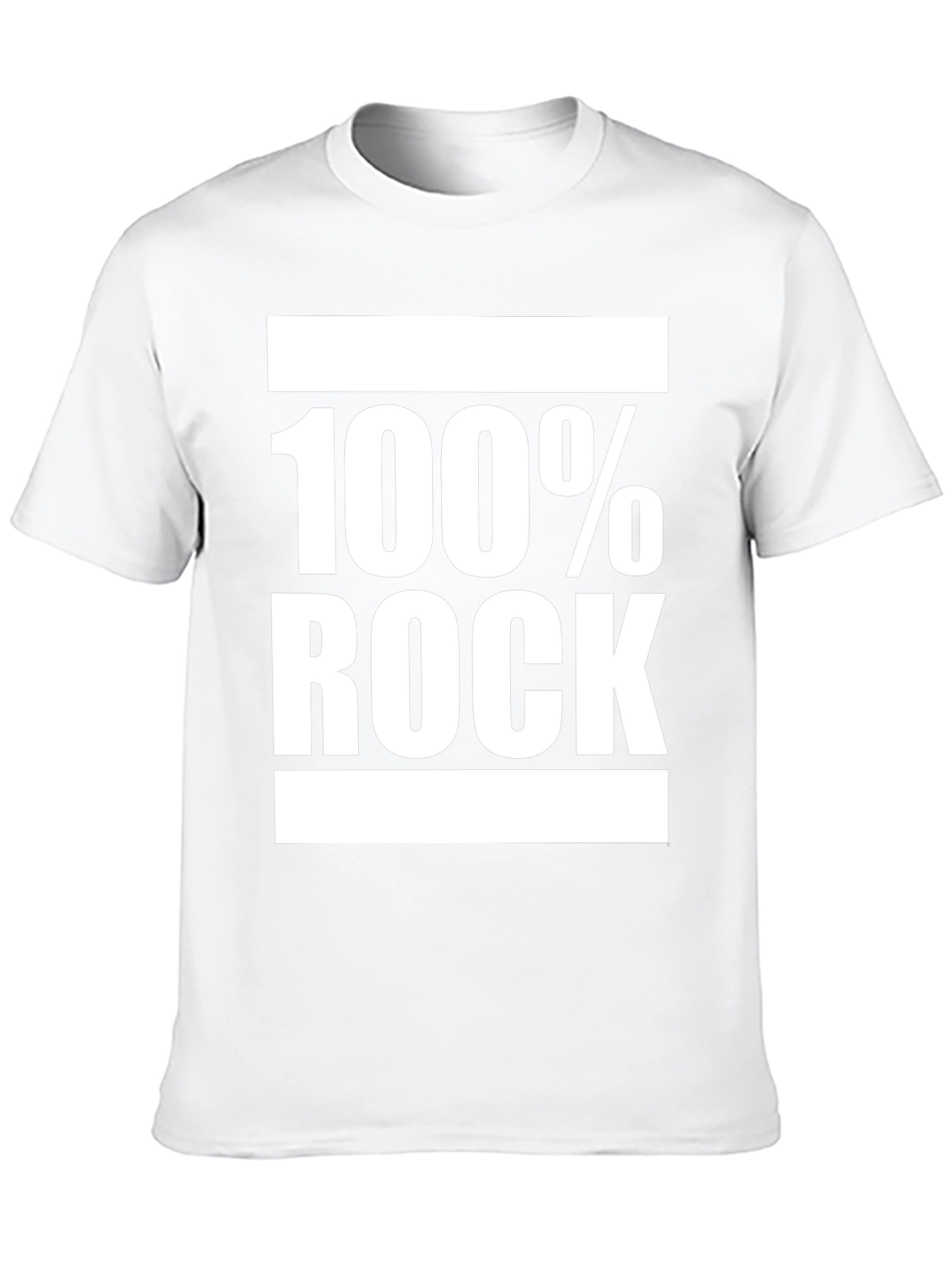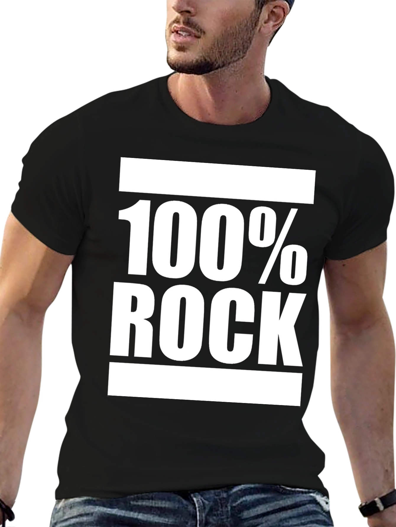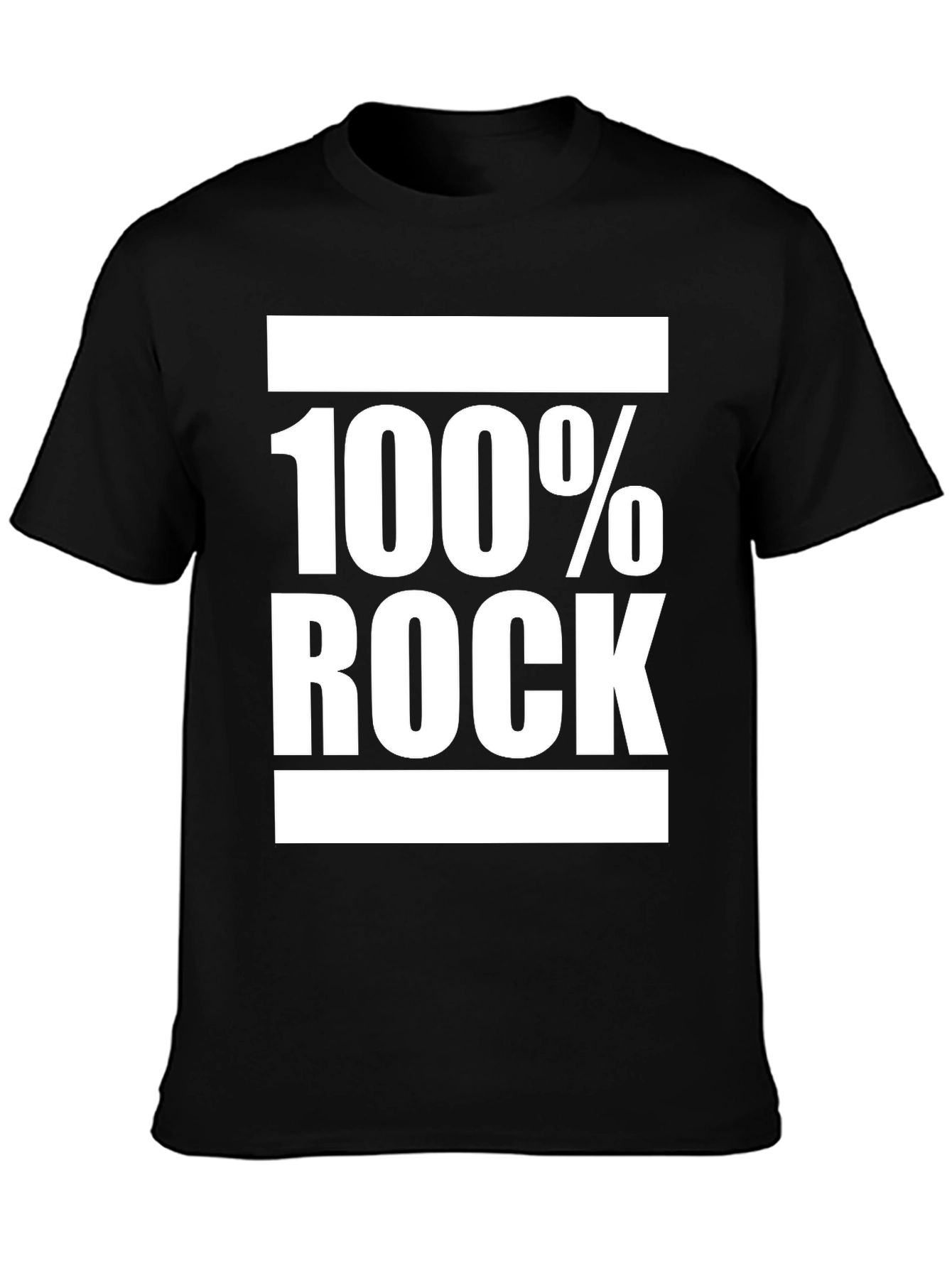 Show your love for rock music with this bold black t-shirt! Featuring a striking "100% ROCK" graphic in crisp white, this tee makes a statement. The design is framed by thick white bars at the top and bottom, enhancing the visual impact. Made from what appears to be a soft, comfortable fabric, this tee is perfect for everyday wear, concerts, or casual outings. It's an easy way to express your unique style and musical taste. Pair it with jeans and boots for a complete rock-inspired look! This eye-catching tee is sure to turn heads and spark conversations.