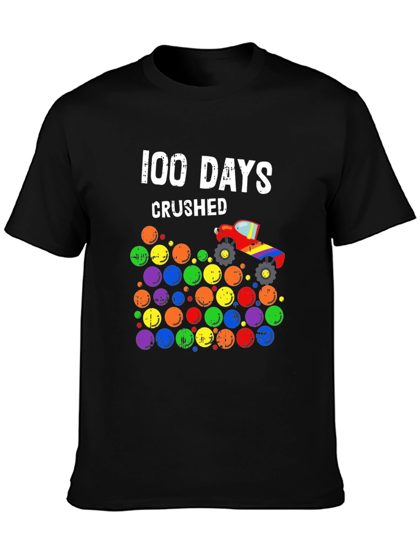 Celebrate 100 days of school with this fun and colorful '100 Days Crushed' t-shirt! Featuring a vibrant design of colorful circles and a monster truck, this shirt is perfect for students and teachers alike. The playful graphic adds a touch of whimsy to any outfit, making it ideal for school events, classroom celebrations, or casual wear. Made from a comfortable and durable material, this t-shirt ensures both style and comfort throughout the day. Show off your achievement in style with this unique and eye-catching 100 days shirt.