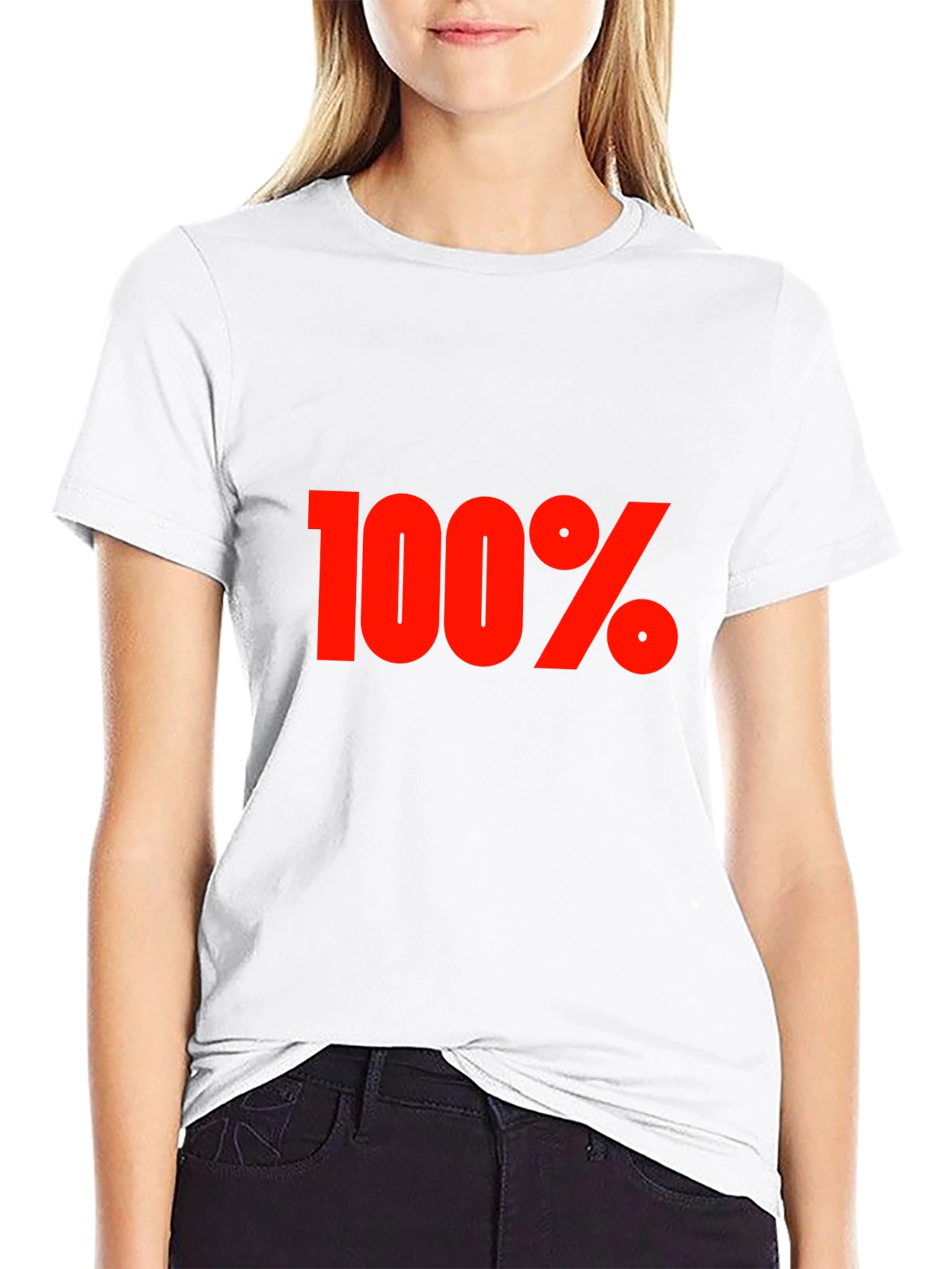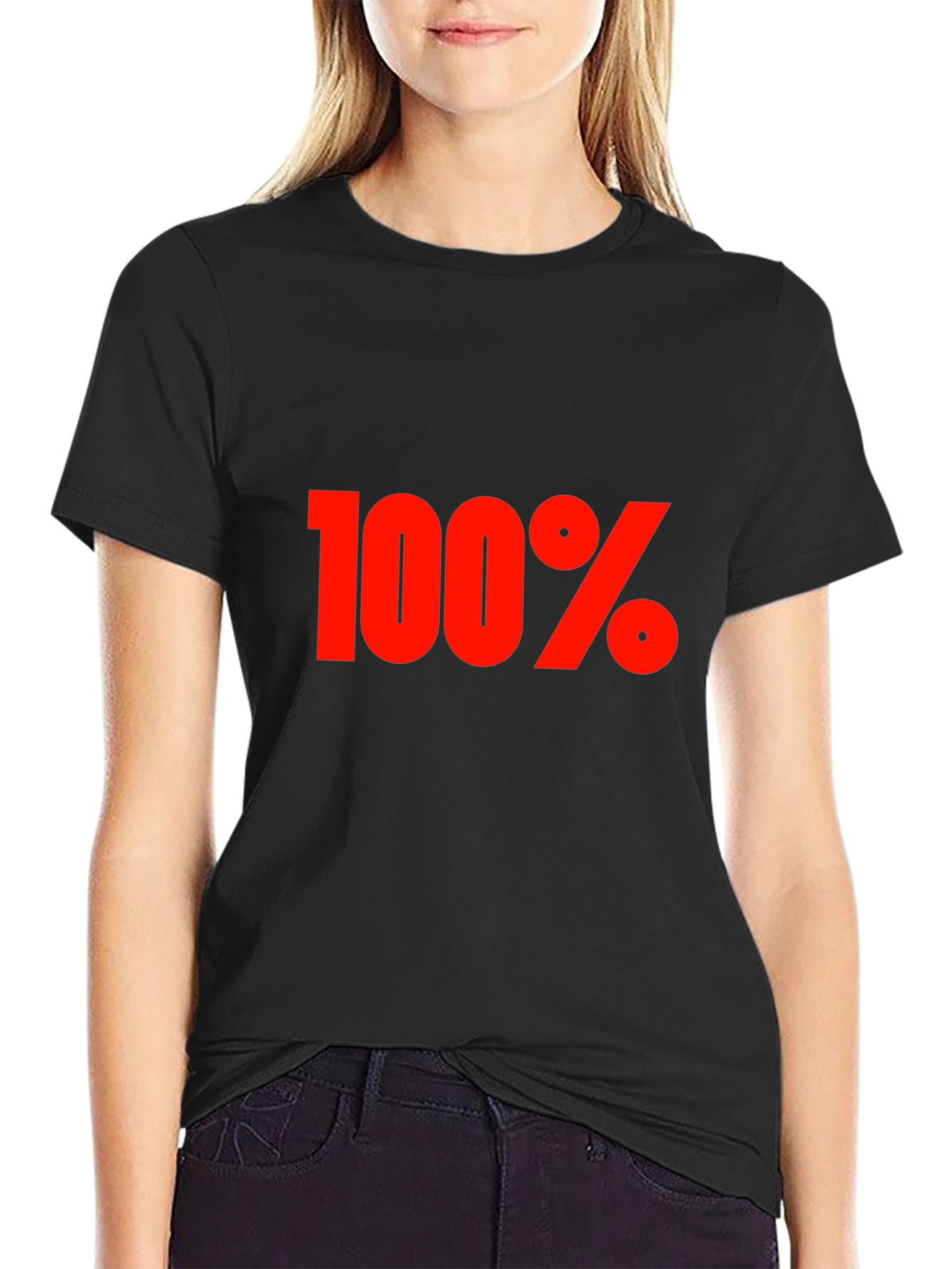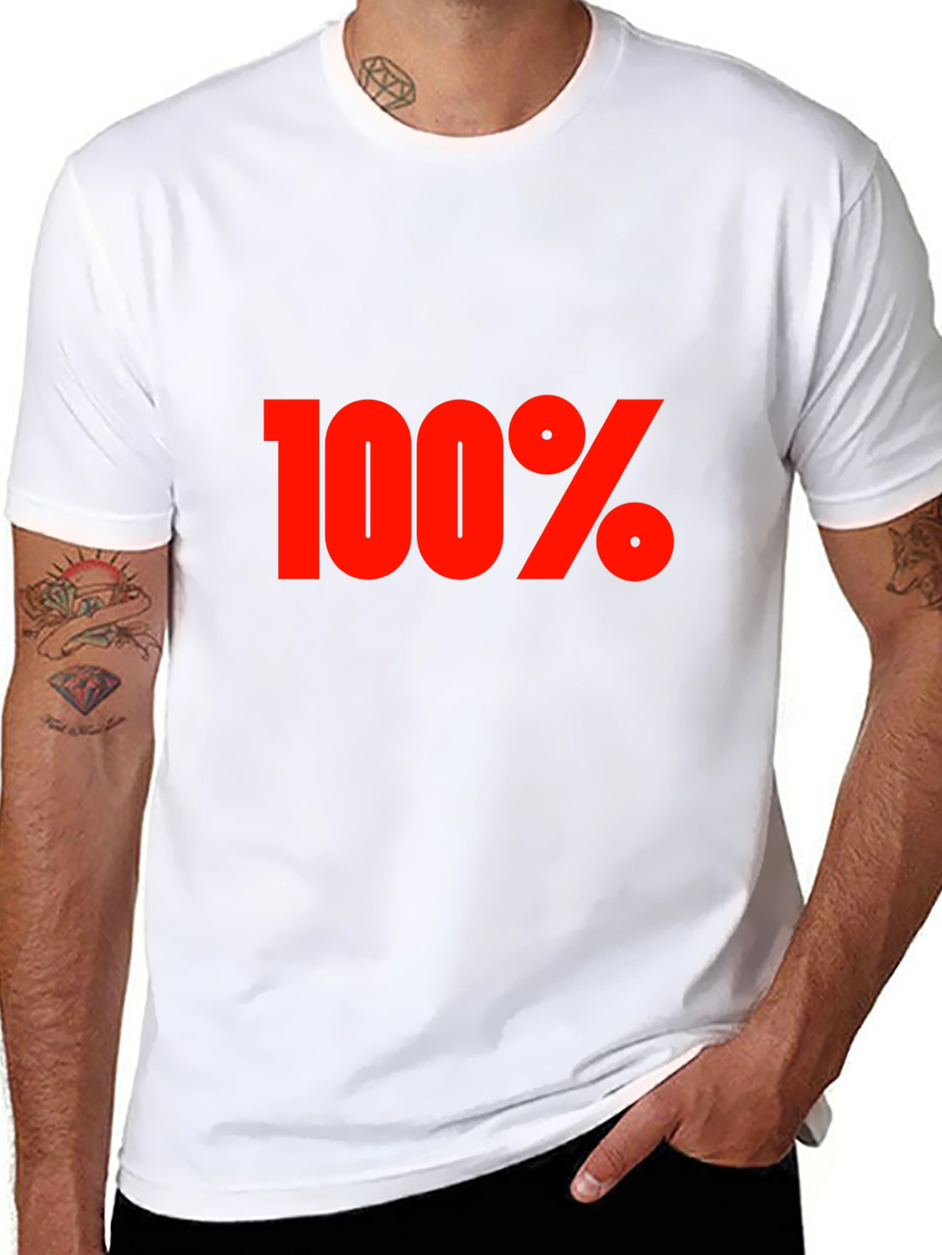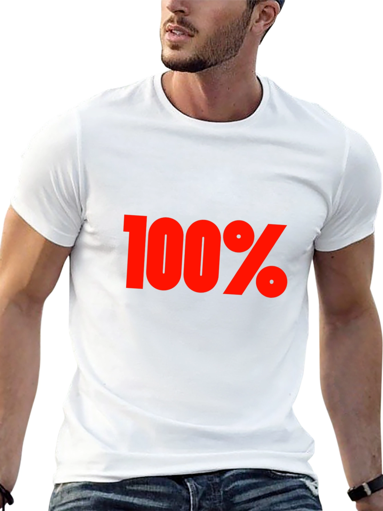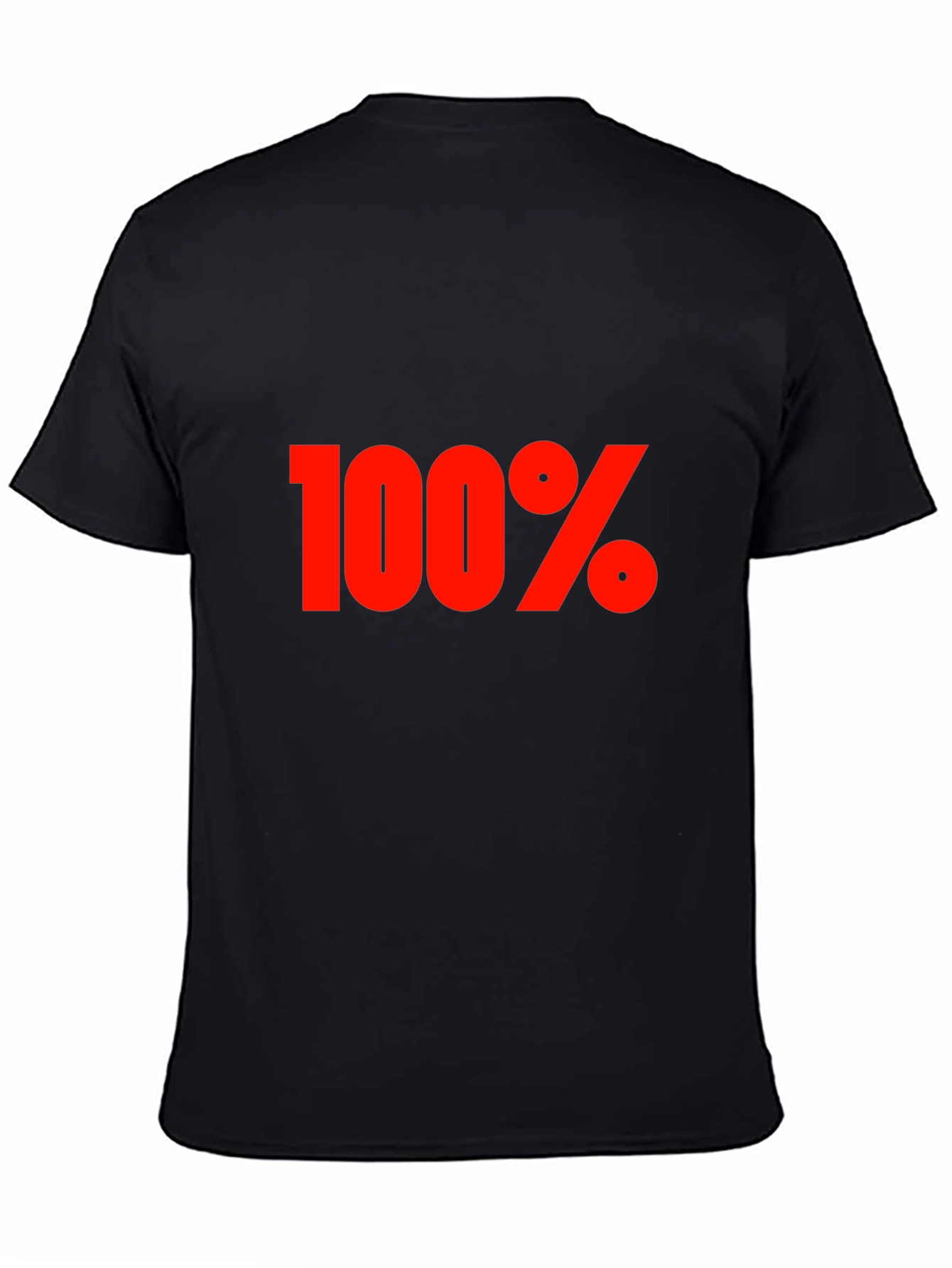 Show your dedication with this bold black tee! This eye-catching shirt features a large, vibrant red '100%' graphic printed across the chest. Made from comfortable and breathable fabric, it's perfect for everyday wear. This shirt is durable and easy to care for. Wear it to the gym, out with friends, or while relaxing at home to make a statement. Express your commitment to excellence with this unique and stylish tee!