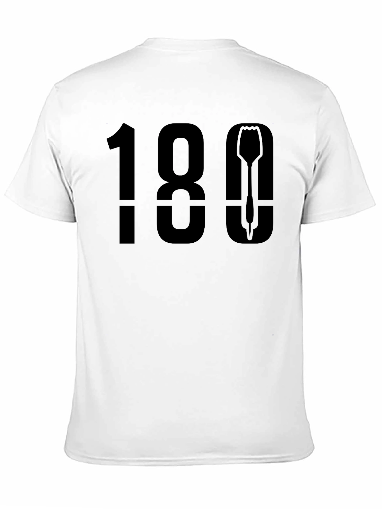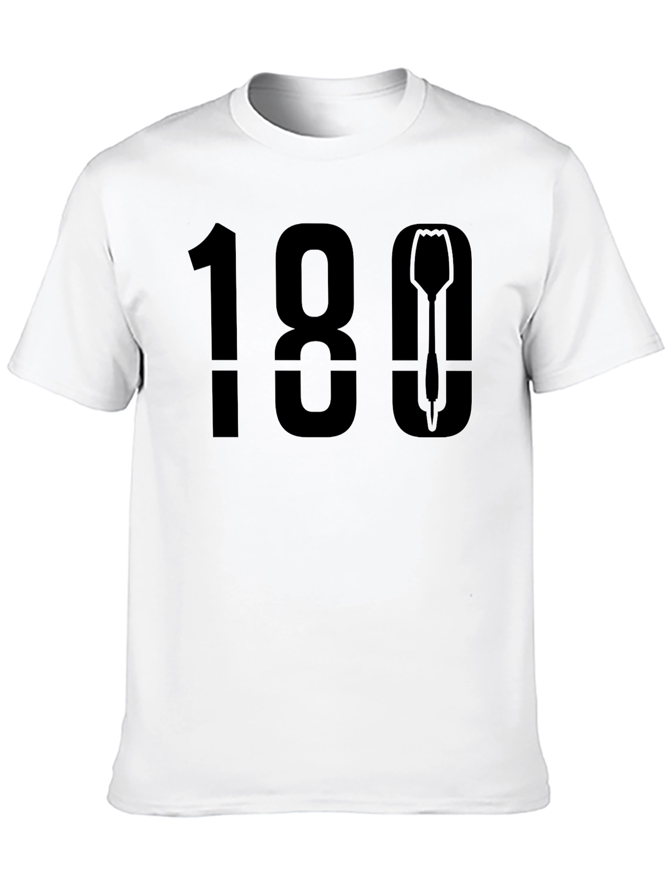 Step up to the oche in style with this striking black t-shirt! Featuring a bold "180" design, this tee is perfect for dart enthusiasts. The design replaces one of the numbers with a dart graphic, adding a unique, sporty flair. Made from a comfortable-looking material, this shirt is ideal for casual wear, pub outings, or serious dart matches. Show off your passion for the game and make a statement with this eye-catching t-shirt. Get yours today and let everyone know you're ready to hit the perfect score!