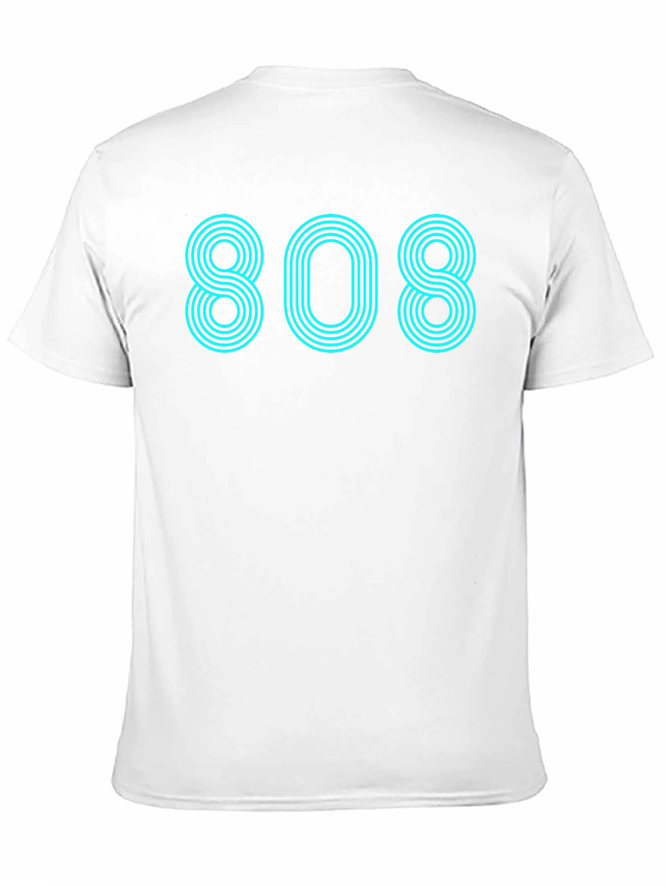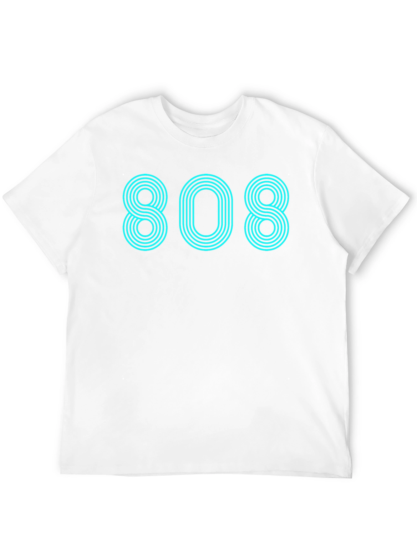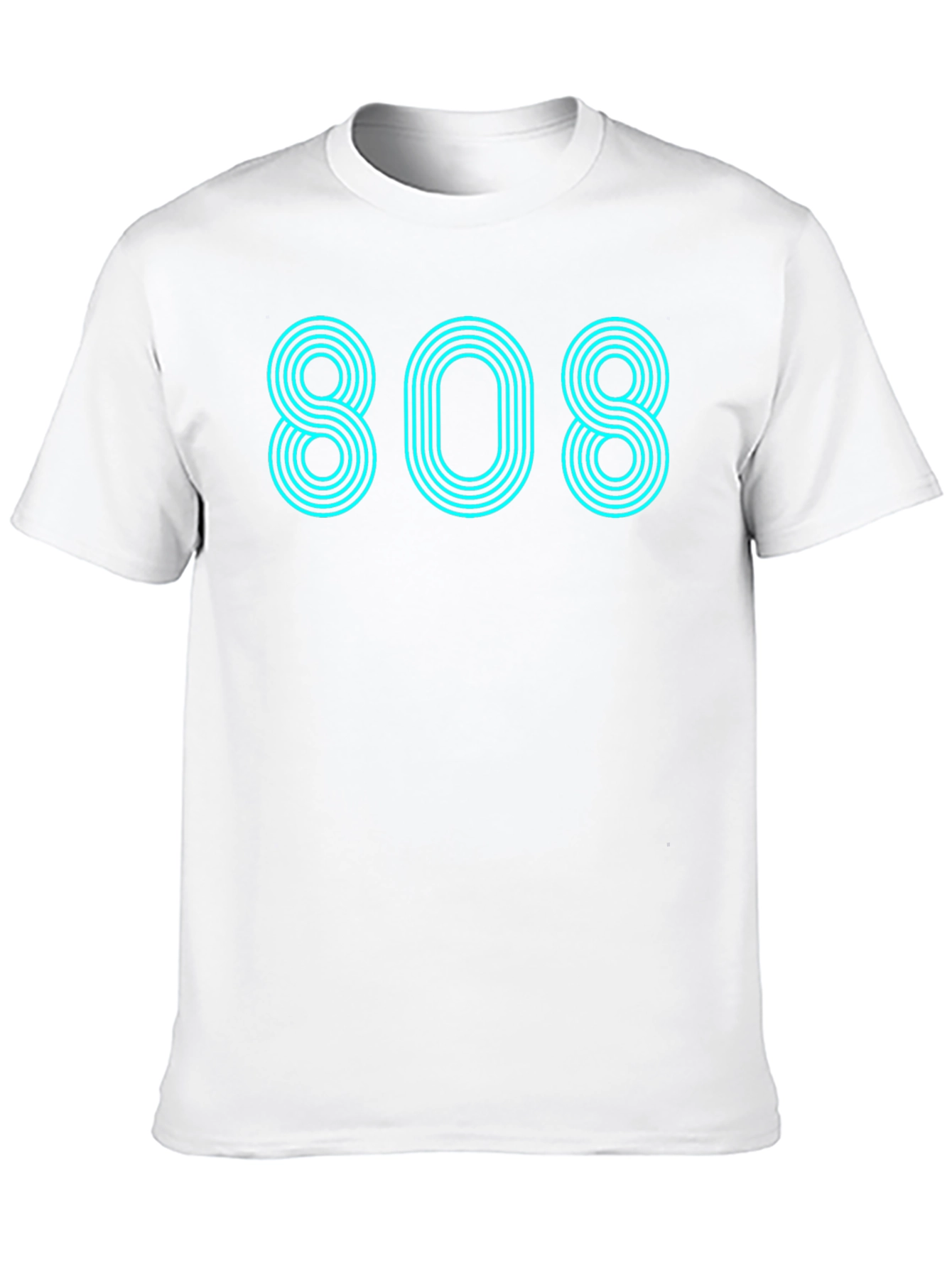 Rock a classic vibe with this stylish black t-shirt. This tee features the number '808' in a unique, retro-inspired design. The numbers are created using multiple concentric lines in a vibrant blue, creating a striking visual effect against the dark background. Made from a comfortable-looking cotton blend, this shirt is perfect for everyday wear, casual outings, or expressing your love for iconic music culture. Pair it with jeans or shorts for a relaxed, cool look that's sure to turn heads. Show off your unique style with this eye-catching graphic tee!