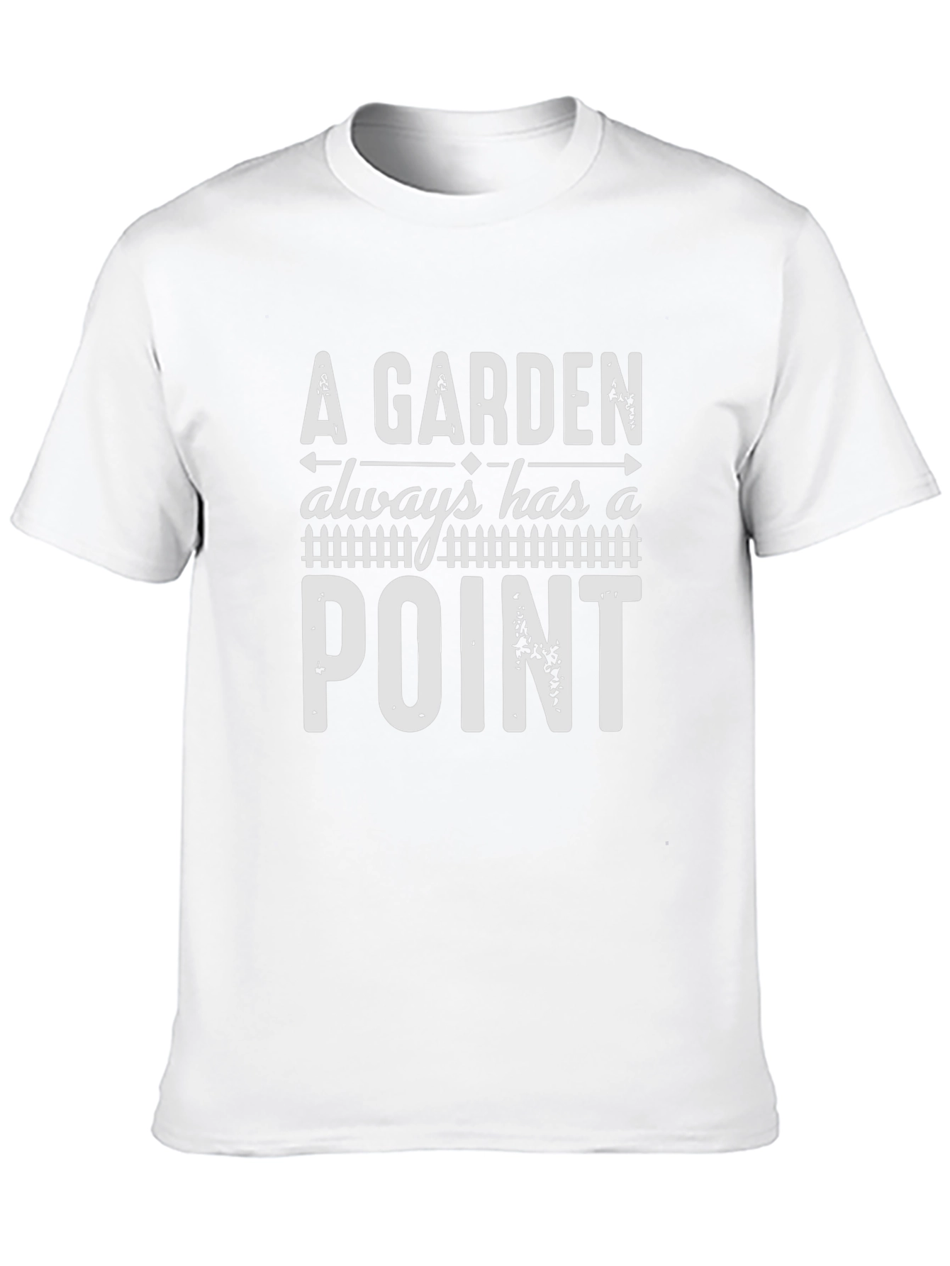 Show off your love for gardening with this stylish black graphic t-shirt. The shirt features the phrase "A Garden always has a POINT", with a vintage, distressed design. Made from soft, breathable fabric, this tee offers both comfort and style. The classic crew neck and short sleeves make it perfect for casual wear, gardening, or any outdoor activity. A great way to express your passion for plants and a touch of humor, this shirt is sure to spark conversations and bring a smile to fellow gardeners.