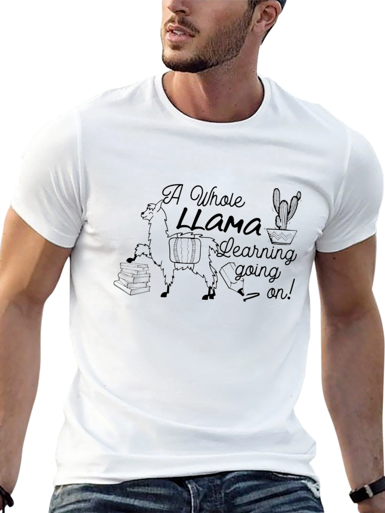 Embrace your love for education and adorable animals with this unique "A Whole Llama Learning Going On!" t-shirt. This design features a cute llama illustration carrying books and educational supplies, paired with playful typography. Made from comfortable, breathable fabric, this shirt is perfect for students, teachers, or anyone who appreciates a touch of whimsy in their wardrobe. Show off your passion for learning with this conversation-starting tee. Great for casual wear, school events, or as a fun gift for the bookworm in your life.