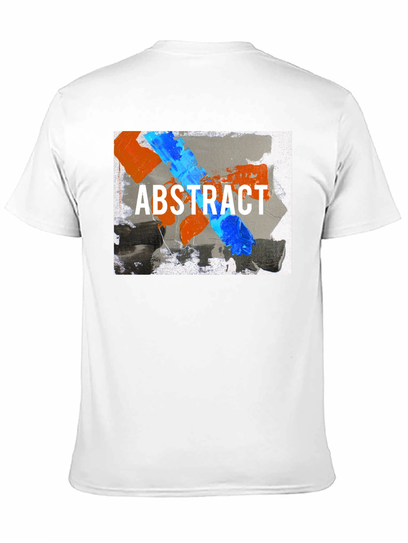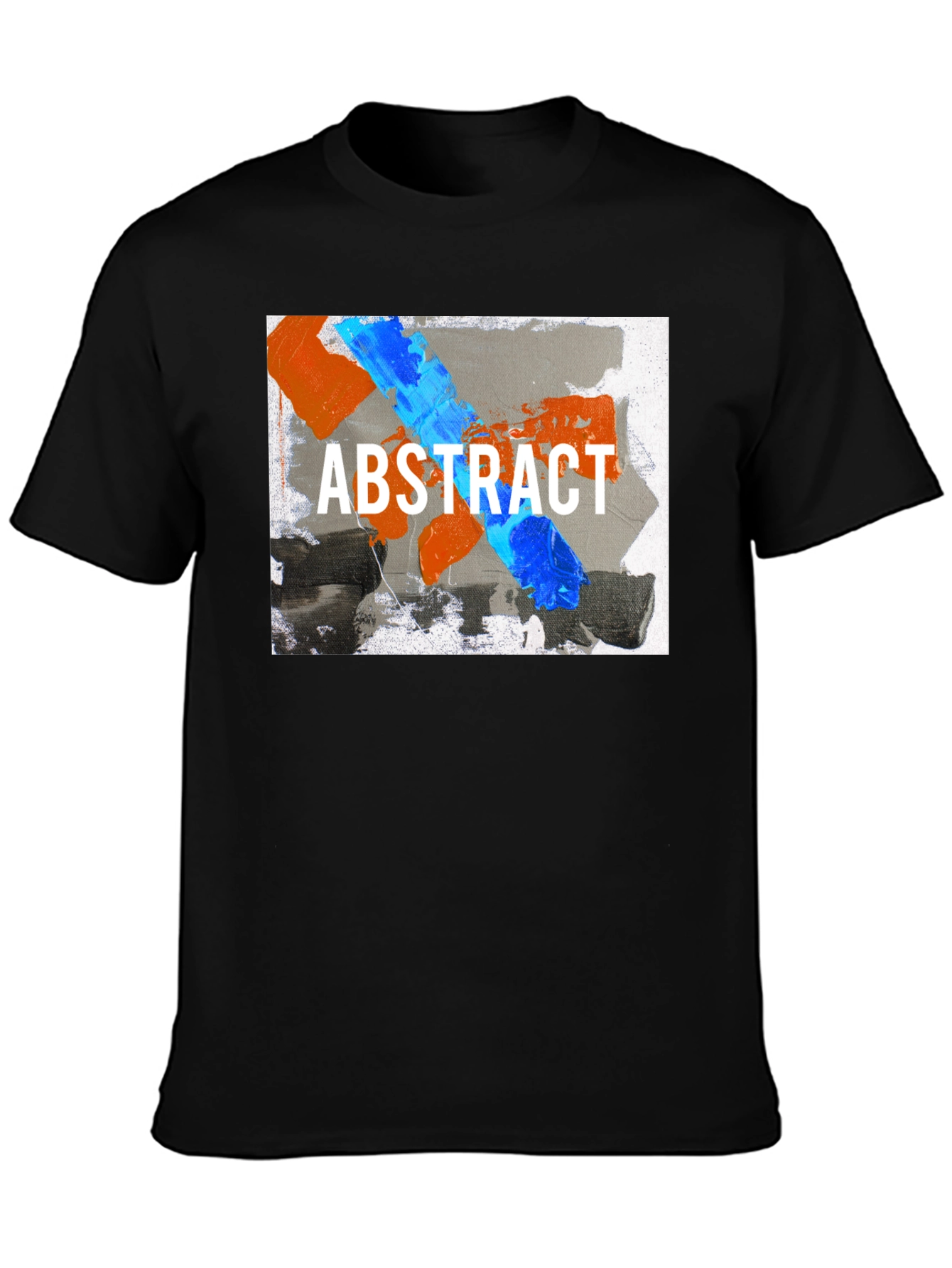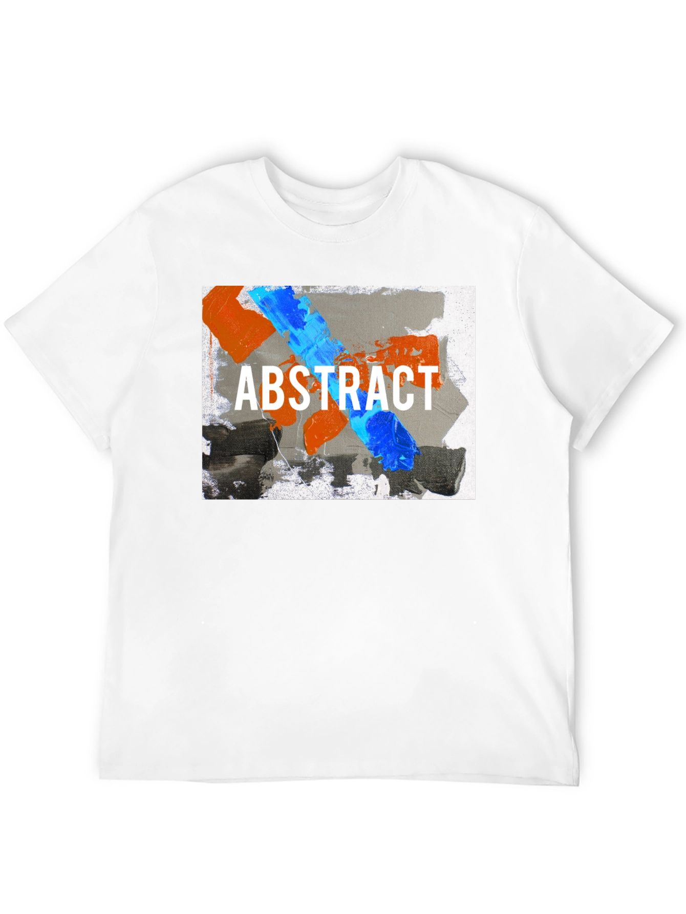 Elevate your wardrobe with this eye-catching abstract art t-shirt. Featuring a bold, contemporary design with vibrant blue and orange paint strokes over a gray background, emblazoned with "ABSTRACT" in crisp white font. This tee is a statement piece that blends artistic flair with everyday comfort. Perfect for casual outings, art enthusiasts, or anyone looking to add a touch of modern art to their style. Made from soft and breathable cotton, it's a comfortable choice for all-day wear. Stand out from the crowd and express your unique style with this must-have graphic tee.