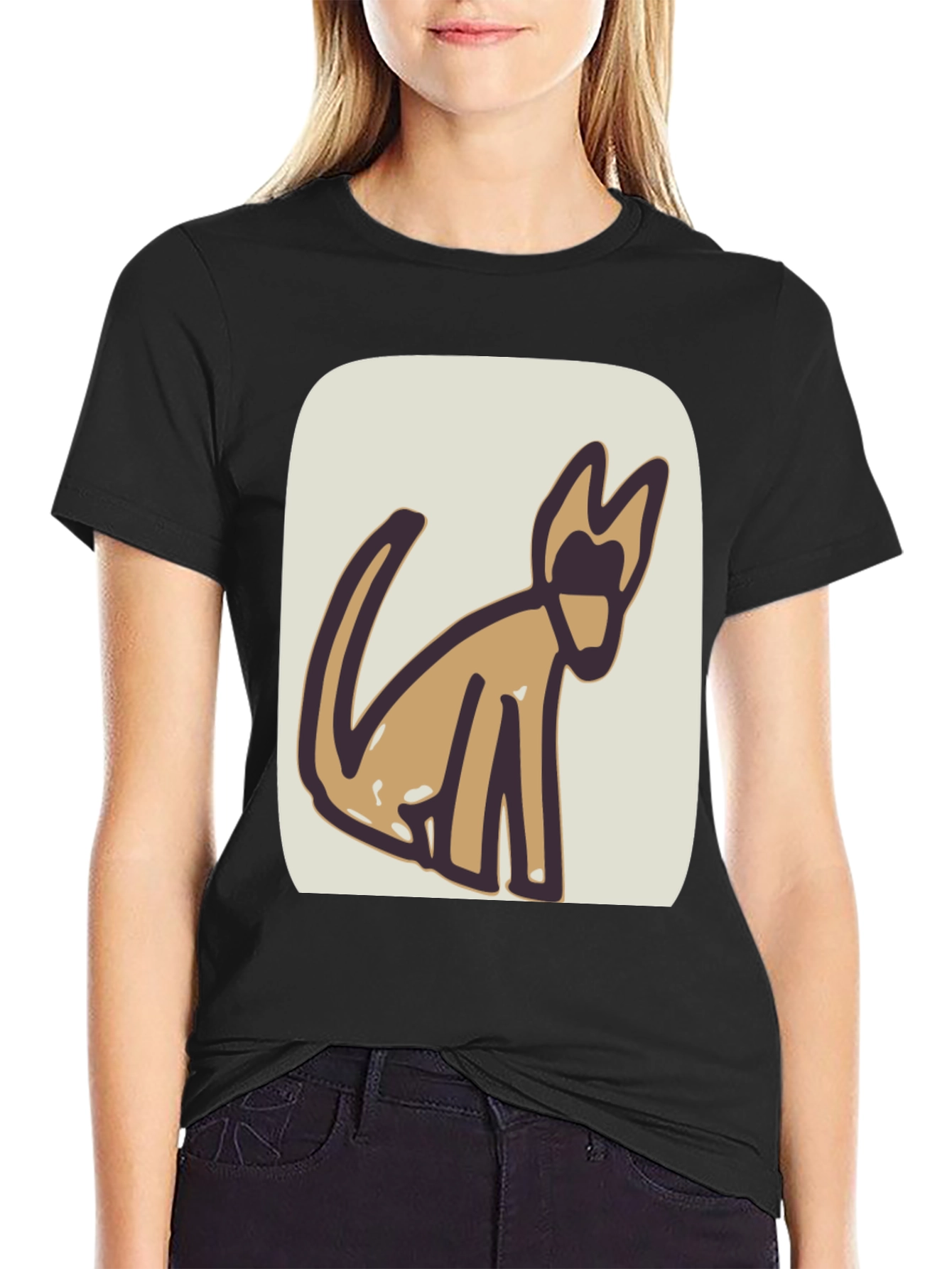 Show off your unique style with this eye-catching graphic tee! Featuring an abstract, minimalist dog design in tan and brown tones set against a soft, rounded square, this shirt is sure to turn heads. The design is printed on a classic black tee, perfect for everyday wear. Made from a comfortable material, this t-shirt provides both style and comfort. Dress it up with jeans or dress it down with shorts for a versatile look. A great conversation starter and a must-have for dog lovers and art enthusiasts alike! Elevate your wardrobe with this wearable piece of art.