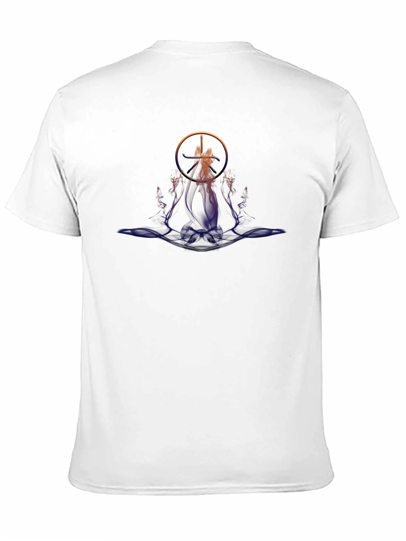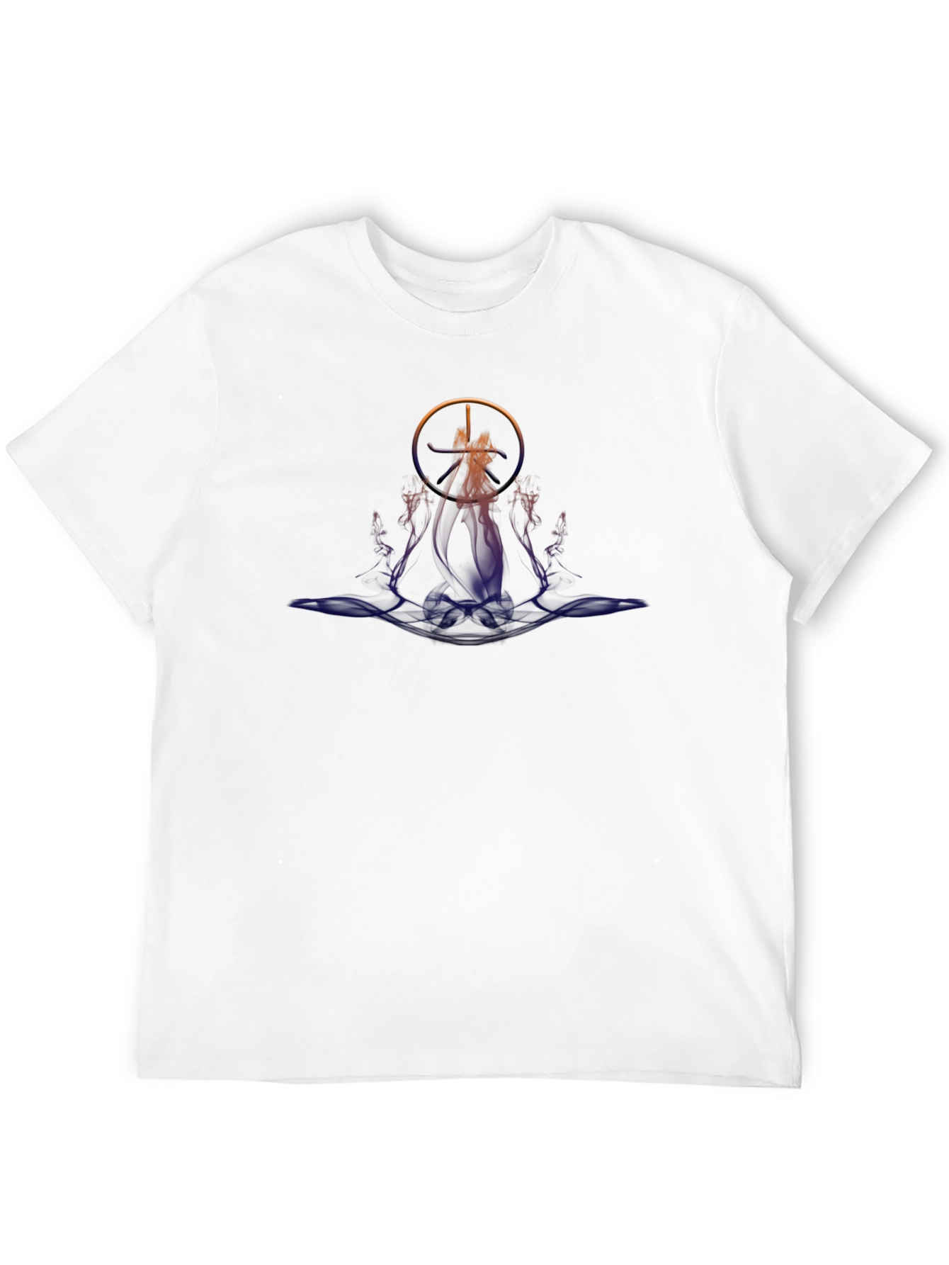 Elevate your casual wardrobe with this striking black tee. Crafted from a soft cotton blend, this shirt features an eye-catching abstract graphic on the front. The design showcases a figure within a circle, rendered in gradient colors that create a captivating visual effect. With its comfortable fit and stylish design, this tee is perfect for everyday wear. Pair it with jeans or shorts for a relaxed weekend look, or dress it up with a blazer for a more polished ensemble. Stand out from the crowd with this unique and versatile piece.