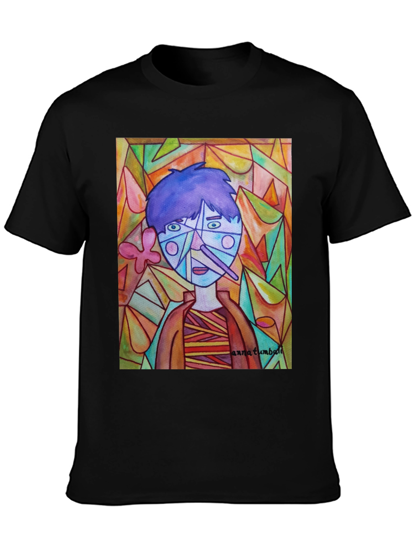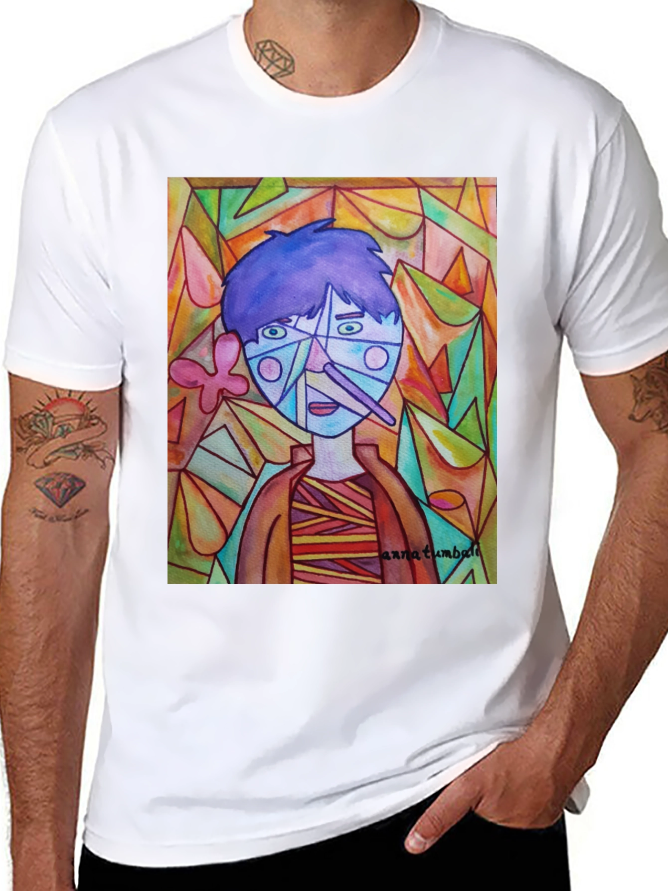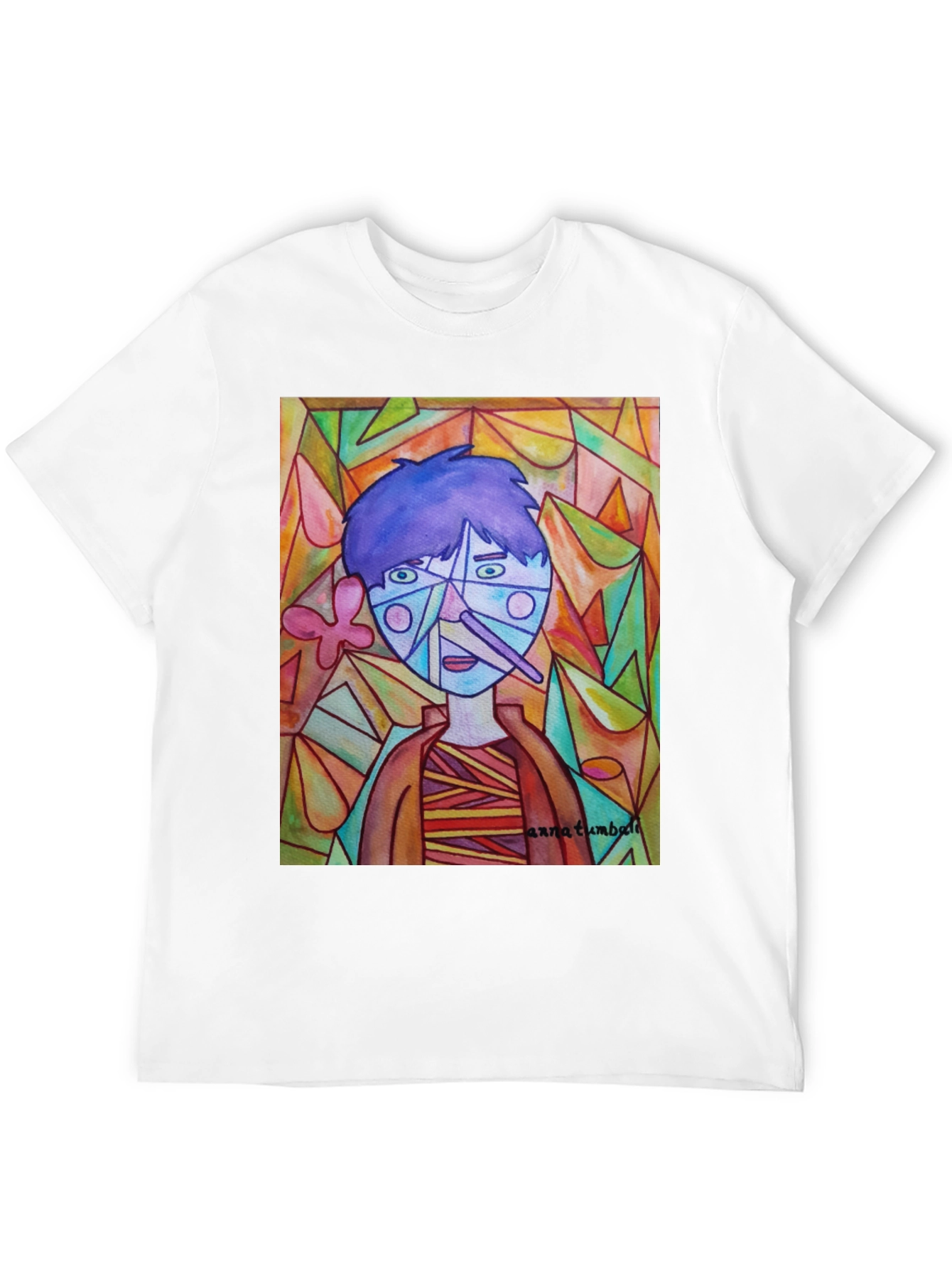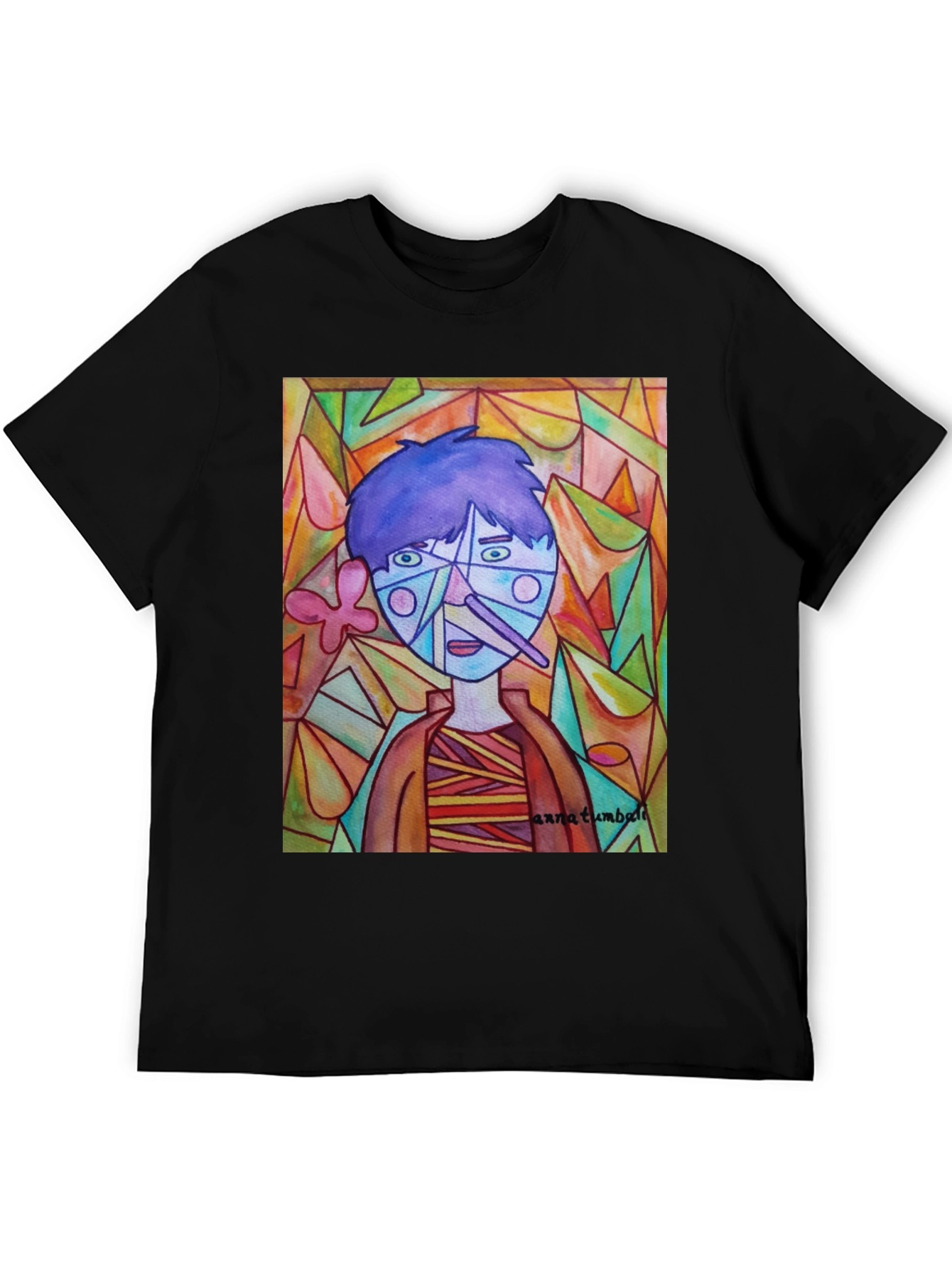 Showcase your unique style with this striking abstract portrait graphic tee. Featuring a vibrant, geometric design with bold colors, this shirt is sure to turn heads. The eye-catching print appears to be inspired by modern art styles. Made from a comfortable, breathable fabric, this tee is perfect for everyday wear. Pair it with jeans for a casual look or dress it up with a blazer for a more edgy style. Stand out from the crowd with this wearable piece of art. Ideal for art lovers and anyone who appreciates bold fashion statements.