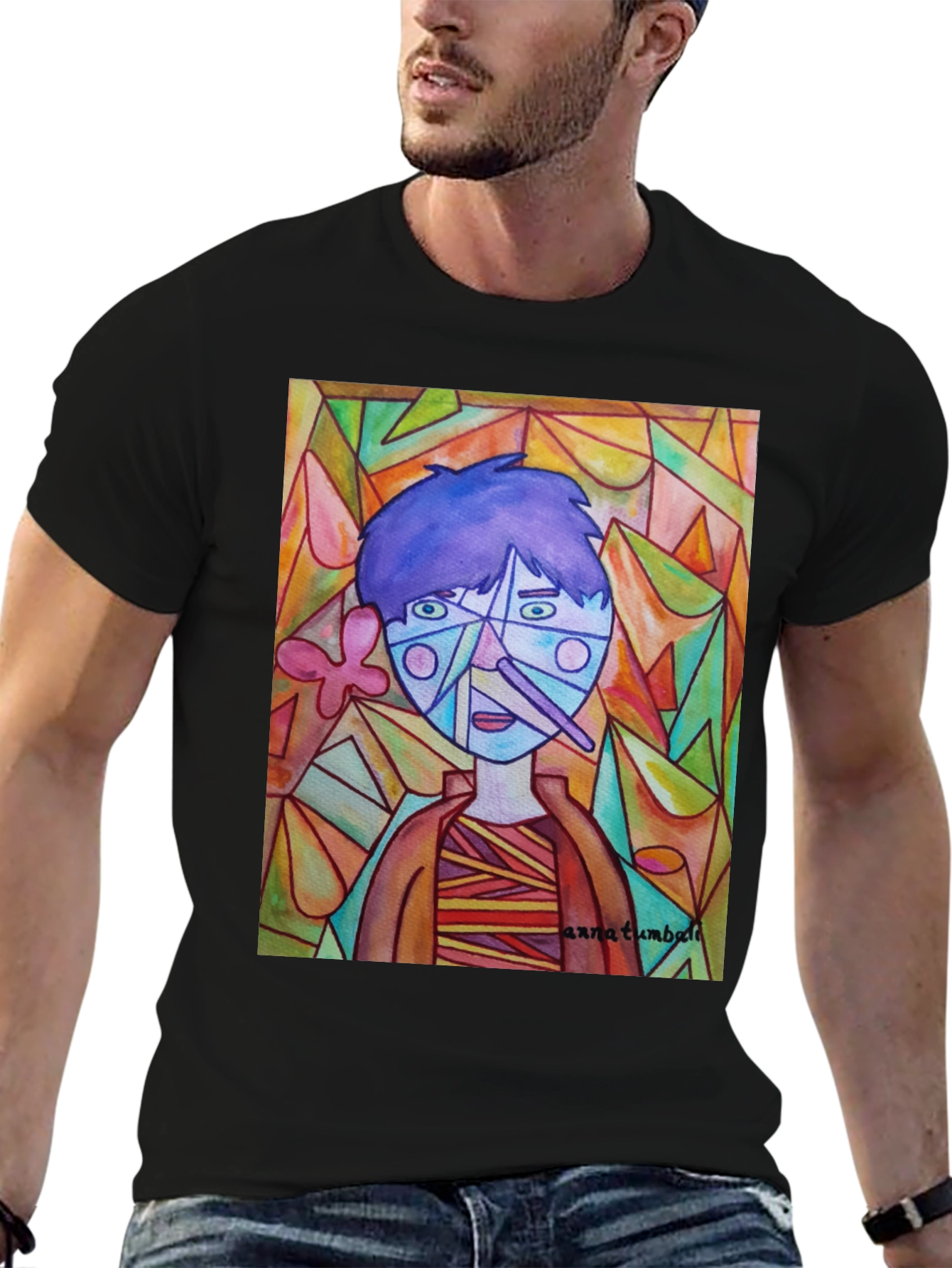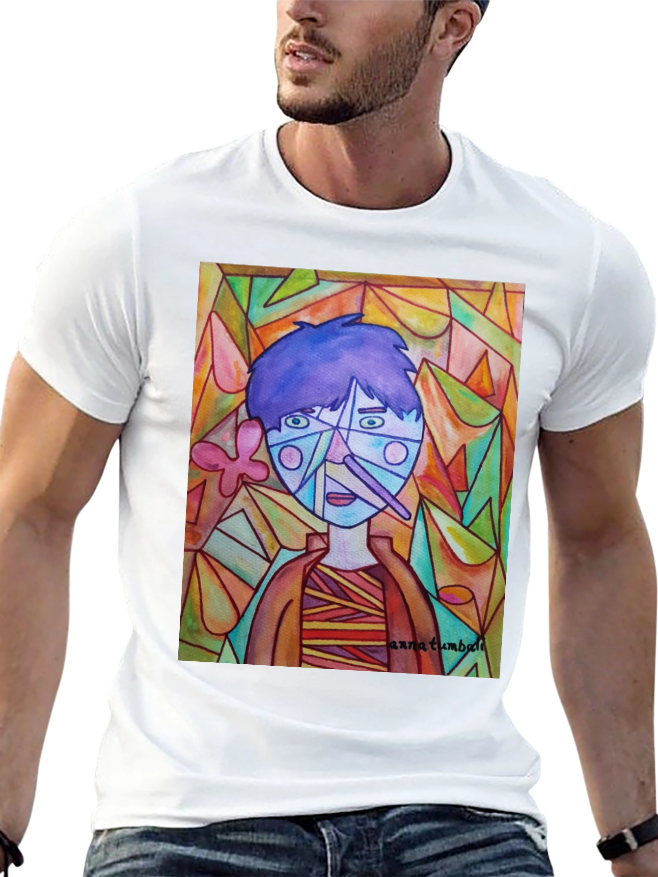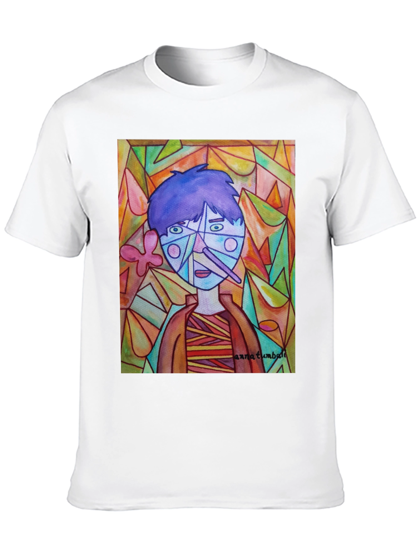 Showcase your unique style with this striking abstract portrait graphic tee. Featuring a vibrant, geometric design with bold colors, this shirt is sure to turn heads. The eye-catching print appears to be inspired by modern art styles. Made from a comfortable, breathable fabric, this tee is perfect for everyday wear. Pair it with jeans for a casual look or dress it up with a blazer for a more edgy style. Stand out from the crowd with this wearable piece of art. Ideal for art lovers and anyone who appreciates bold fashion statements.