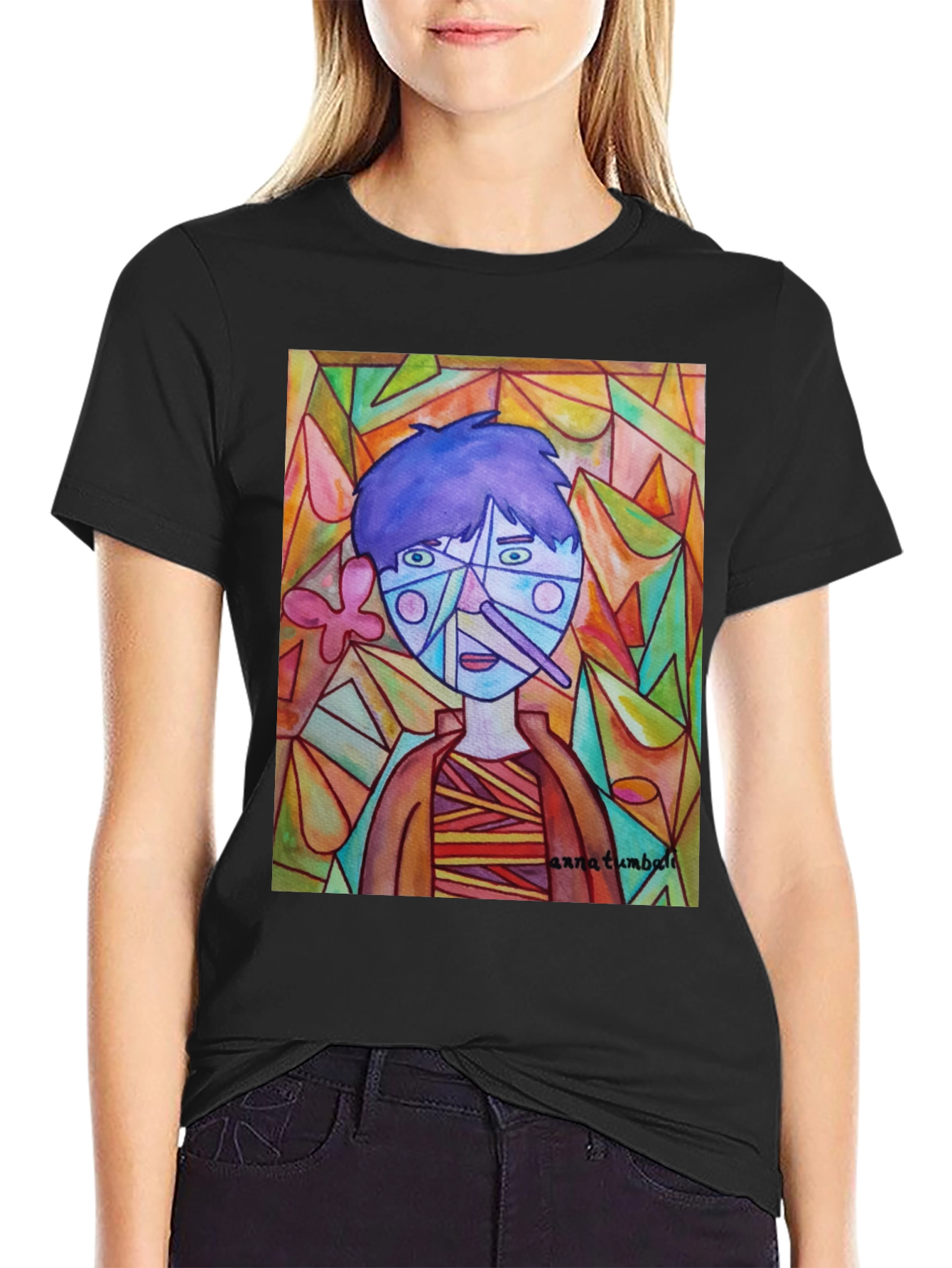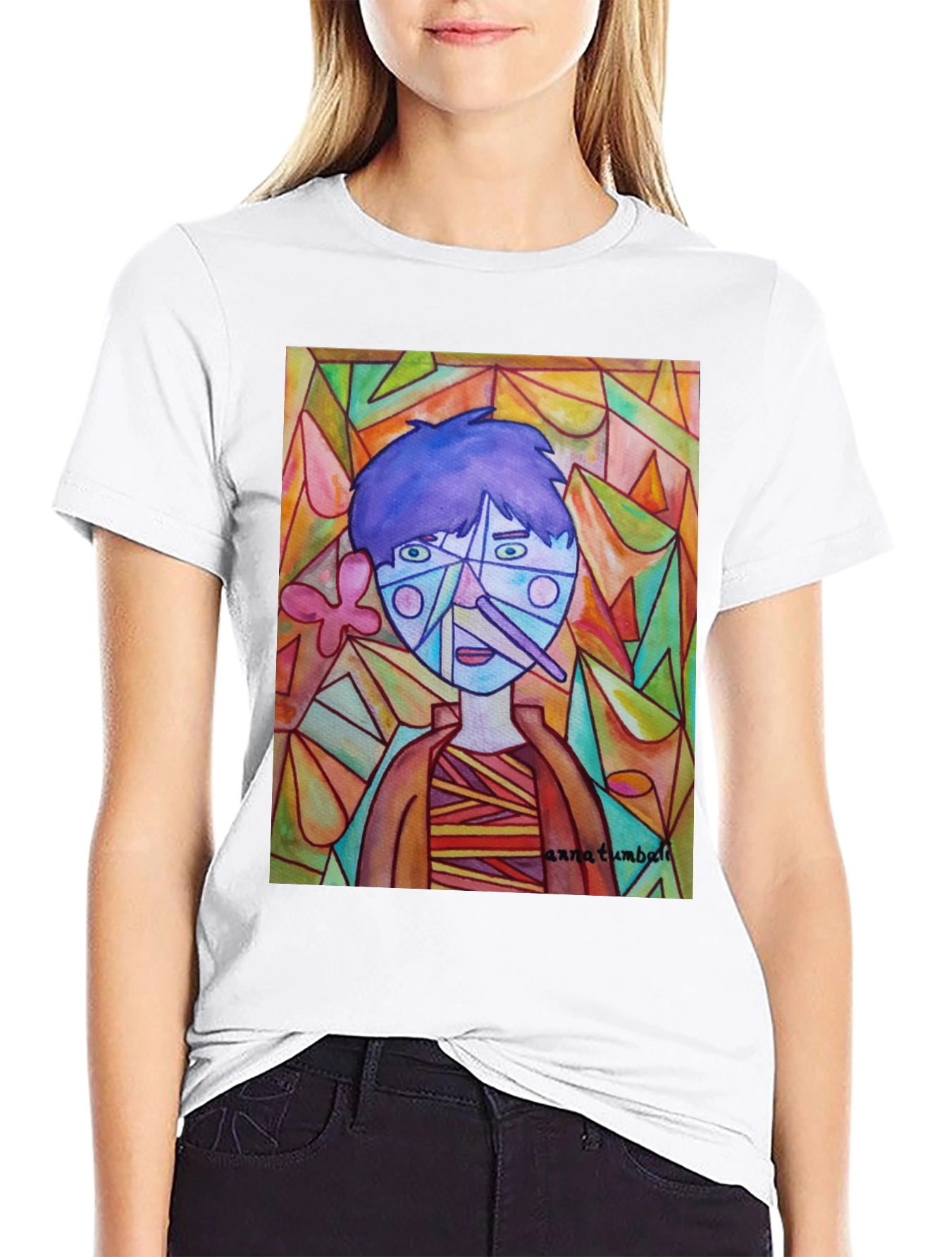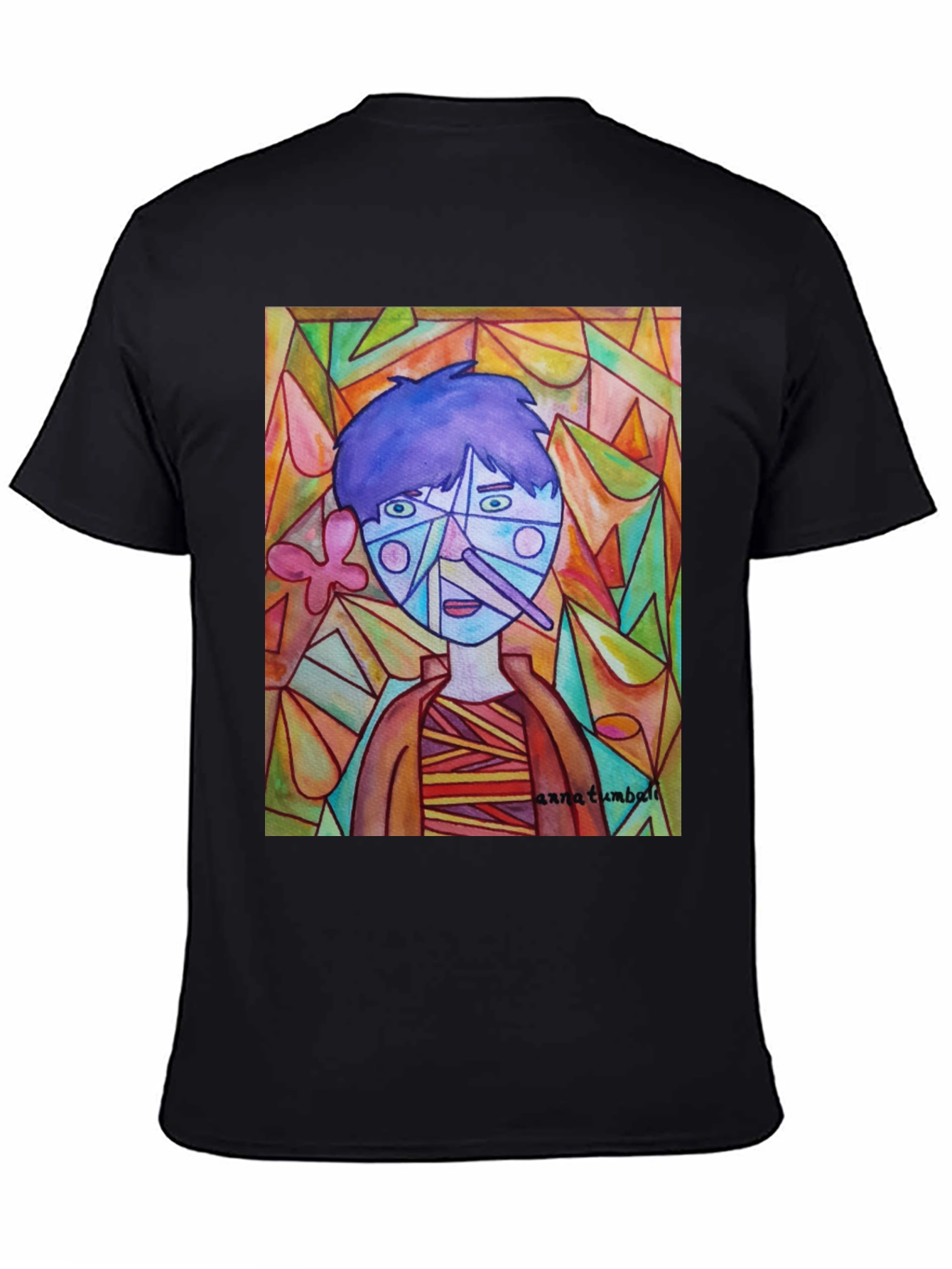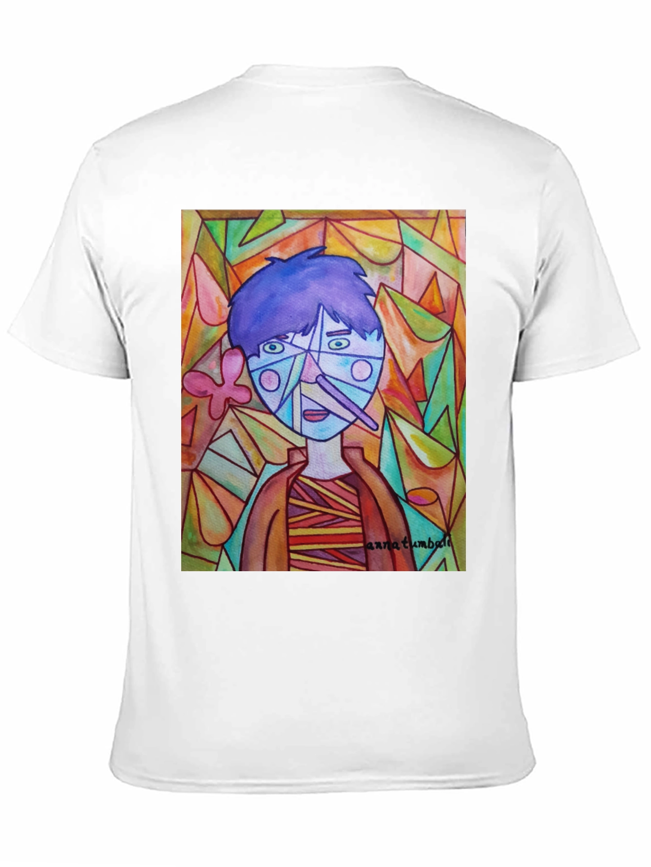 Showcase your unique style with this striking abstract portrait graphic tee. Featuring a vibrant, geometric design with bold colors, this shirt is sure to turn heads. The eye-catching print appears to be inspired by modern art styles. Made from a comfortable, breathable fabric, this tee is perfect for everyday wear. Pair it with jeans for a casual look or dress it up with a blazer for a more edgy style. Stand out from the crowd with this wearable piece of art. Ideal for art lovers and anyone who appreciates bold fashion statements.