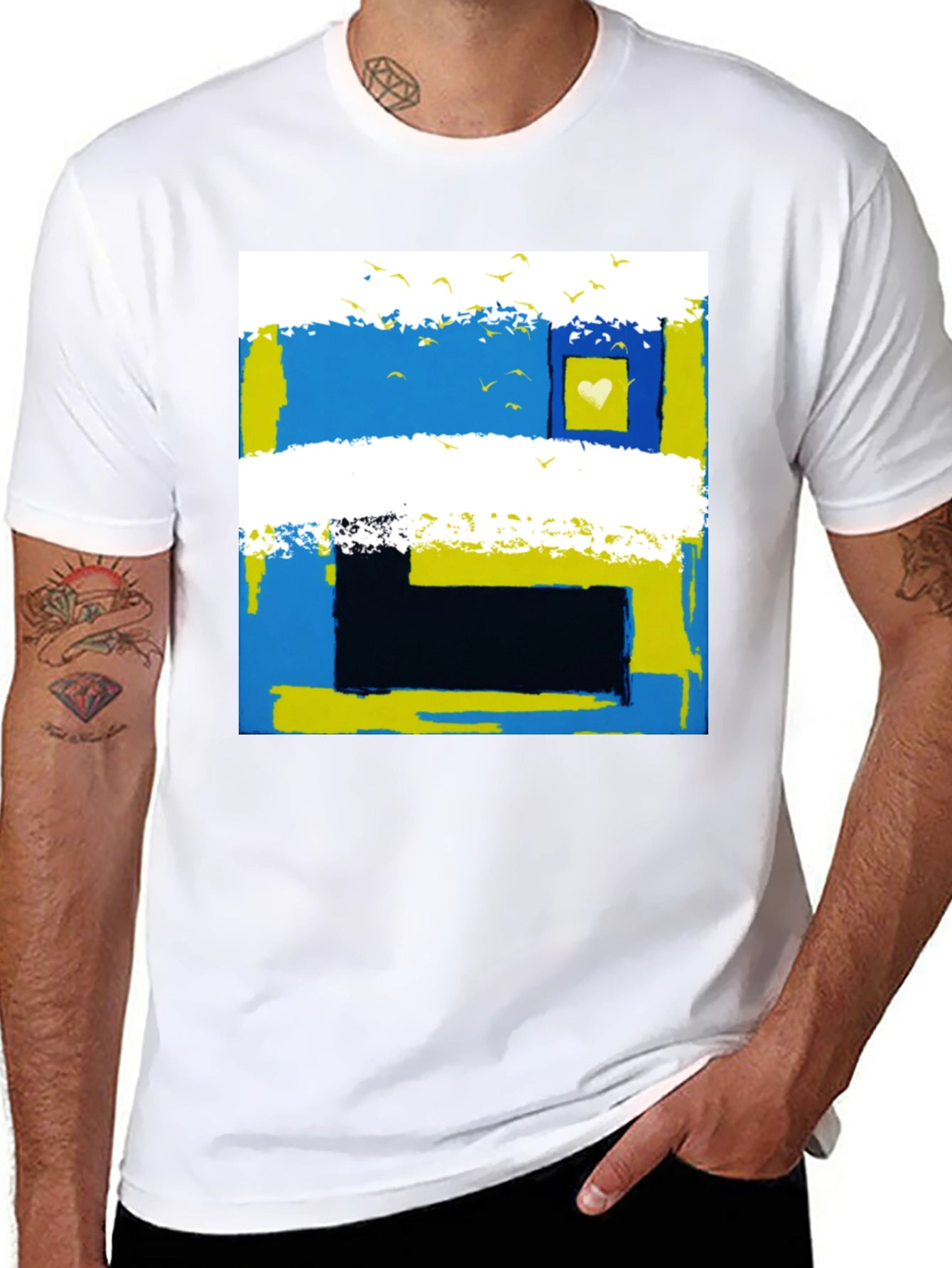 Show your support with this unique Ukraine Flag Heart T-Shirt. Featuring an abstract design inspired by the Ukrainian flag, the tee showcases bold blue and yellow blocks accented by a white brushstroke effect. A subtle heart symbol adds a touch of hope and unity. Crafted from soft, breathable fabric, this comfortable shirt is perfect for everyday wear or showing solidarity at events. The eye-catching graphic makes a statement while the classic black tee ensures versatility. Wear your heart on your sleeve and make a difference with this impactful piece.