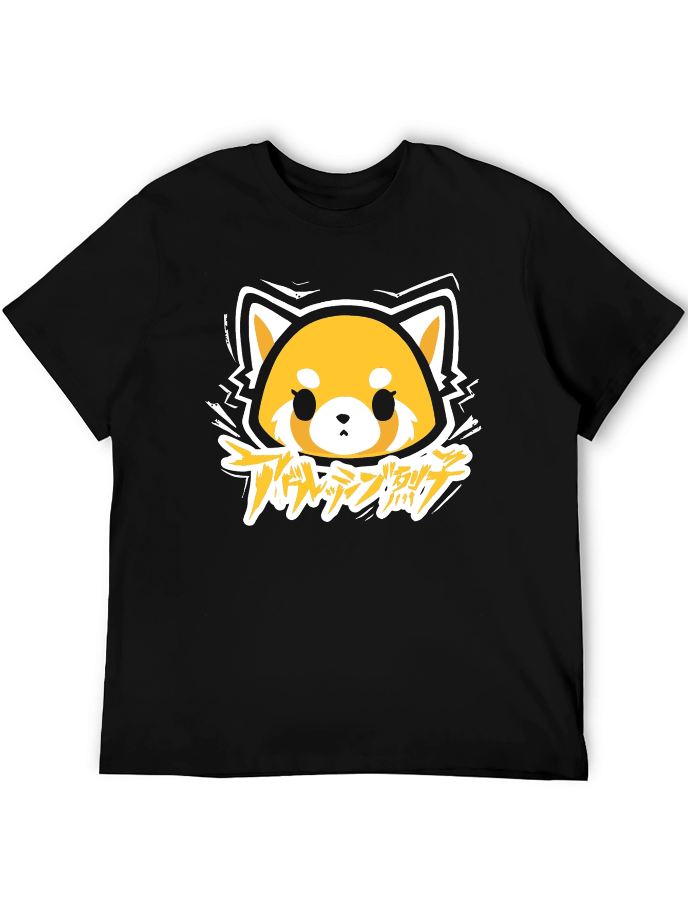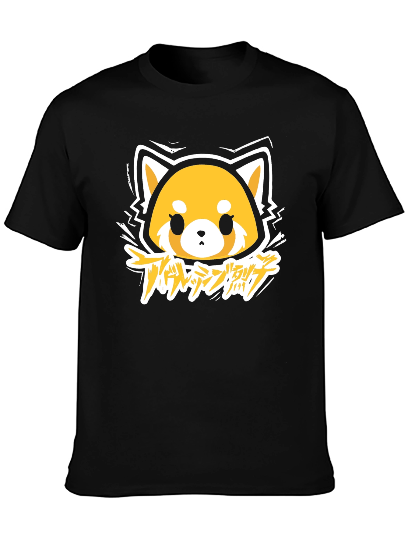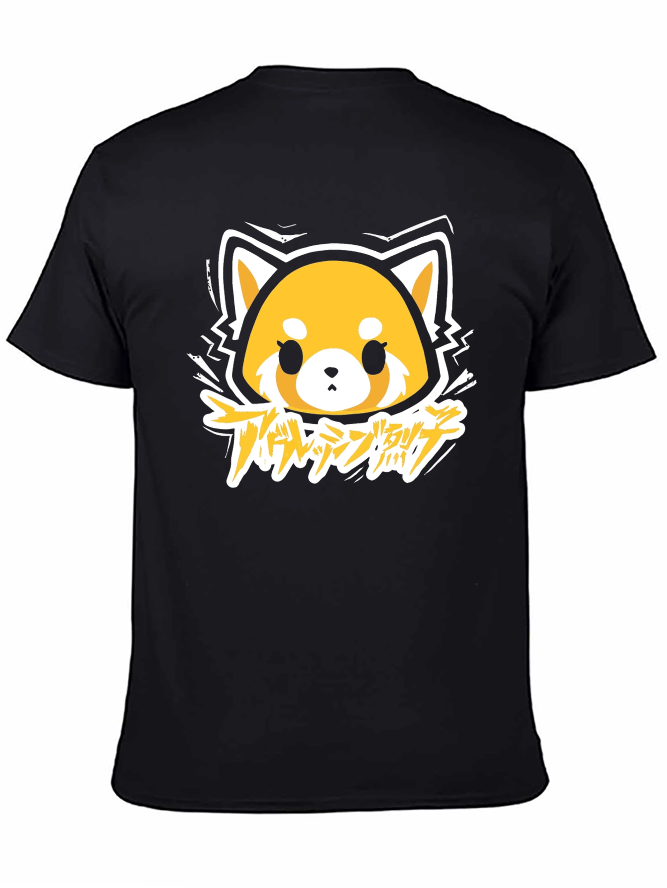 Show off your love for Aggretsuko with this eye-catching black t-shirt. The shirt features a vibrant graphic print of Aggretsuko, a red panda character from the popular anime series. The design incorporates a unique artistic style. Made from soft, breathable cotton, this t-shirt offers both comfort and style. Perfect for casual wear, anime conventions, or as a standout piece in your everyday wardrobe. This tee is ideal for expressing your fandom and adding a touch of edgy fun to your look.