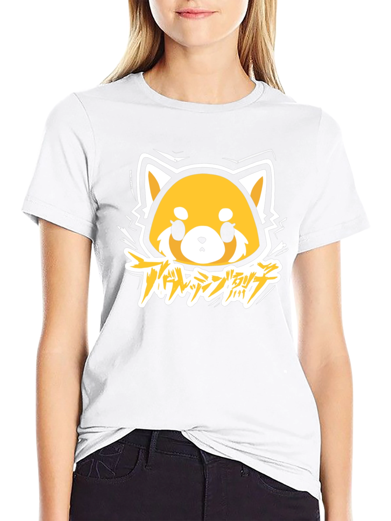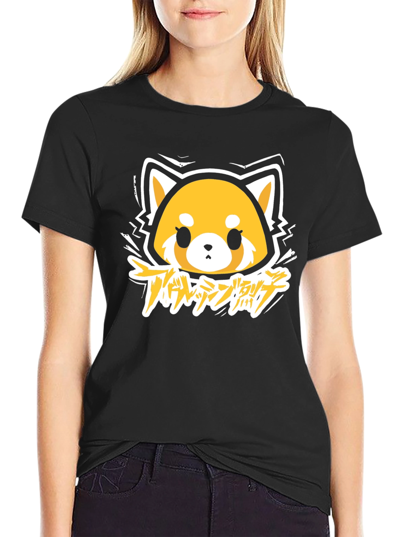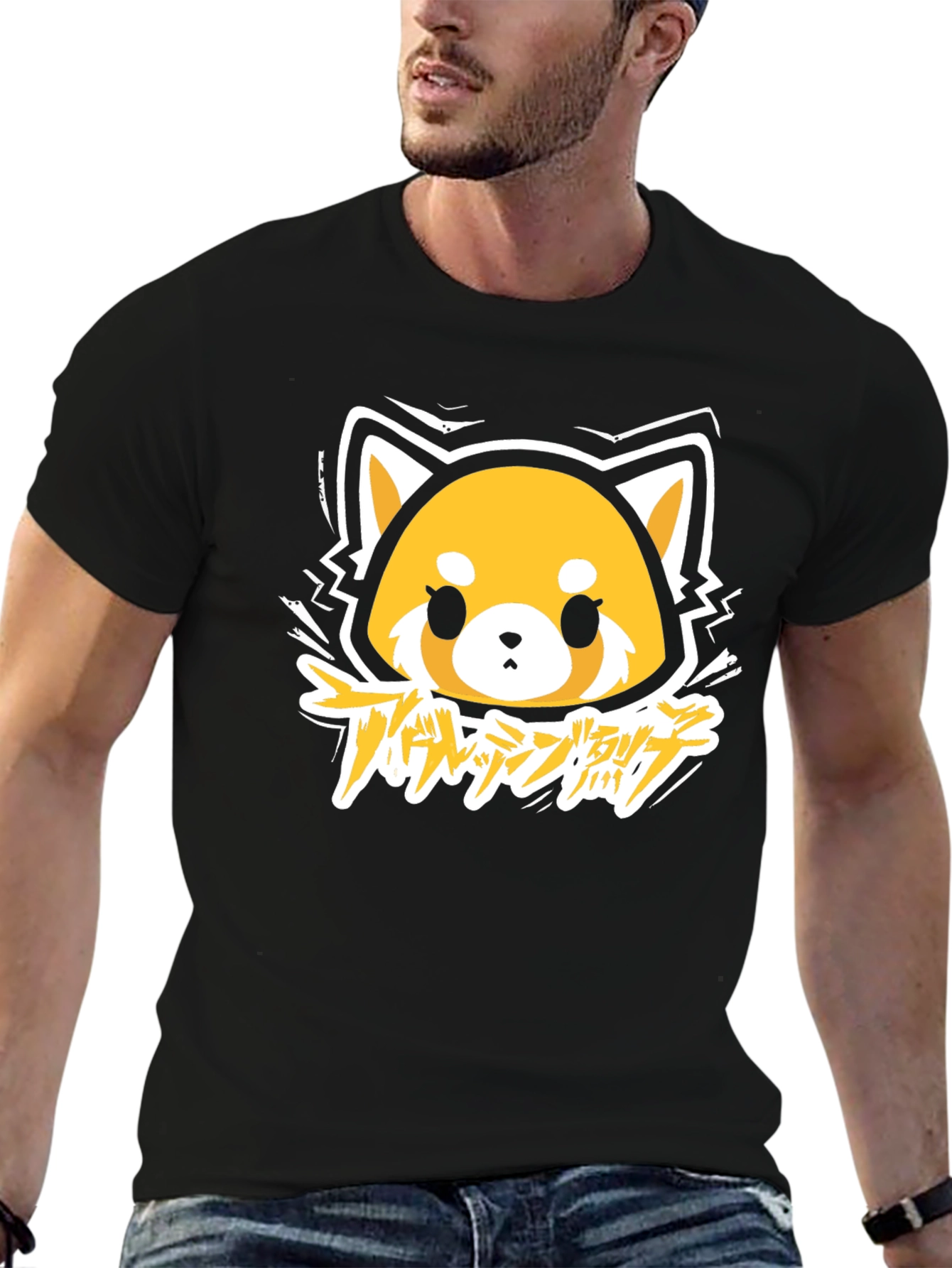 Show off your love for Aggretsuko with this eye-catching black t-shirt. The shirt features a vibrant graphic print of Aggretsuko, a red panda character from the popular anime series. The design incorporates a unique artistic style. Made from soft, breathable cotton, this t-shirt offers both comfort and style. Perfect for casual wear, anime conventions, or as a standout piece in your everyday wardrobe. This tee is ideal for expressing your fandom and adding a touch of edgy fun to your look.
