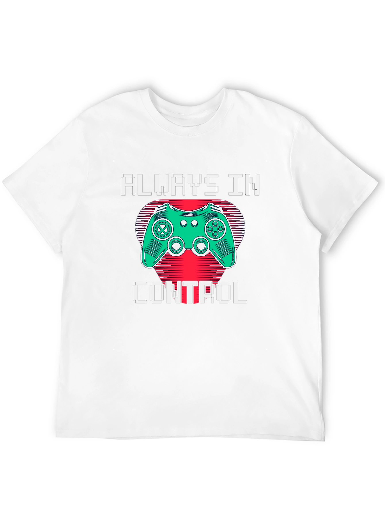 Show off your gamer spirit with this stylish black t-shirt. The shirt features a retro-style design with the phrase "Always In Control" printed in a pixelated font. At the center, a vibrant teal and white video game controller graphic pops against a red heart-shaped background. Made from a comfortable, breathable fabric, this tee is perfect for long gaming sessions, casual wear, or as a gift for the gamer in your life. This eye-catching design will surely turn heads and spark conversations. Grab yours and embrace your inner gaming champion!
