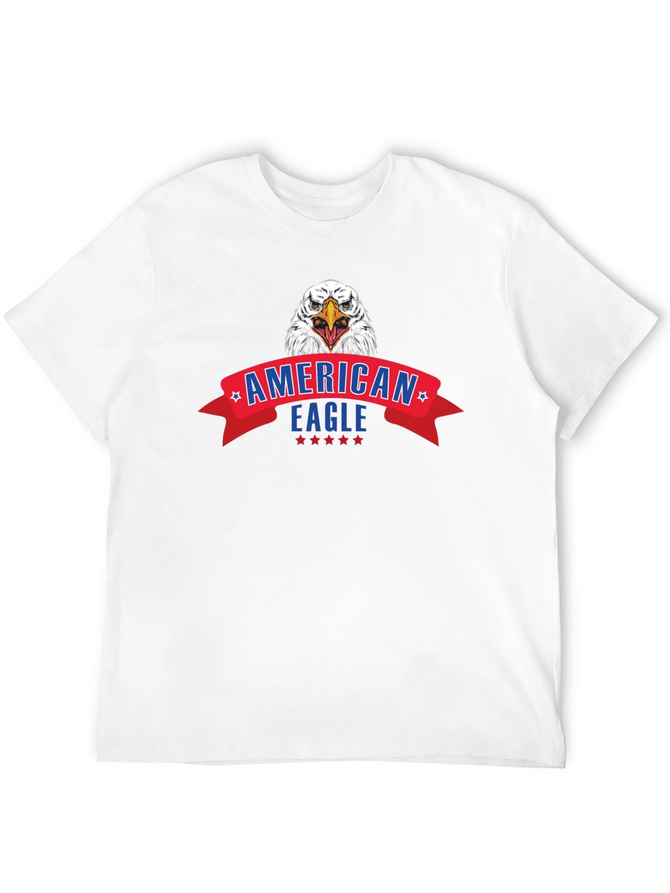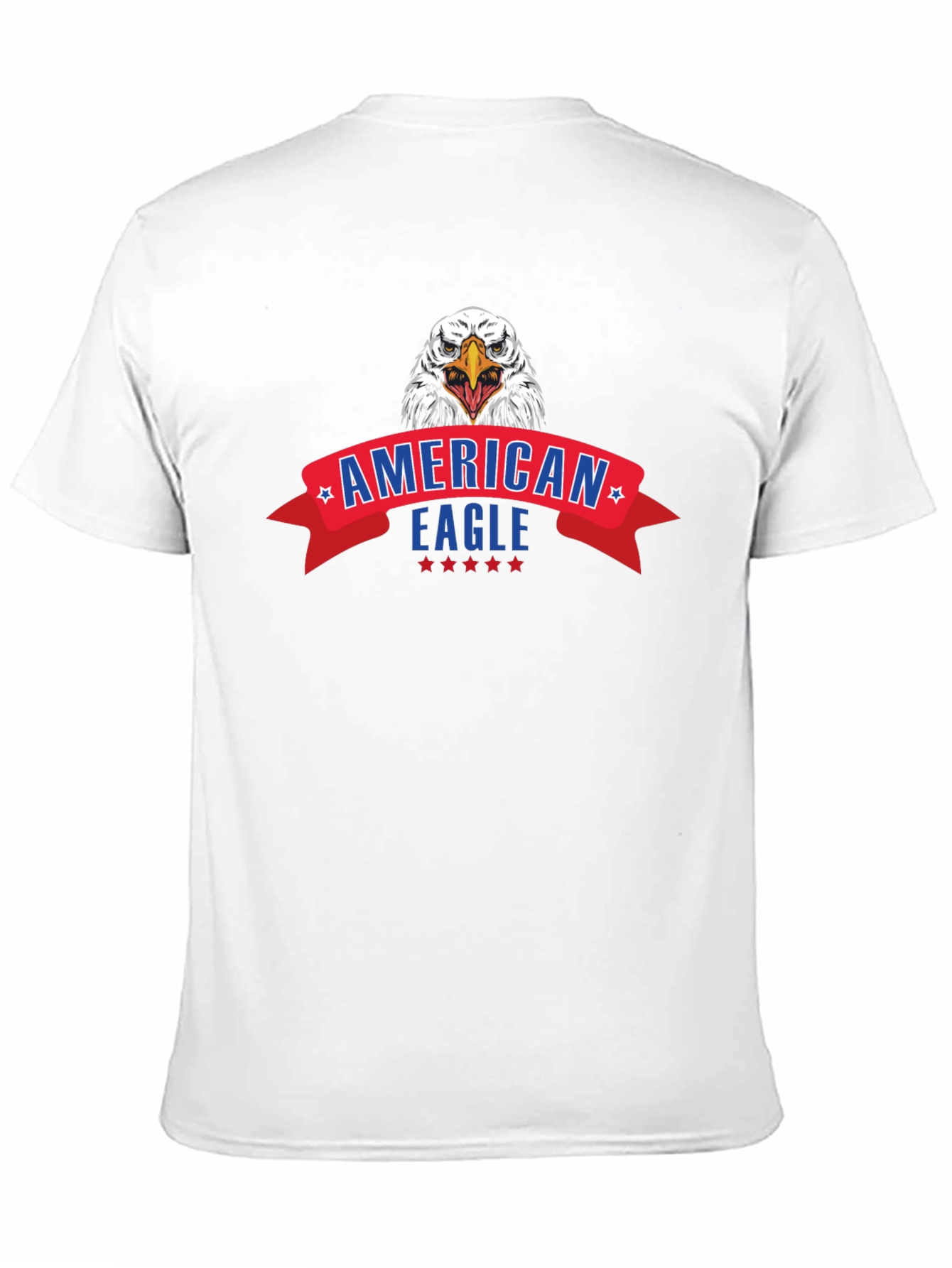 Show your patriotism with this bold black t-shirt featuring a striking American Eagle graphic. The design includes a fierce eagle head above a vibrant red banner with 'American Eagle' text and star accents. Crafted from a comfortable and breathable fabric, this tee is perfect for casual wear, holidays, or expressing your love for the USA. Pair it with jeans or shorts for a relaxed, stylish look that's sure to turn heads. This eye-catching t-shirt makes a great gift for anyone proud of their country.