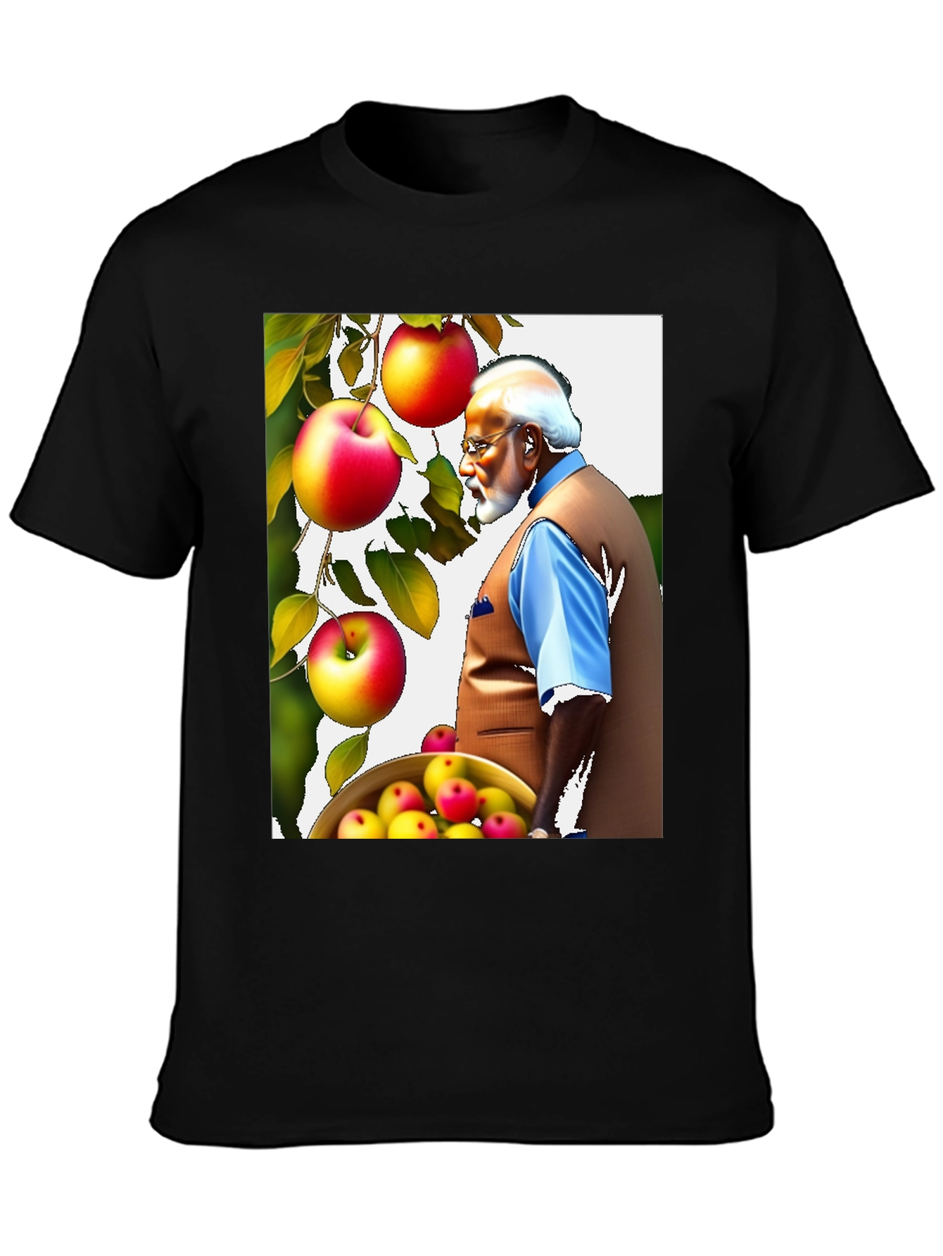 Showcase your unique style with this eye-catching black T-shirt. Featuring a vibrant graphic of apples and a man, this tee offers a blend of whimsy and artistry. The crisp, detailed image ensures a standout look, making it perfect for casual outings or expressing your personality. Made from comfortable, breathable fabric, it's ideal for everyday wear. Pair it with jeans or shorts for a relaxed yet fashionable ensemble. Elevate your wardrobe with this conversation-starting piece!