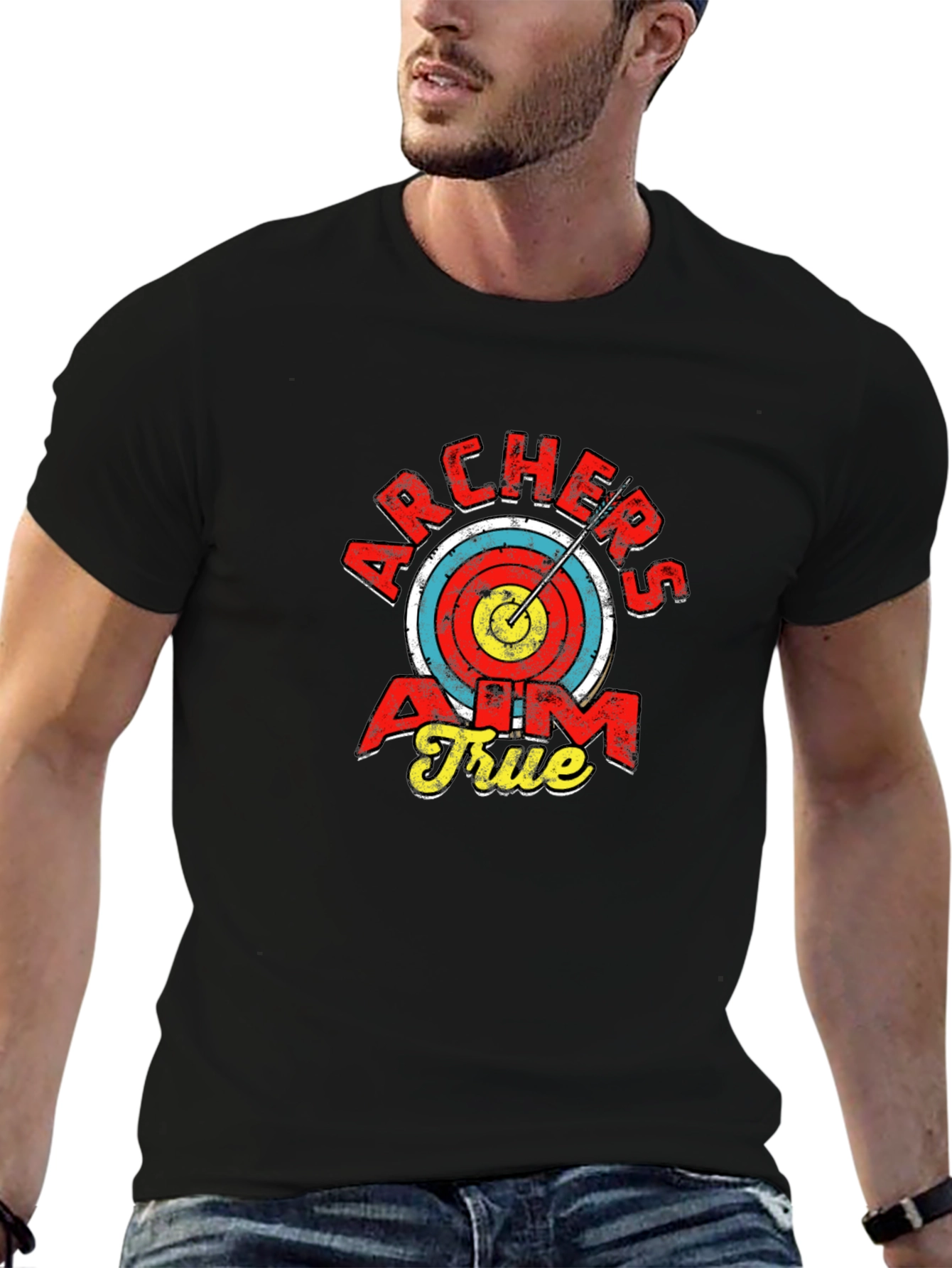 Show your love for archery with this awesome Archers Aim True T-shirt. The design features a classic archery target with an arrow and bold lettering in retro colors. This tee is perfect for archery enthusiasts, hunters, or anyone who appreciates a vintage-inspired look. Made from soft and comfortable fabric, this shirt will keep you feeling great all day long, whether you're at the range, in the woods, or just hanging out. Grab yours now and aim true!