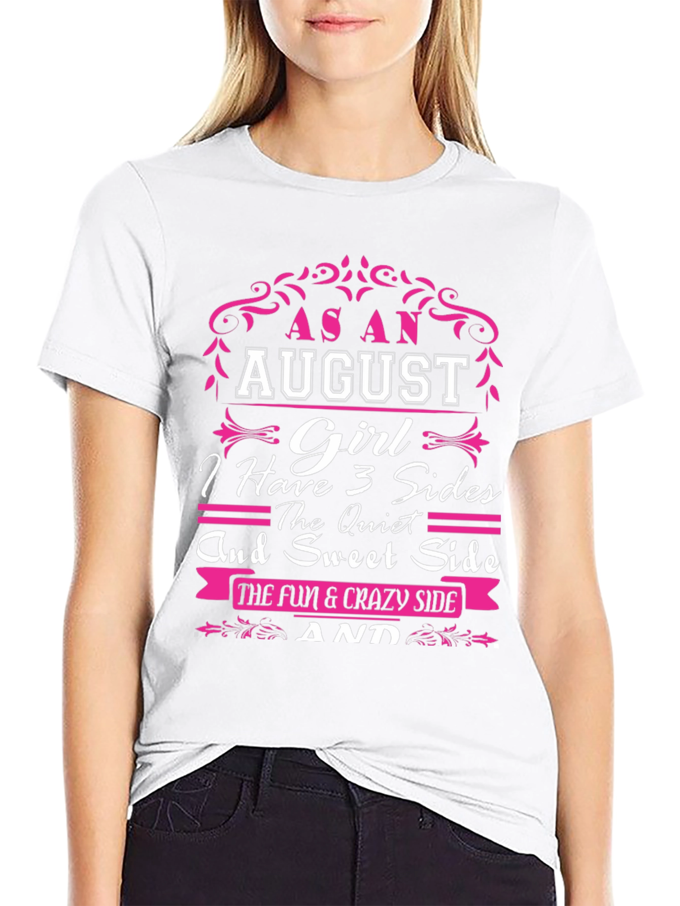 Showcase your August spirit with this unique black t-shirt! The design features the phrase "AS AN AUGUST Girl I Have 3 Sides, The Quiet And Sweet Side, THE FUN & CRAZY SIDE AND". This t-shirt is perfect for casual wear, birthday celebrations, or as a thoughtful gift for an August-born woman in your life. The eye-catching design is sure to spark conversations and add a touch of personality to any outfit. Made from comfortable materials, it's ideal for everyday wear.