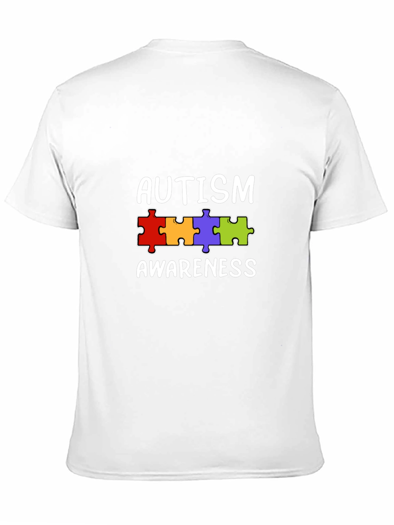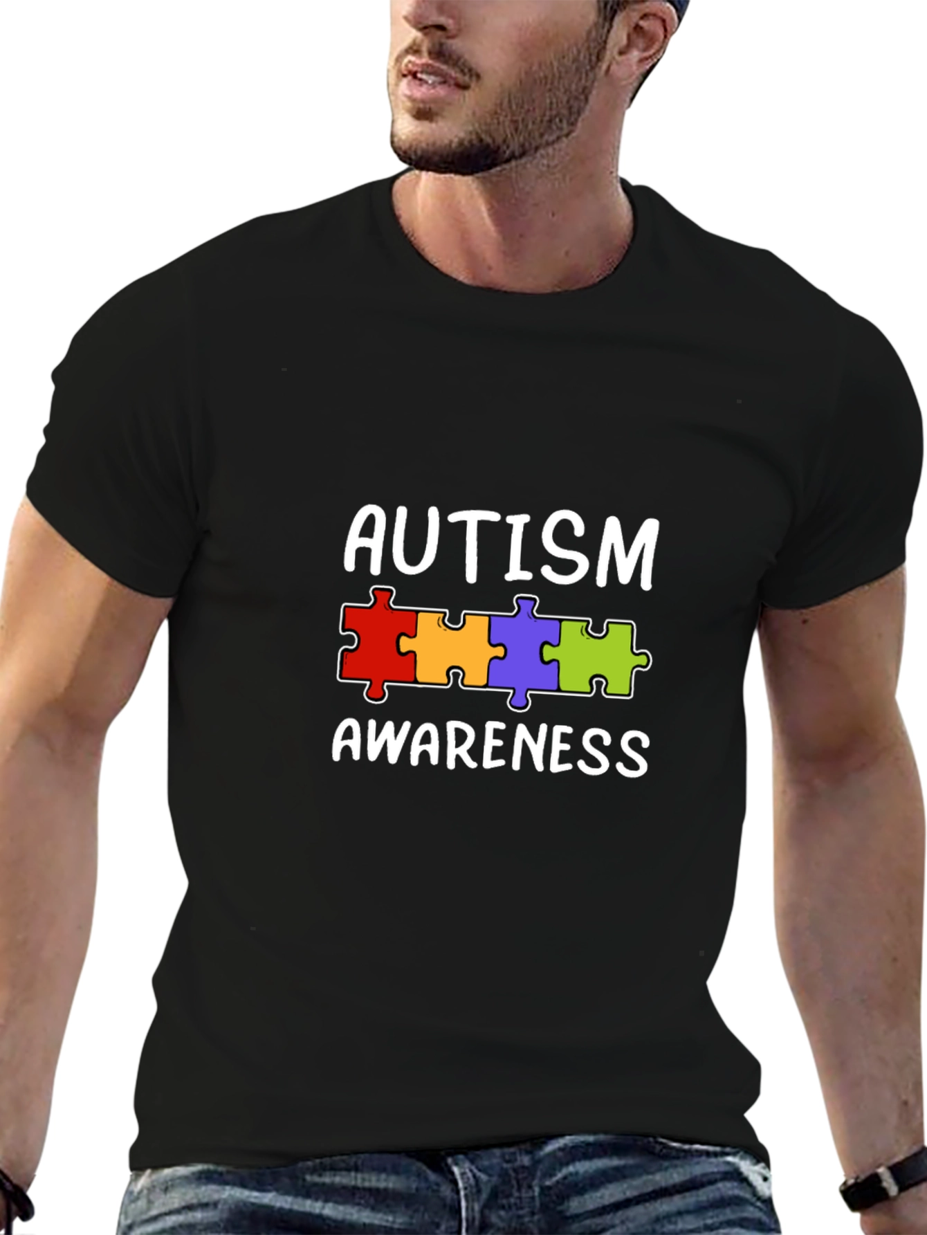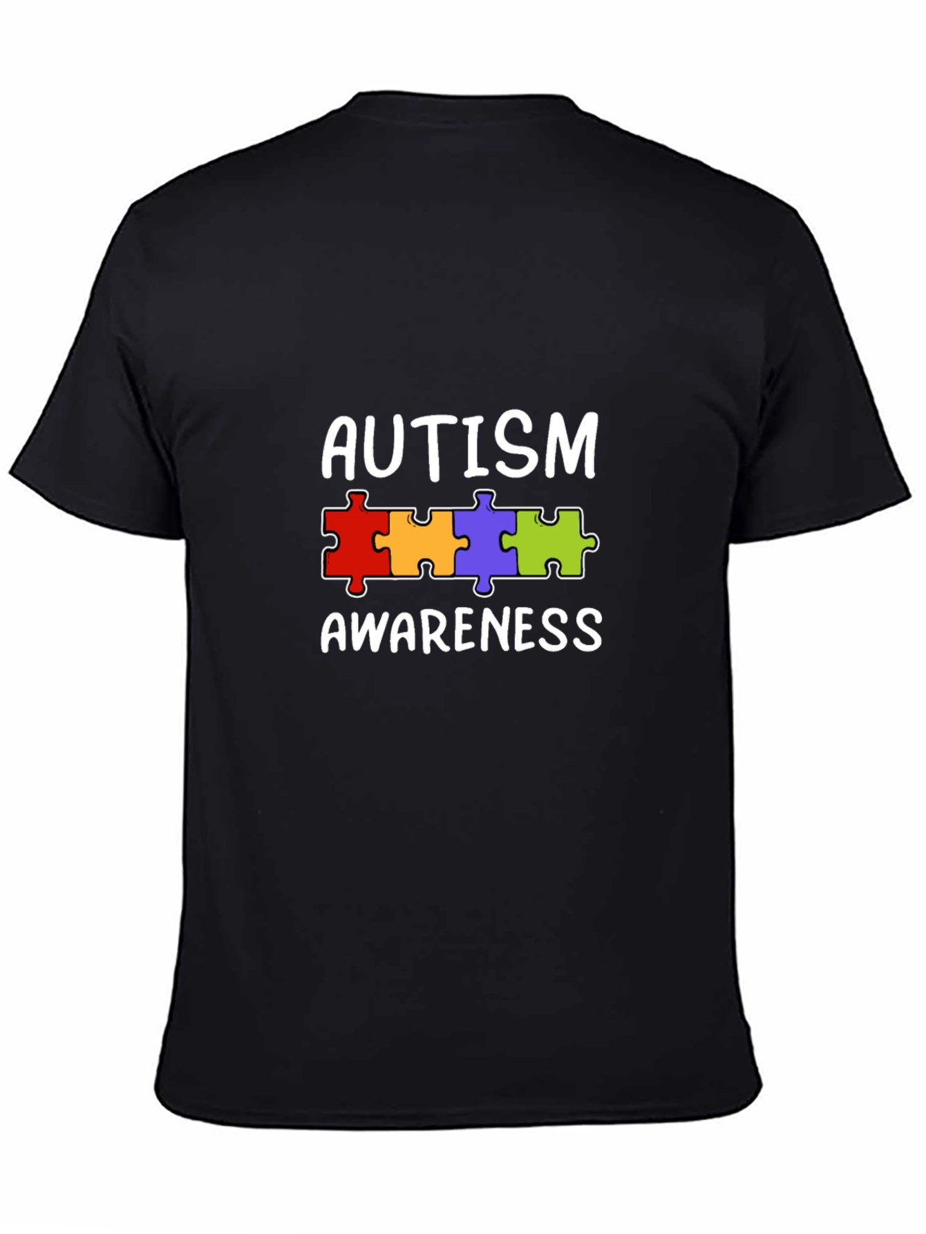 Show your support with this Autism Awareness T-shirt. Featuring a classic black tee, this shirt boldly displays "Autism Awareness" with vibrant, interconnected puzzle pieces, symbolizing the unity and support for individuals with autism. Ideal for walks, events, or everyday wear, this T-shirt will help spread awareness. Made of comfortable, breathable cotton blend, this shirt is perfect for any occasion.