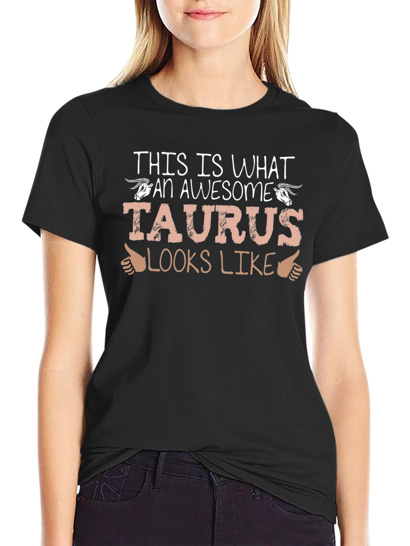 Show off your zodiac pride with this stylish black t-shirt! Featuring a bold design that reads "This is what an awesome Taurus looks like," this shirt is perfect for anyone who loves astrology. The word "Taurus" is highlighted in a unique, eye-catching font. Two thumbs-up graphics and artistic bull illustrations accent the text, adding a playful touch. Made from soft, comfortable fabric, this tee is great for everyday wear. Ideal for casual outings, astrology meetups, or as a thoughtful gift for the Taurus in your life. Get yours today and let everyone know how awesome you are!