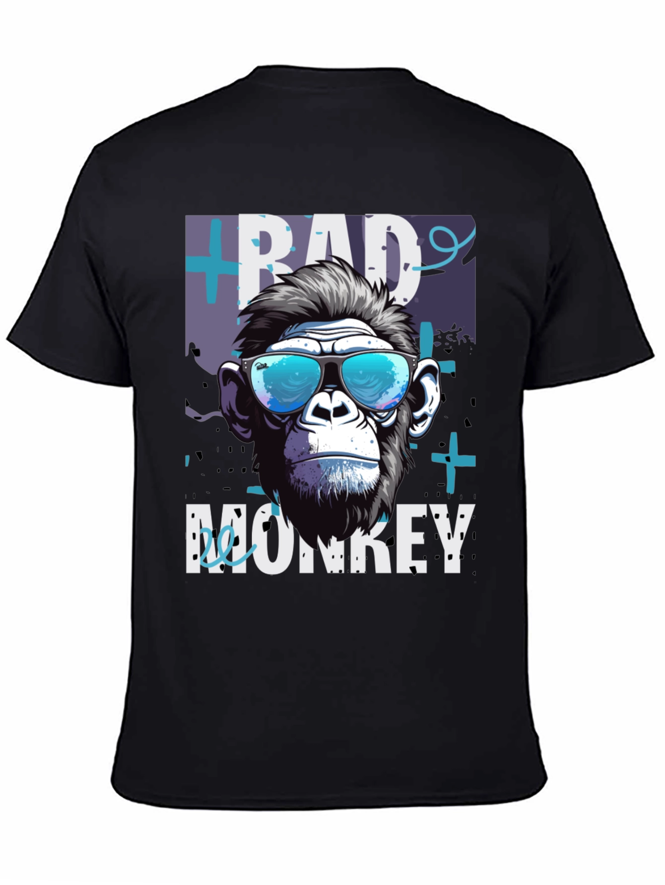 Show off your edgy style with this cool "Bad Monkey" graphic tee! This black t-shirt features a stylish chimpanzee illustration wearing sunglasses, set against a backdrop of abstract blue and white designs. The bold "BAD MONKEY" text adds a touch of rebellious charm. Made from a soft, comfortable fabric blend, this tee is perfect for casual wear, concerts, or making a statement wherever you go. Pair it with jeans or shorts for an effortlessly cool look. Get yours today and unleash your inner wild side!