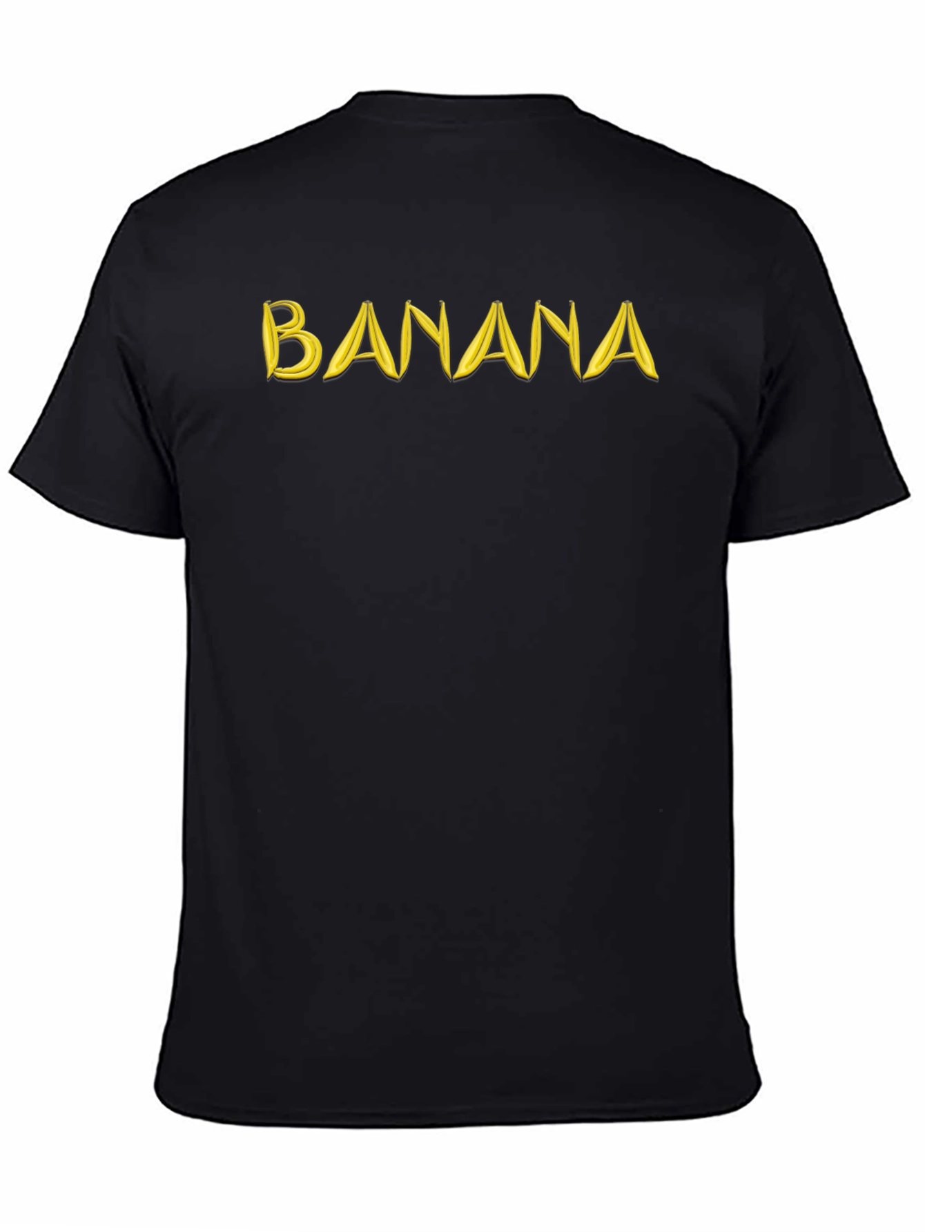 This eye-catching black t-shirt features the word "BANANA" prominently displayed across the chest, with each letter cleverly designed to resemble the fruit itself. Made from what appears to be a soft, breathable cotton fabric, this tee offers both style and comfort. The short sleeves and classic crew neck make it a versatile piece for casual wear. Perfect for fruit lovers, quirky fashion enthusiasts, or anyone looking to add a playful touch to their wardrobe. This unique tee is sure to be a conversation starter wherever you go.
