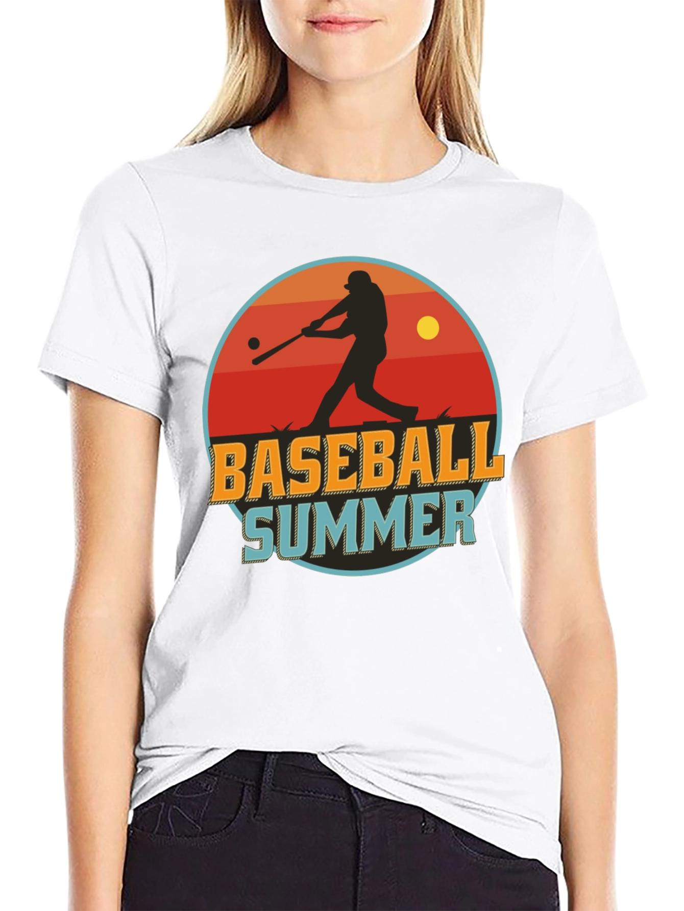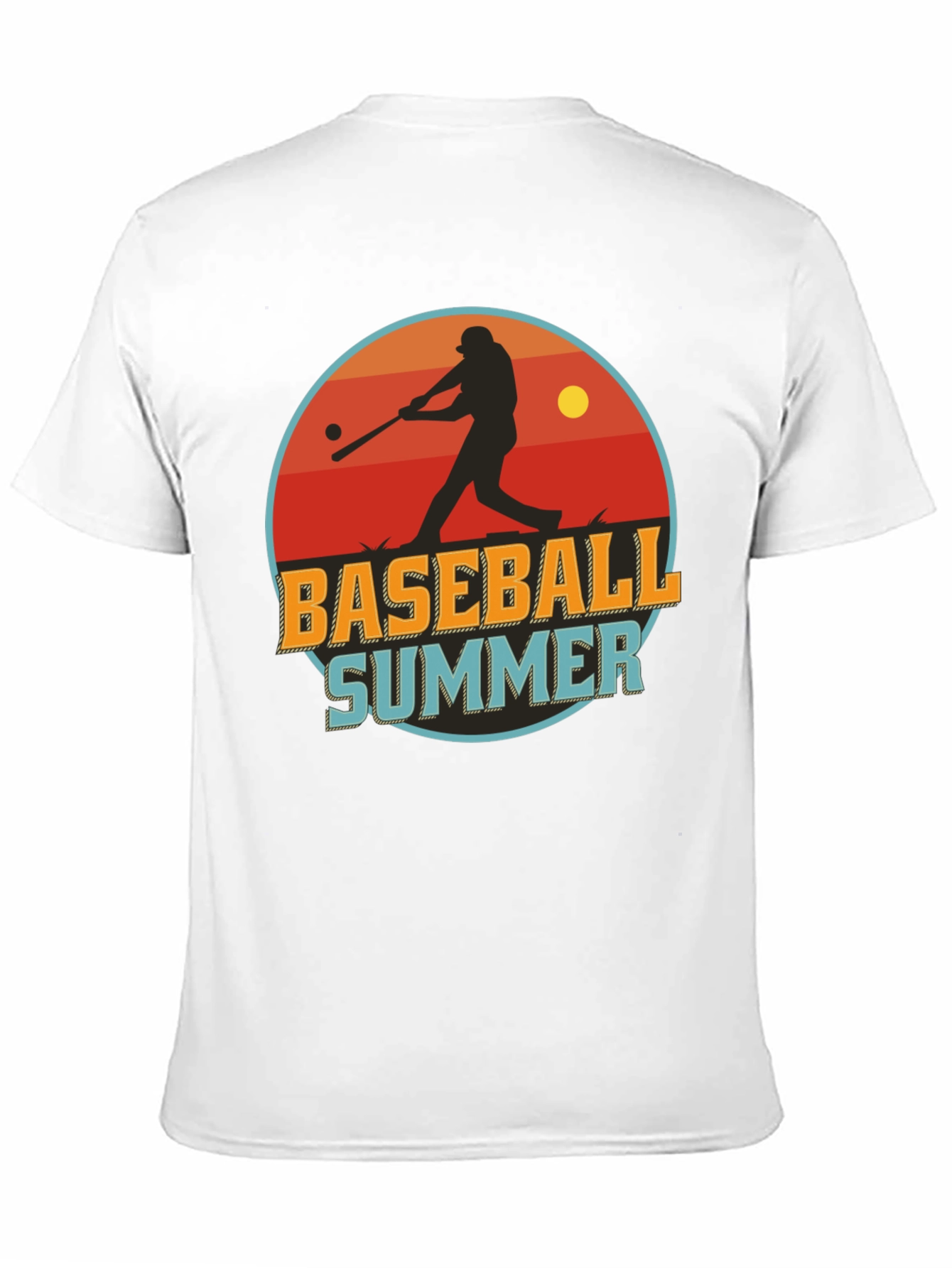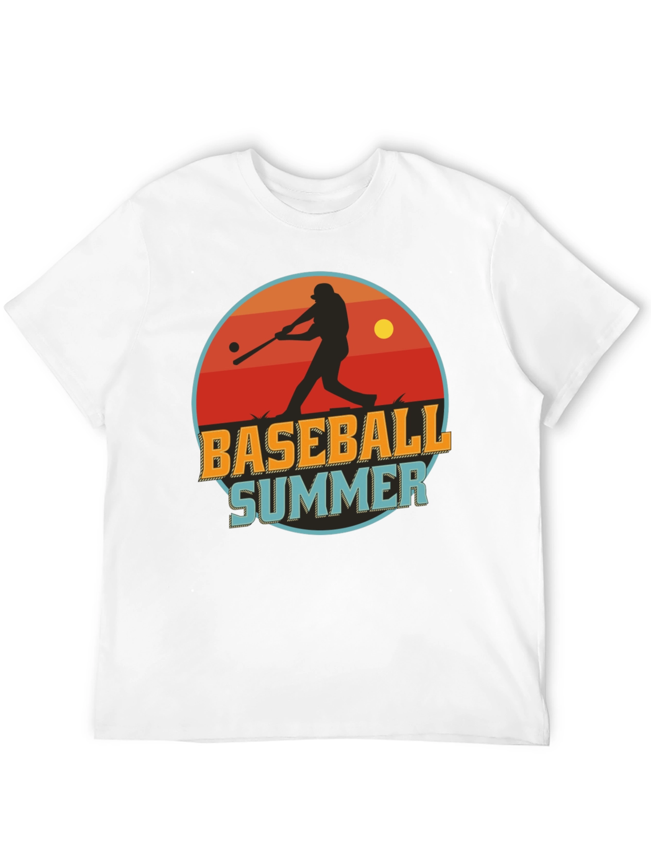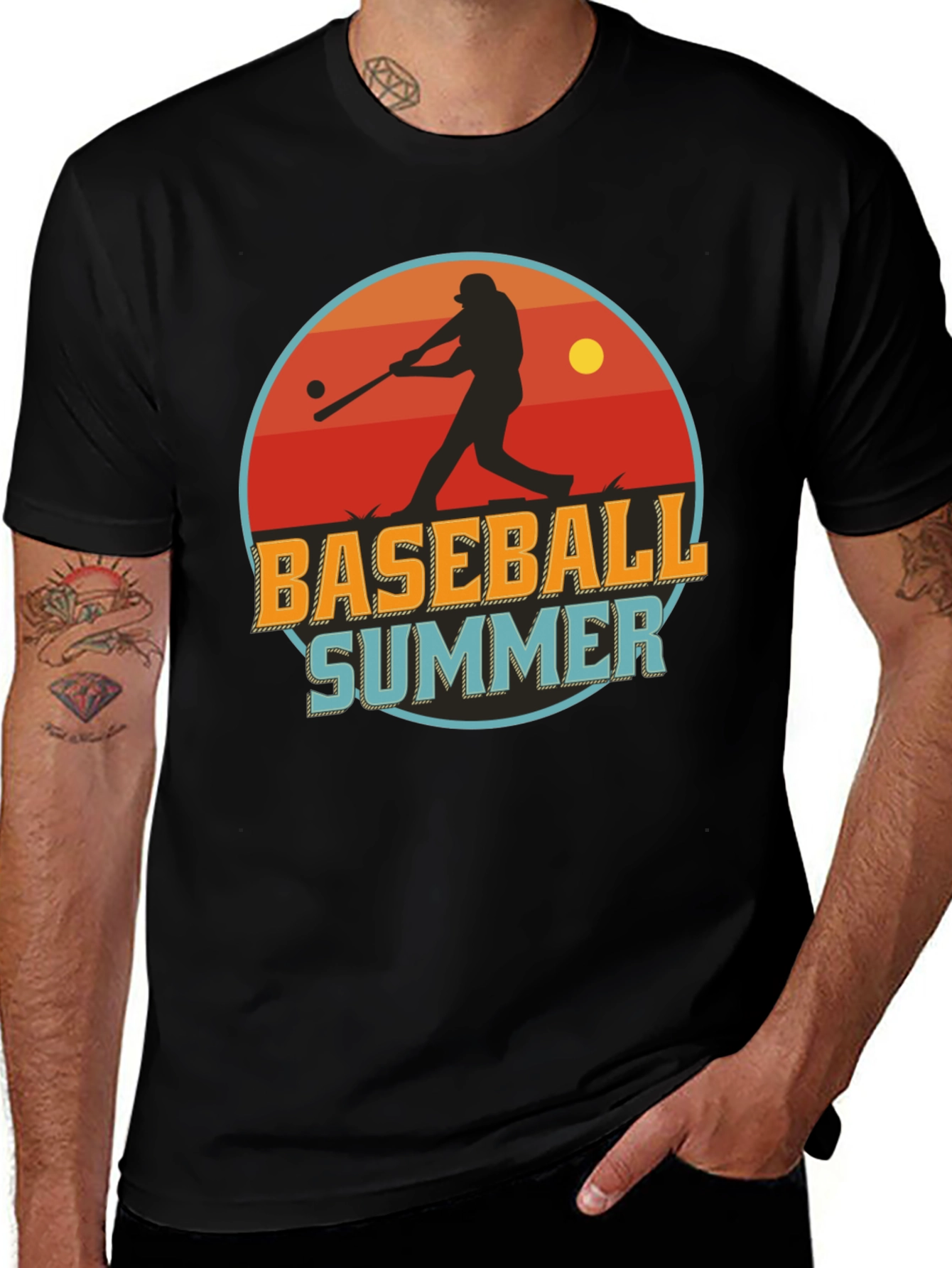 Step up to the plate in style with this Baseball Summer T-Shirt. This black tee features a vibrant, retro-inspired graphic of a baseball player hitting a ball against a sunset backdrop. The words 'BASEBALL SUMMER' are displayed in a bold, eye-catching font. Perfect for baseball fans and summer enthusiasts, this shirt offers a comfortable fit for everyday wear. Whether you're at the ballpark, hanging out with friends, or simply enjoying the warm weather, this t-shirt is a great way to show off your love for the game and the season.
