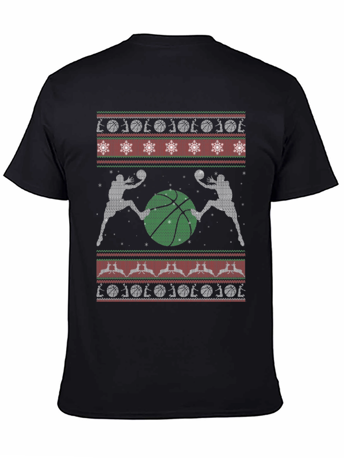 Show off your love for basketball and the holiday season with this unique Christmas sweater t-shirt! The shirt features a festive basketball-themed design with a large basketball in the center and players on each side, complete with snowflakes and reindeers in a knitted sweater style. This fun shirt is ideal for Christmas parties, basketball games, or casual wear during the holiday season. It's sure to be a conversation starter and spread holiday cheer wherever you go. Get into the holiday spirit with this one-of-a-kind t-shirt!