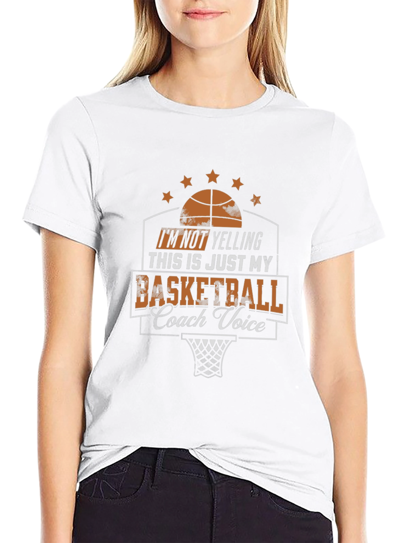 Show your passion for basketball with this stylish black graphic t-shirt. The design features a distressed print that says "I'm Not Yelling This is Just My Basketball Coach Voice", complete with a basketball graphic and a basketball net. It's a perfect way to express your love for the game or support your favorite team. Made from comfortable, breathable fabric, this shirt is ideal for coaches, players, and fans alike. Wear it to games, practices, or casual outings and let everyone know that you are serious about basketball.