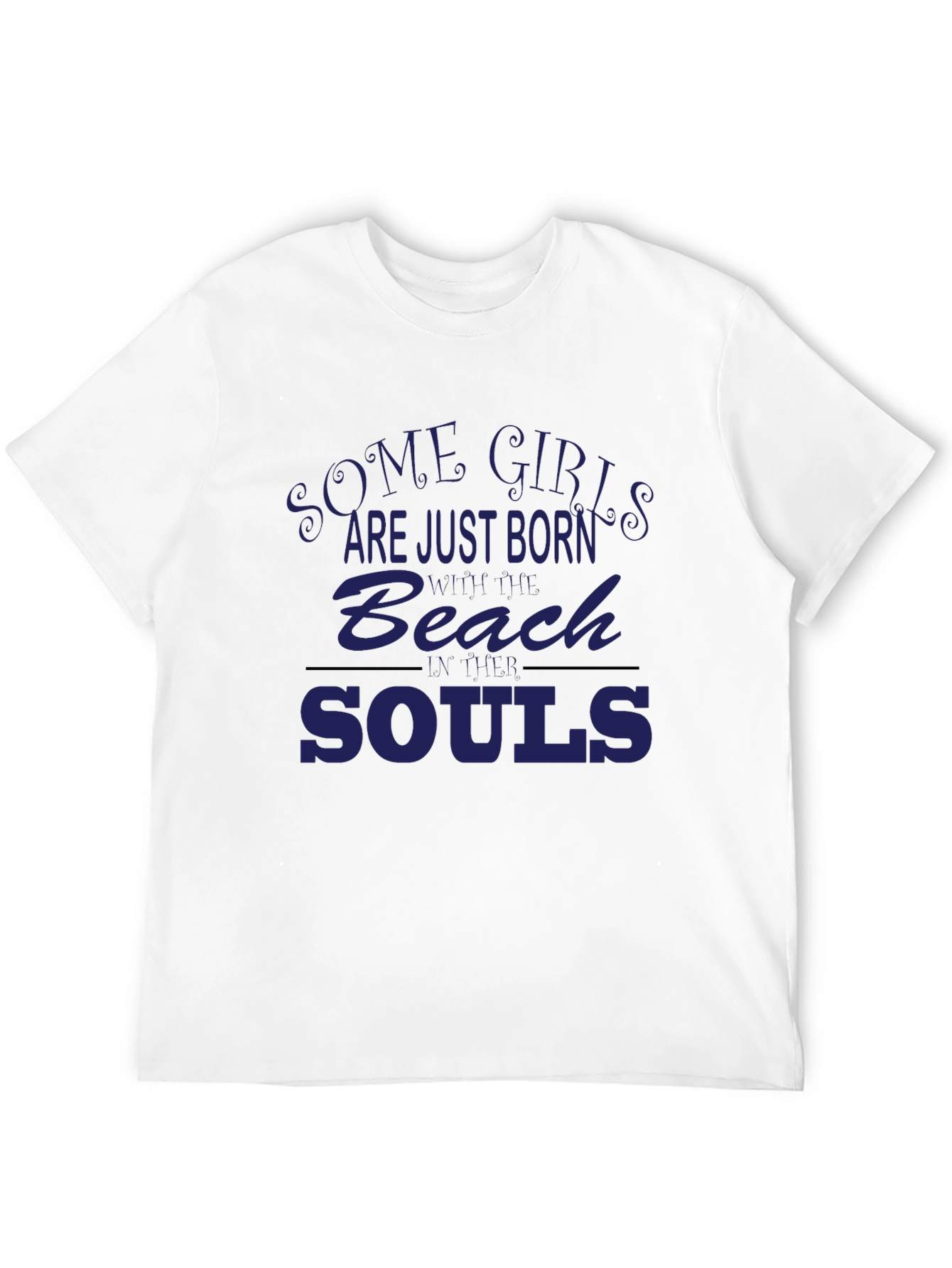 Embrace your inner beach lover with this stylish black graphic tee. Featuring the phrase "Some Girls are Just Born Beach Souls" in a cool, blue vintage-inspired font, this t-shirt is perfect for casual wear and expressing your love for the ocean. Made from soft, comfortable fabric, it's ideal for beach days, summer outings, or just lounging around. The classic unisex fit makes it a great choice for anyone. Show off your free spirit and beach vibes with this must-have tee!
