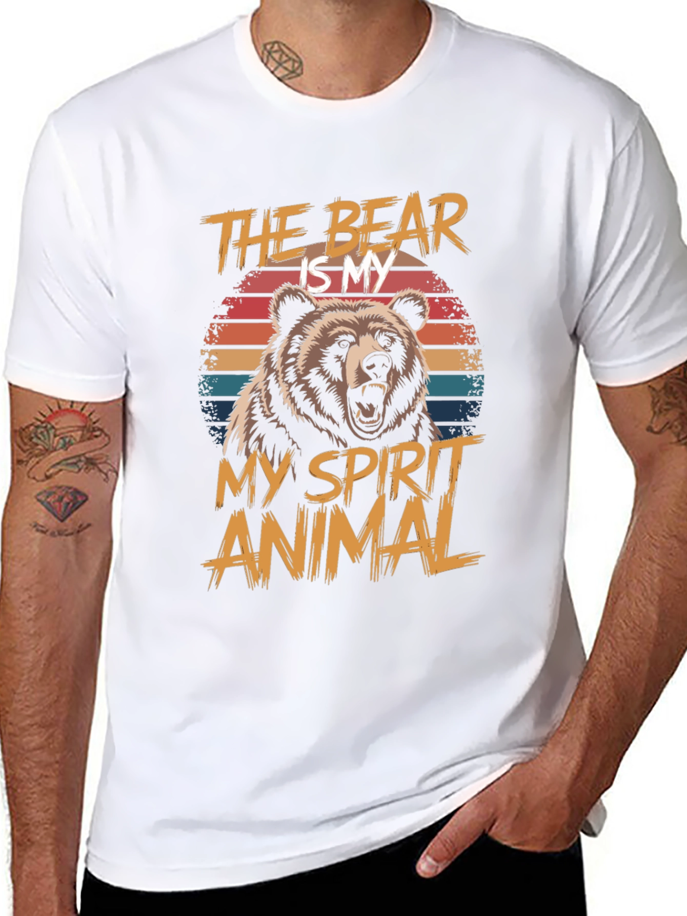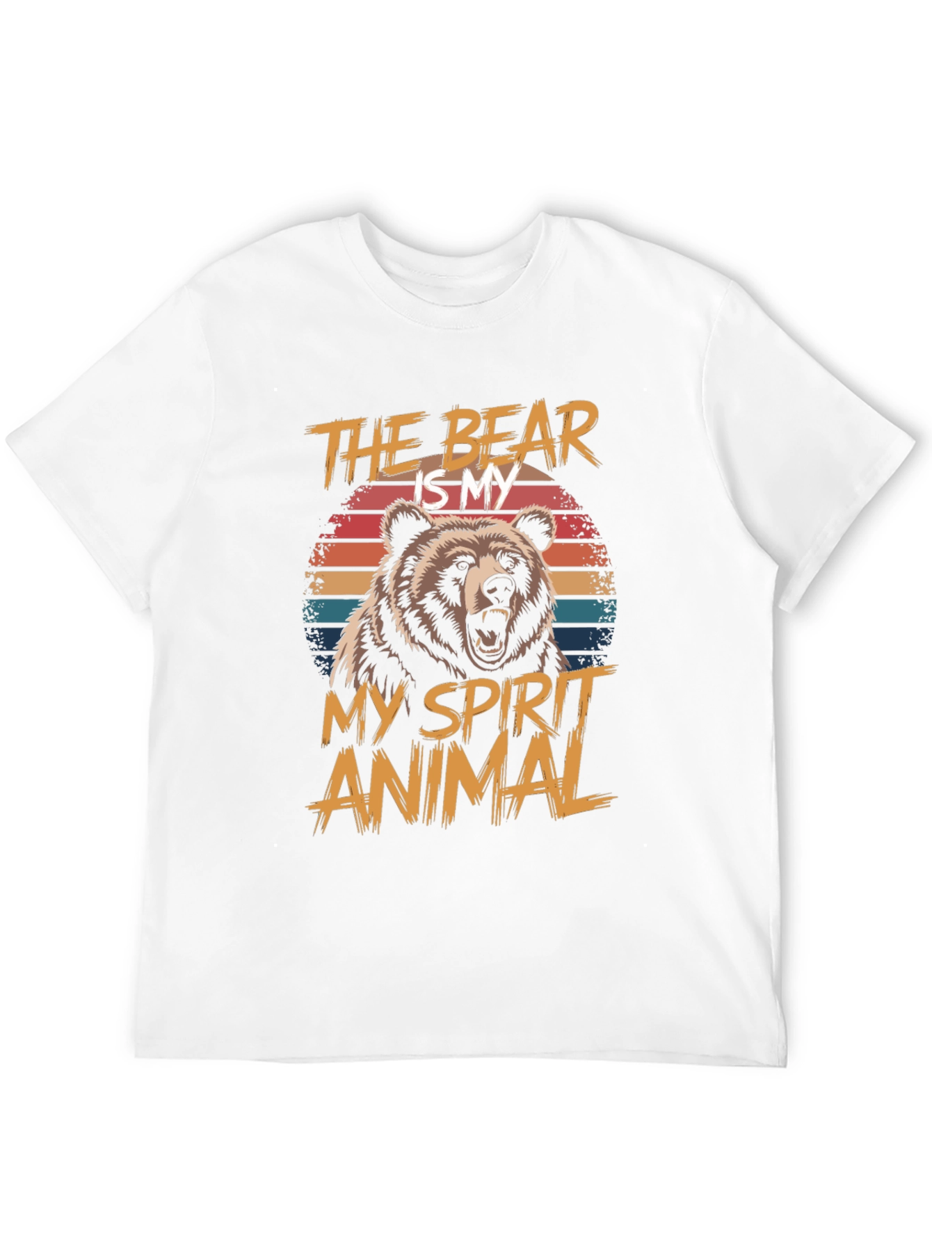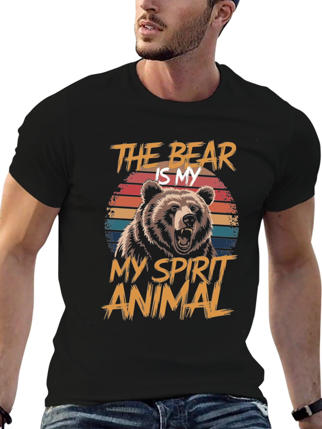 Show off your wild side with this unique t-shirt. The shirt features a bold graphic of a bear set against a vibrant sunset, accompanied by the text "The Bear is My Spirit Animal". Made from comfortable, breathable fabric, this tee is perfect for everyday wear or outdoor adventures. The classic fit ensures a relaxed and stylish look. Ideal for animal lovers and nature enthusiasts, this t-shirt makes a statement. Get yours today and unleash your inner spirit animal!