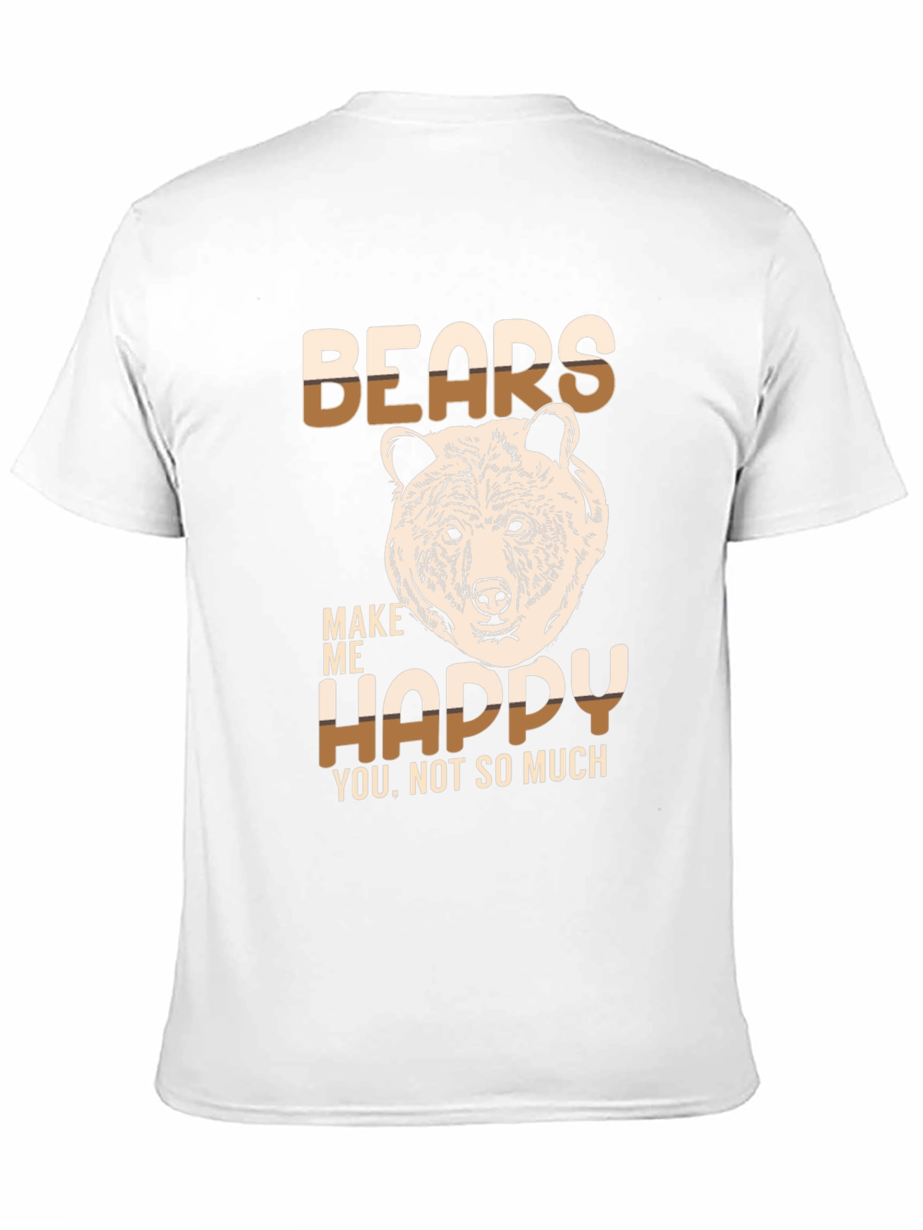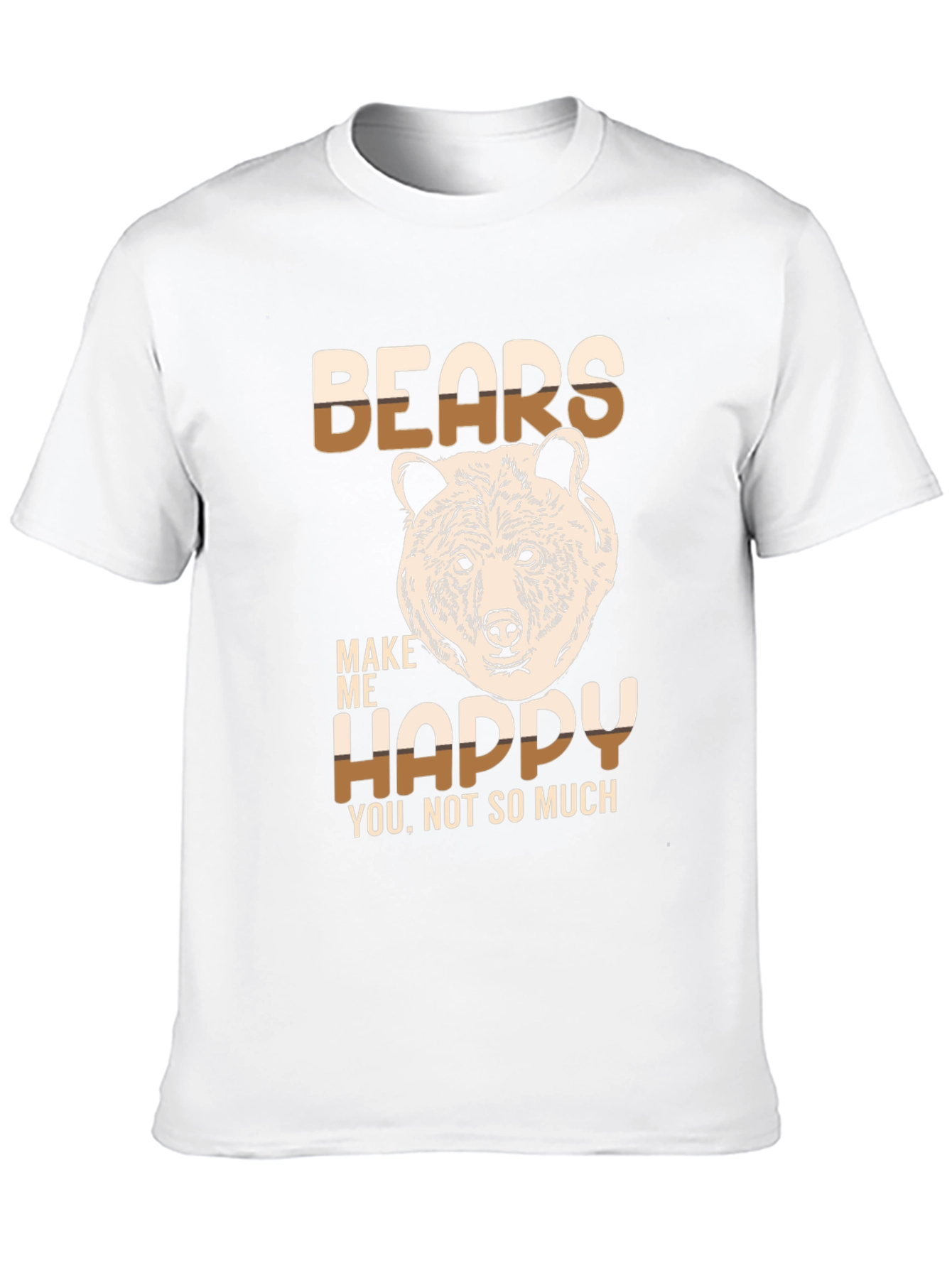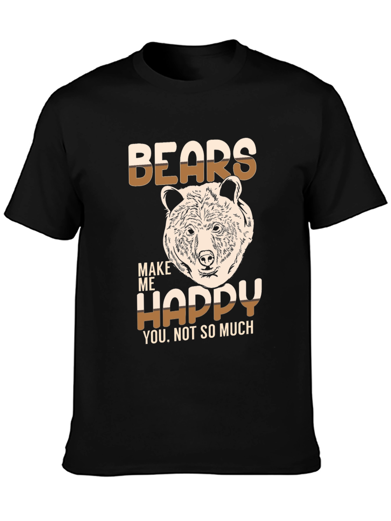 Show your love for bears with this stylish graphic t-shirt. The shirt features a unique design with the words "BEARS MAKE ME HAPPY" and an illustration of a bear's head. The text is two-tone, cream and brown, which contrasts well with the black tee. Made from soft, breathable fabric, this t-shirt is comfortable to wear all day long. The short-sleeved design makes it perfect for casual wear. Whether you're exploring the outdoors or just relaxing at home, this t-shirt is a great way to express your passion for bears. A perfect gift for bear enthusiasts!