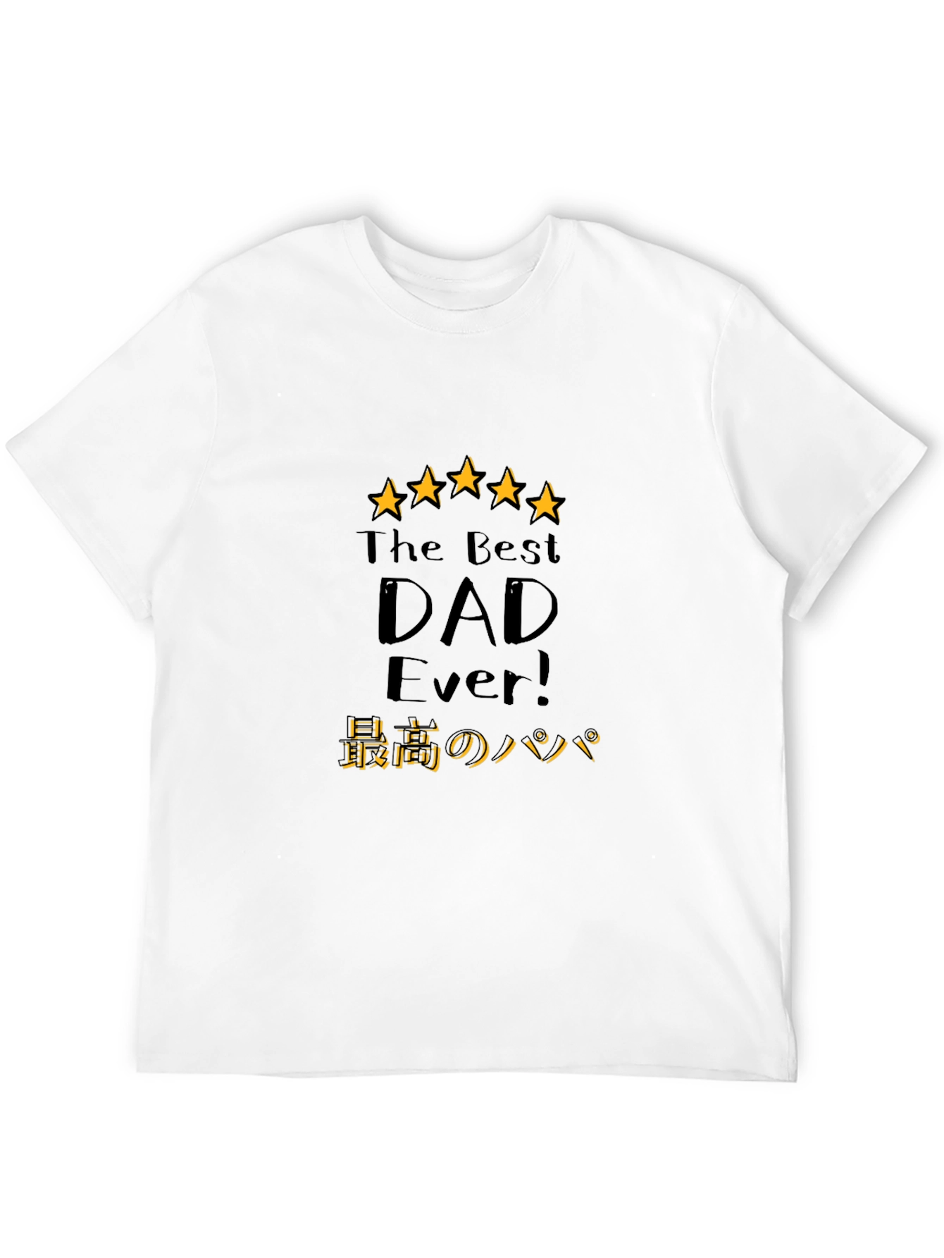 Show your appreciation with this stylish "Best Dad Ever" graphic tee. This black t-shirt features a fun design with five stars, the phrase "The Best DAD Ever!" and Japanese text. The design makes it an ideal gift for Father's Day, birthdays, or just to show your dad how much you care. The shirt is perfect for casual wear, family outings, or relaxing at home. Give the gift of comfort and style with this memorable tee!