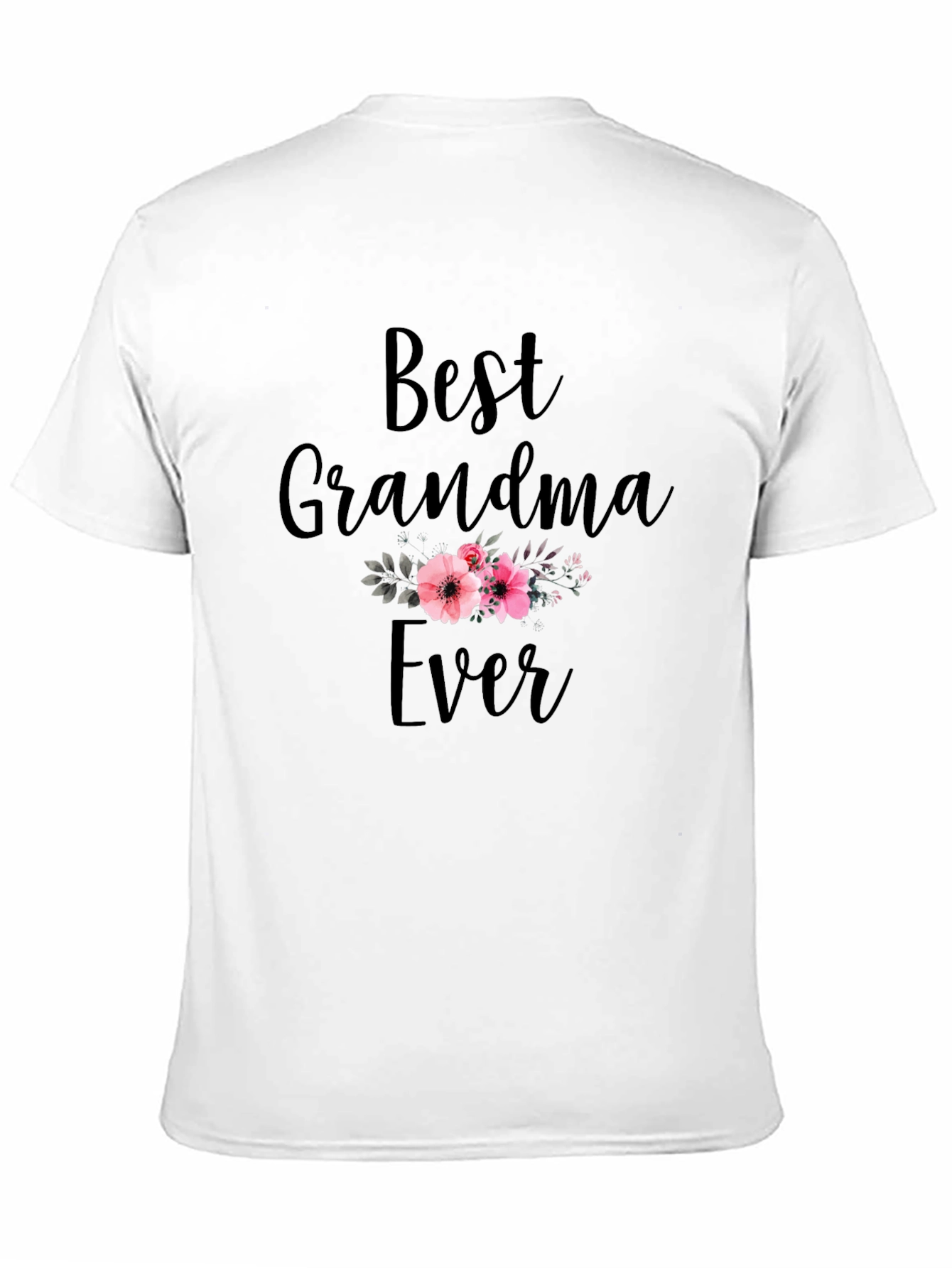 Show your love with this stylish black t-shirt! The shirt features the phrase "Best Grandma Ever" in an elegant font. Adorned with delicate floral accents, this shirt is perfect for gifting to your amazing grandma. Made from comfortable, breathable fabric, it’s ideal for everyday wear or special occasions. This charming tee is a wonderful way to celebrate the best grandma in the world. Order now and let your grandma wear her title with pride!