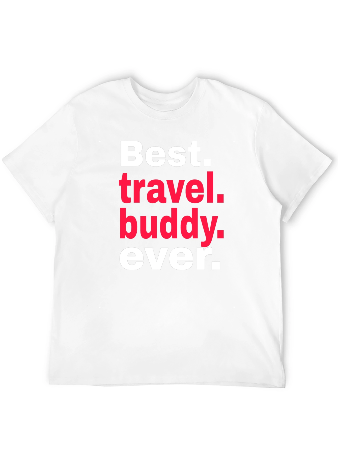 Show off your love for travel with this stylish black t-shirt. Featuring a bold white and red text design that reads 'Best. Travel. Buddy. Ever.' this tee is perfect for travel enthusiasts. The classic fit and soft fabric make it comfortable for all-day wear. Great for casual outings, weekend trips, or as a fun gift for your favorite travel companion. Whether you're exploring new cities or relaxing at home, this t-shirt is a great way to express your passion for adventure and friendship. Get yours today and wear your travel pride!