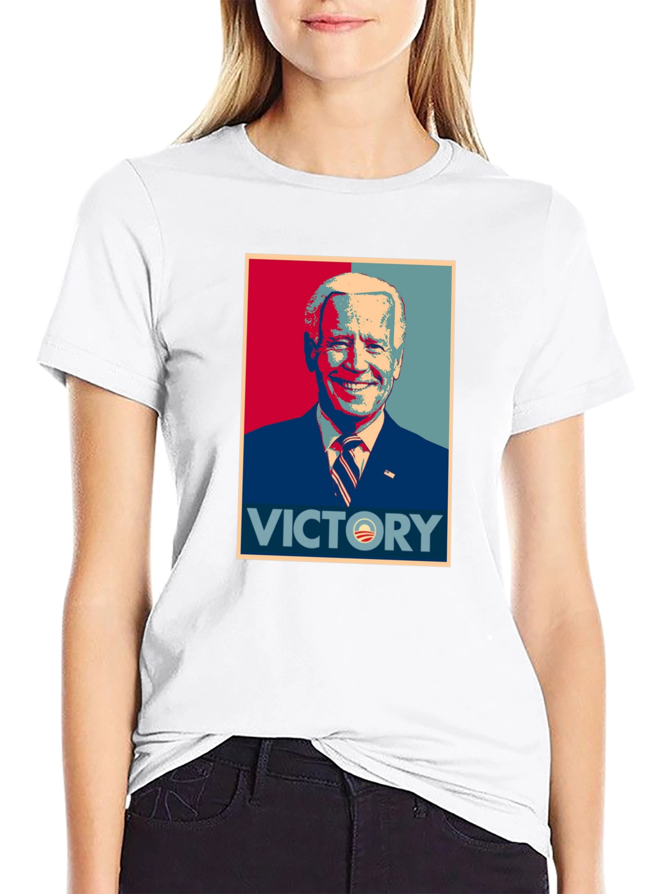 Show your support with this stylish black t-shirt featuring a bold graphic of President Biden. The eye-catching design incorporates a vibrant color palette with the word 'Victory'. Made from a comfortable, breathable fabric, this shirt is perfect for everyday wear, political rallies, or casual gatherings. The high-quality print ensures the design stays vibrant wash after wash. This t-shirt makes a statement while offering a comfortable fit. Get yours today and wear your support with pride!
