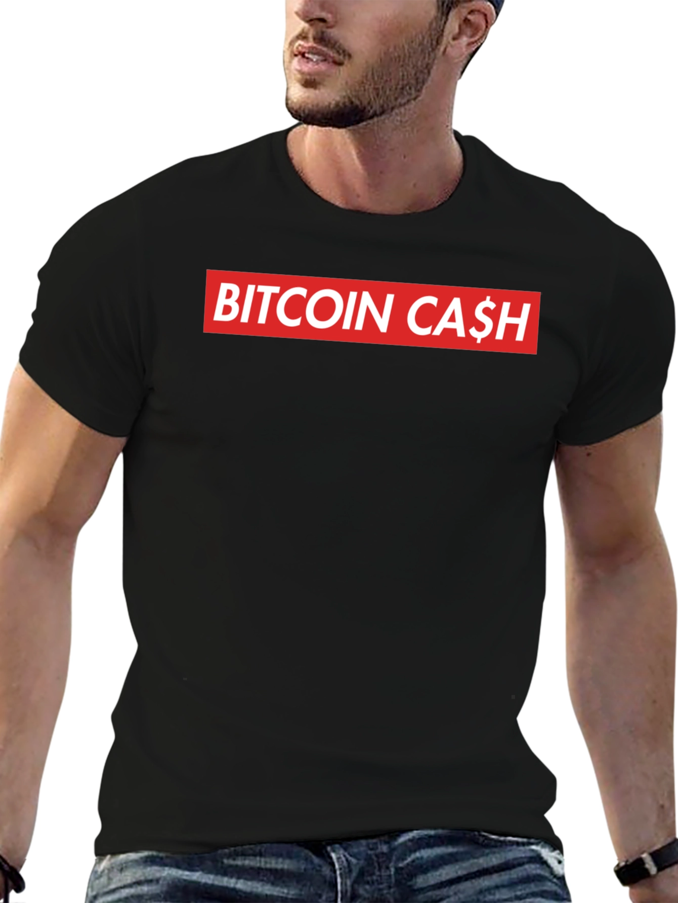 Show your support for Bitcoin Cash with this stylish graphic tee. The shirt features a bold, eye-catching "BITCOIN CA$H" design in a red box, printed on a black, soft-feel fabric. The minimalist design offers a modern, casual look. The classic crew neck and short sleeves make it a comfortable choice for everyday wear. Whether you're a crypto enthusiast, investor, or simply appreciate unique fashion, this tee is sure to turn heads and start conversations. It's perfect for casual outings, crypto meetups, or just lounging at home. Express your passion for the digital currency revolution with this standout tee.
