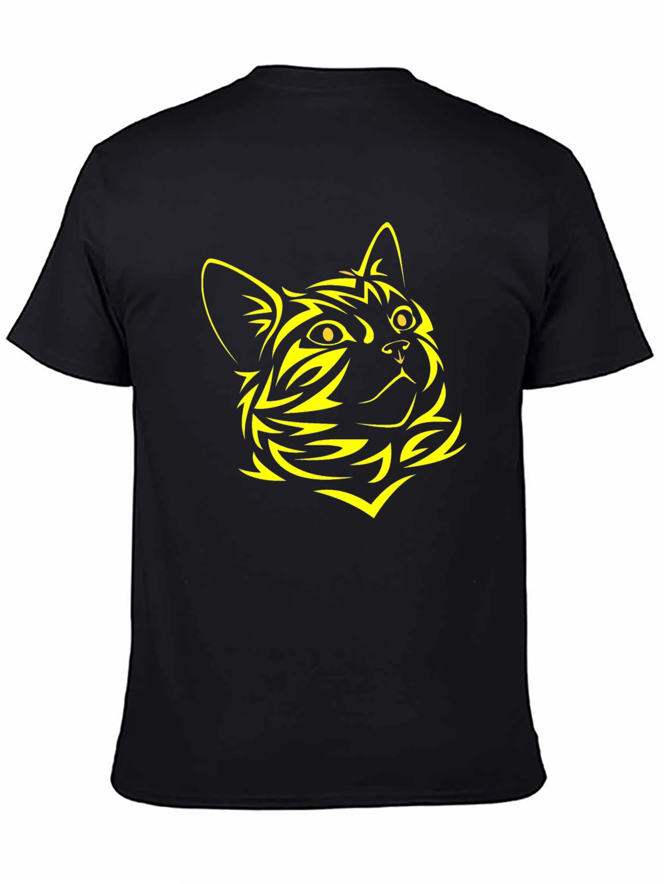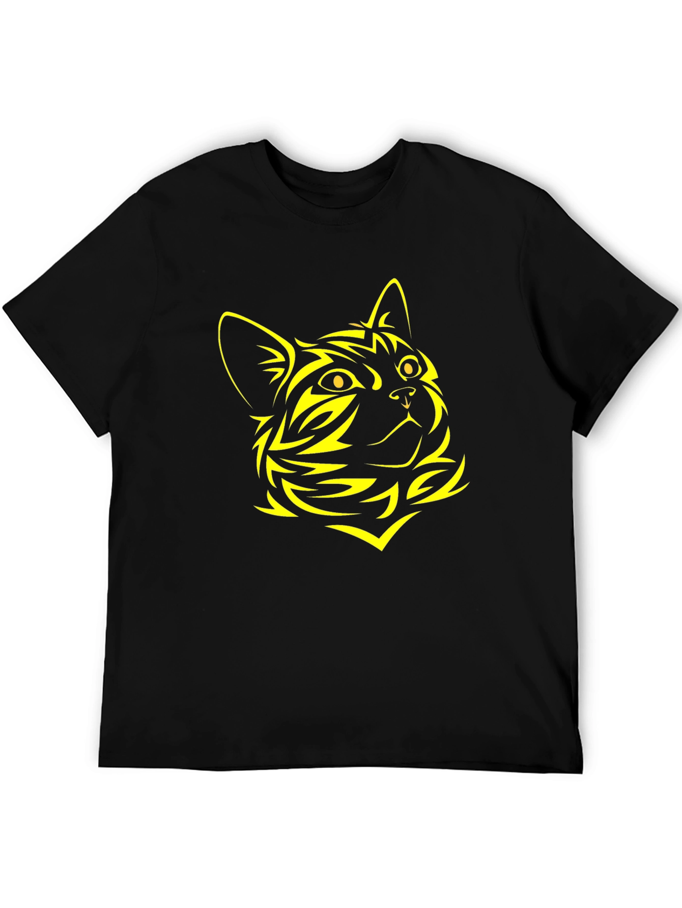 Show off your feline affinity with this striking black t-shirt. The shirt features a bold, eye-catching yellow graphic of a cat's face. The design is modern and stylized, making it a unique piece for casual wear. Made from comfortable fabric, this tee is perfect for everyday use. Wear it to show your love for cats or as a statement piece. It's versatile enough to pair with jeans, shorts, or skirts, making it a great addition to any wardrobe. This shirt is a must-have for cat lovers!