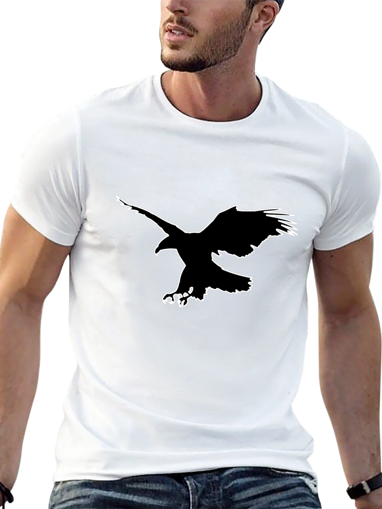 Soar in style with this striking black t-shirt featuring a bold eagle outline. Crafted from comfortable materials, this tee offers a relaxed fit that's perfect for everyday wear. The contrasting white eagle design adds a touch of edgy appeal, making it a versatile piece for casual outings, concerts, or just lounging around. Pair it with jeans, shorts, or joggers for an effortlessly cool look. Show your love for wildlife or add a unique touch to your wardrobe with this must-have eagle graphic tee.