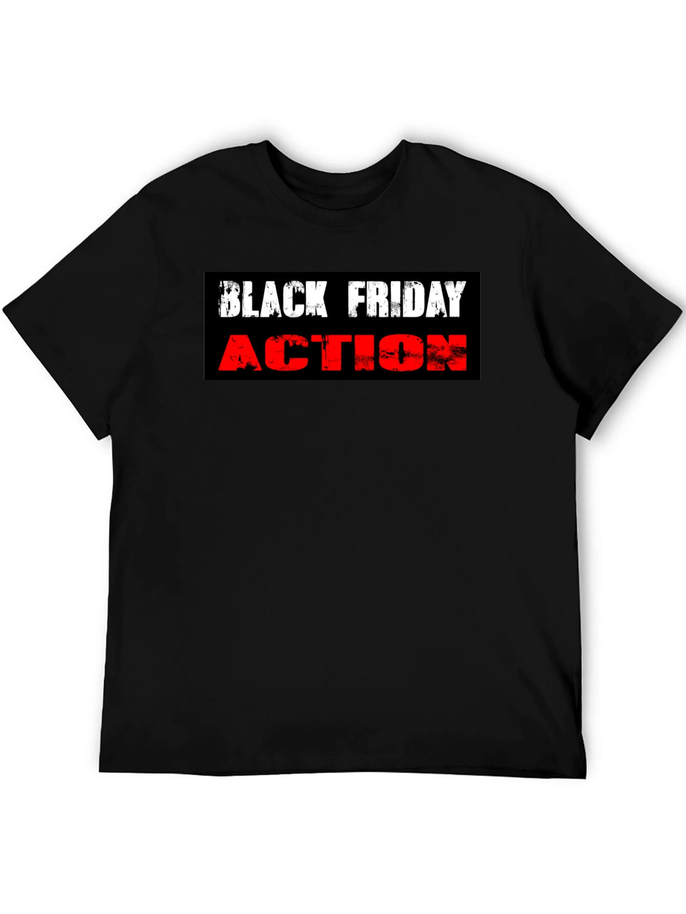 Get ready for Black Friday with this eye-catching graphic t-shirt! This bold tee features a distressed "Black Friday Action" design in striking white and red on a classic black background. Made from a comfortable, breathable fabric, this shirt is perfect for braving the shopping crowds or showing off your love for a good deal. The shirt has a short sleeve design and a relaxed fit. Make a statement this shopping season! A must-have for any bargain hunter.