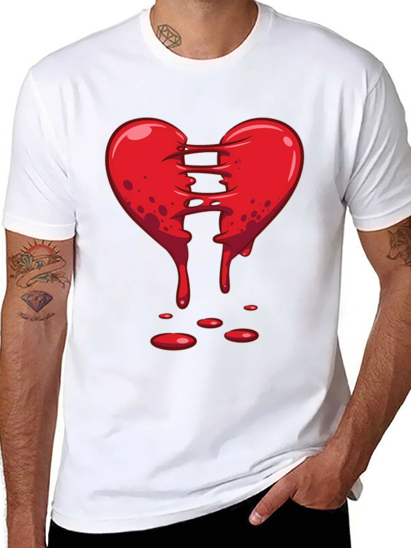 Express your unique style with this eye-catching black t-shirt. This soft, comfortable tee features a bold graphic of a red bleeding heart. The striking design adds a touch of edgy personality, making it perfect for casual wear. Stand out from the crowd with this unique t-shirt that combines comfort and expressive style. This t-shirt is ideal for casual outings, concerts, or simply lounging at home. Makes a great gift for those who love expressive apparel.