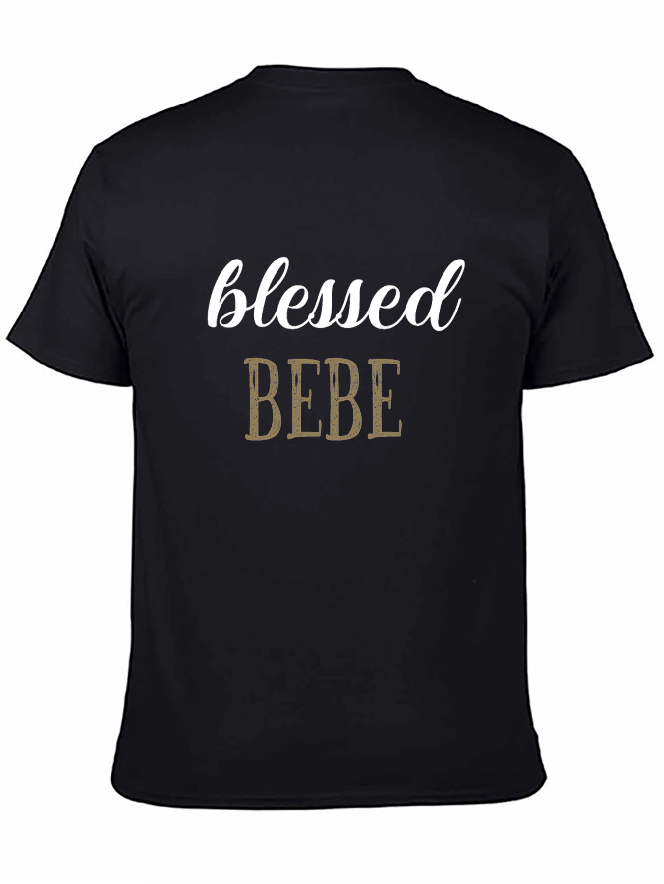 This classic black t-shirt features a stylish graphic print with the words "blessed" in a delicate white script font above the word "BEBE" in textured brown letters. The shirt appears to be made of a soft, comfortable material, perfect for everyday wear. The design is simple yet eye-catching, making it easy to pair with jeans, shorts, or leggings. It's a versatile piece that can be dressed up or down, suitable for casual outings, relaxed weekends, or even as a thoughtful gift. Show off your personal style with this unique and inspiring tee.