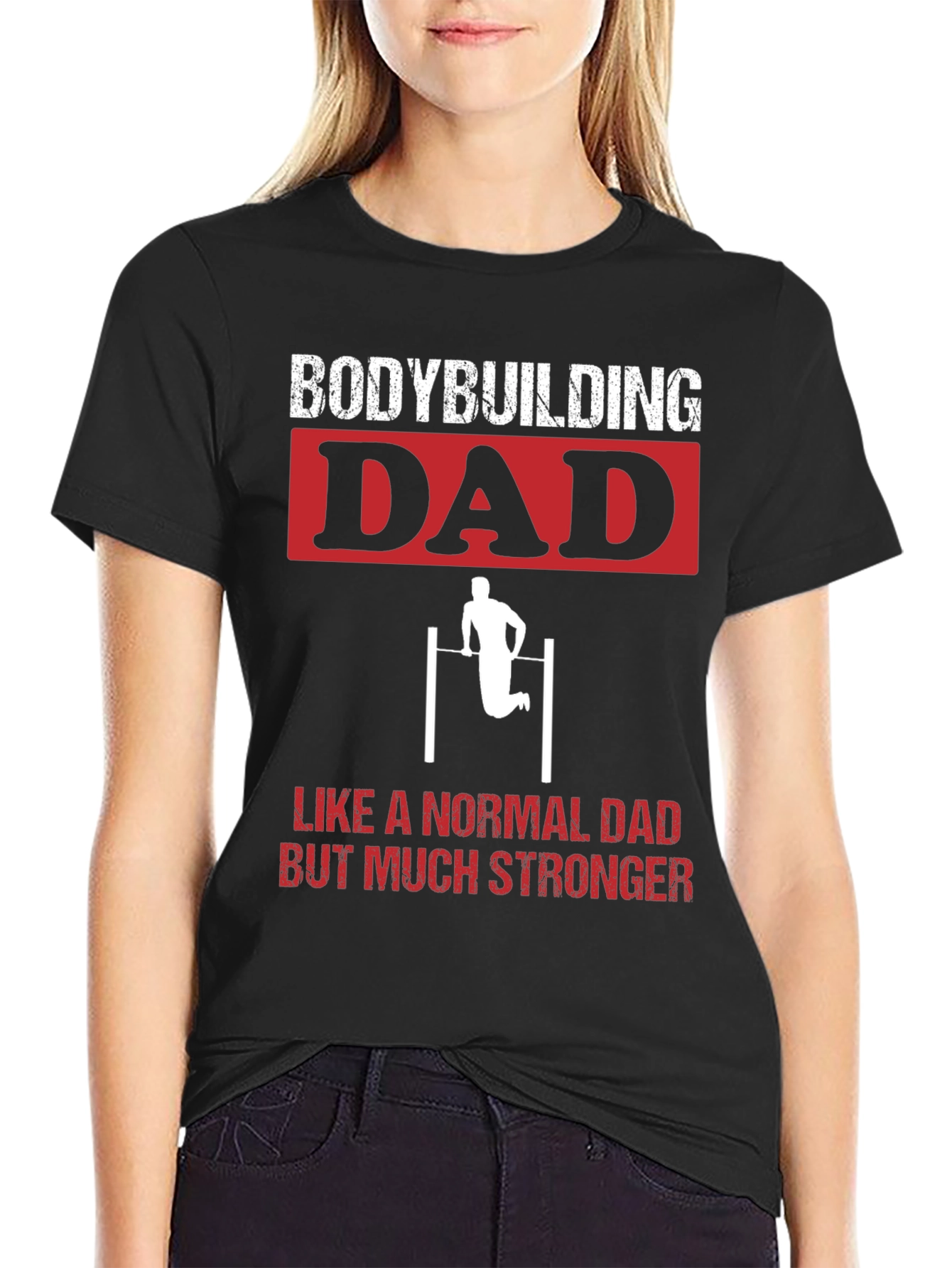 Show off your strength with this unique t-shirt! This black tee features a bold design with the words "BODYBUILDING DAD" in a striking font, complemented by an image of a man doing pull-ups. Below, the phrase "LIKE A NORMAL DAD BUT MUCH STRONGER" adds a humorous touch. Perfect for gym enthusiasts and proud fathers, this shirt combines comfort and style. Wear it to the gym, casual outings, or as a statement piece. Let everyone know you're not just a dad, but a strong, bodybuilding dad!