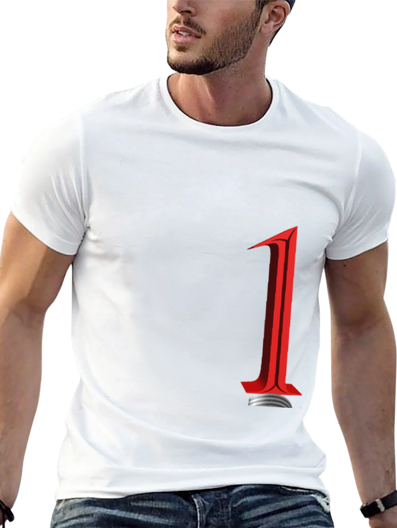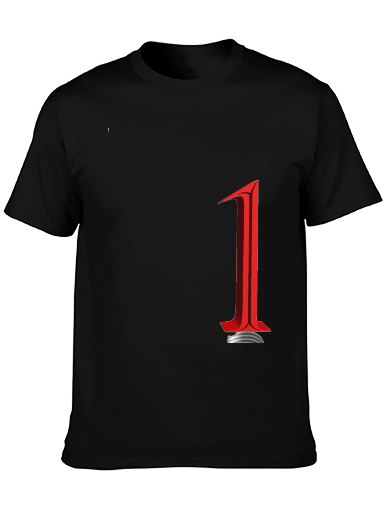 Make a statement with this eye-catching black tee featuring a prominent, artistic red "1" graphic. The design boasts a modern, slightly raised effect, giving it a dynamic 3D look. Crafted from what appears to be a comfortable, soft-touch fabric, this t-shirt is ideal for casual wear and expressing your individual style. Wear it to a casual outing, a relaxed gathering, or simply as an everyday wardrobe staple. The bold design makes it a conversation starter and an excellent way to showcase your unique personality. Comfortable, stylish, and expressive – a perfect addition to any modern wardrobe.