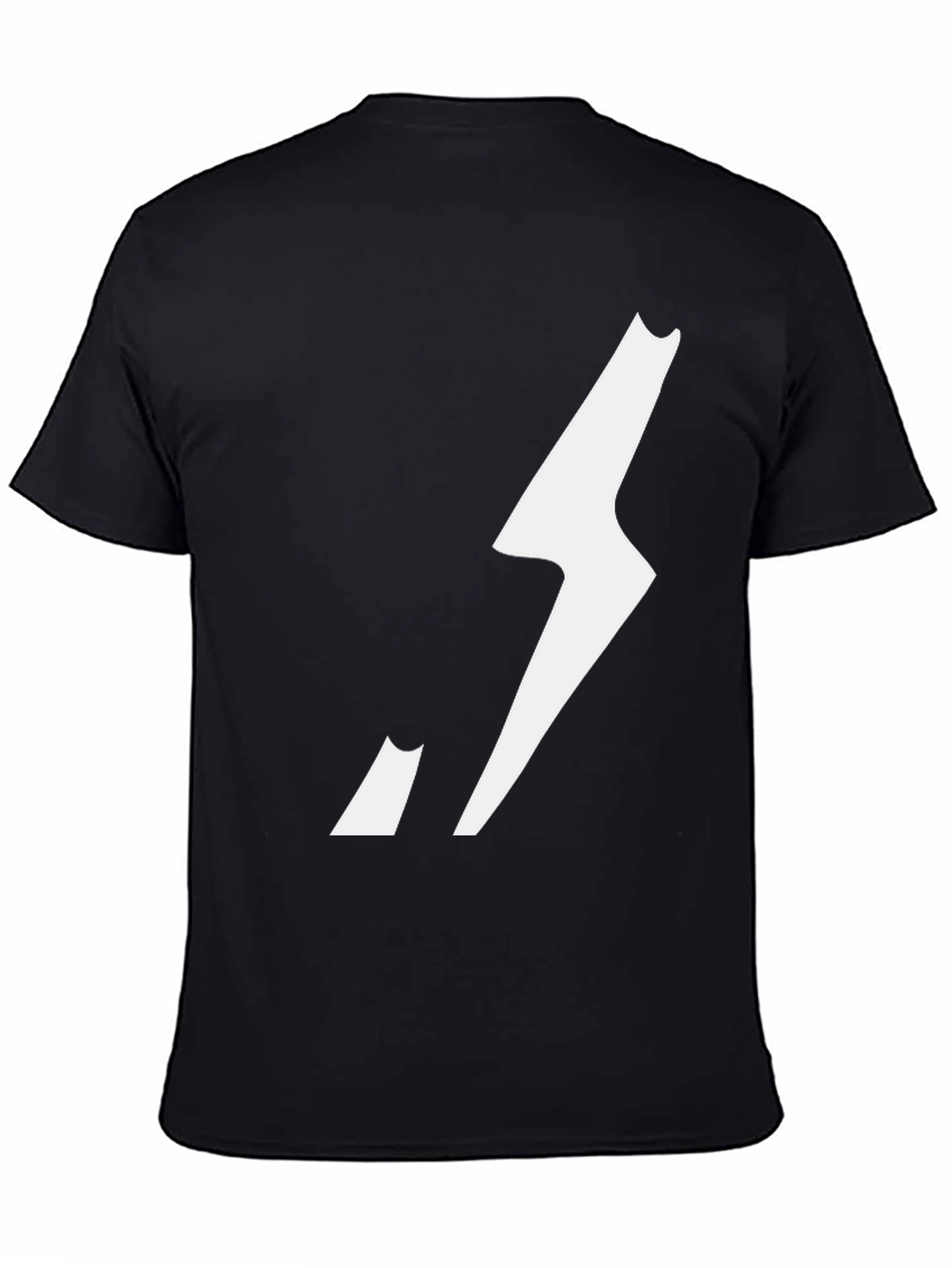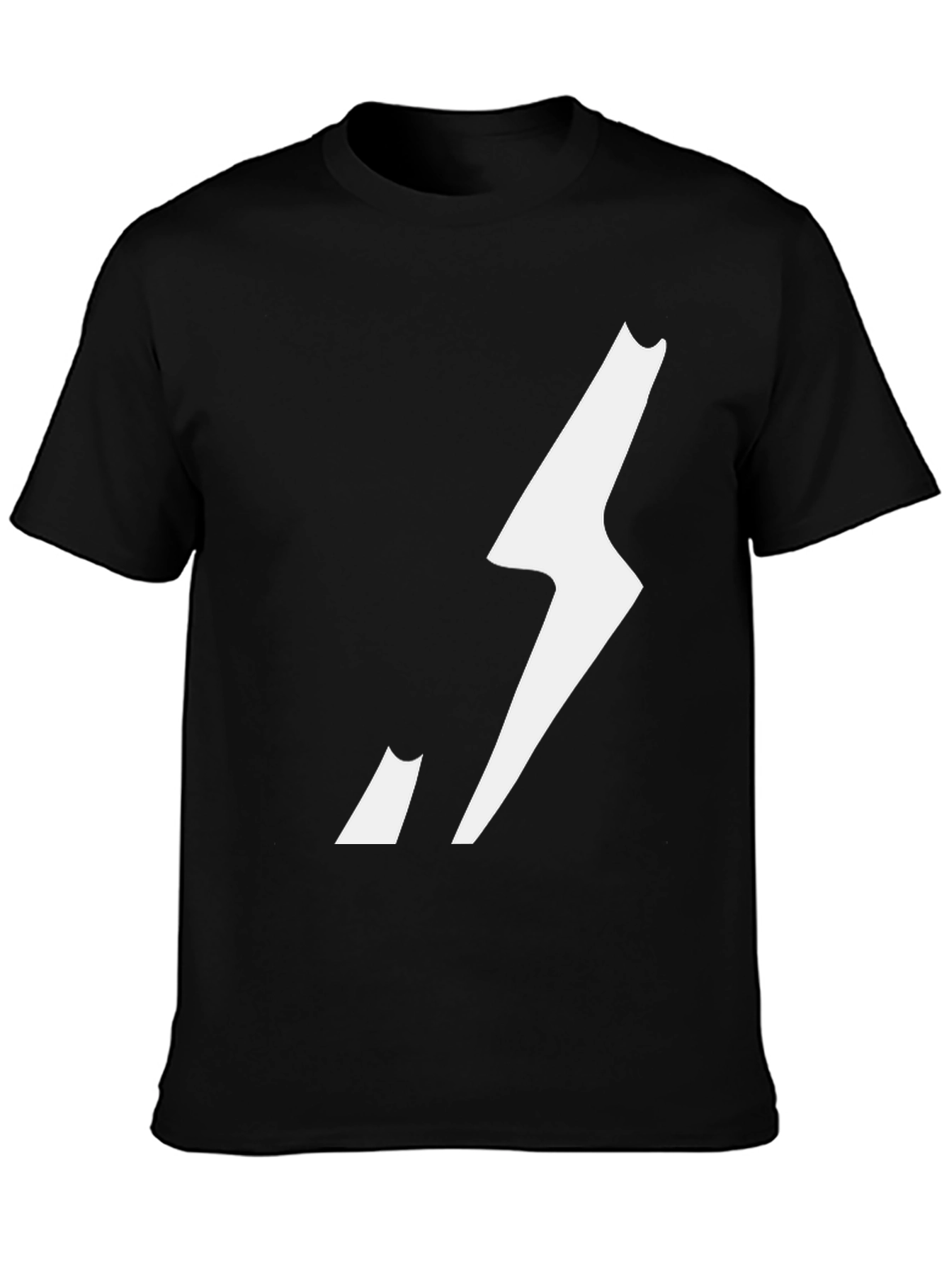 Make a statement with this striking black tee. Featuring a bold, stylized white lightning bolt graphic on the front, this shirt is perfect for adding an edgy vibe to your wardrobe. Crafted from comfortable fabric, it offers a soft feel and relaxed fit ideal for everyday wear. Dress it up with a jacket for a night out, or keep it casual with jeans for a laid-back look. This eye-catching tee is sure to turn heads and spark conversations. A must-have for those who appreciate bold designs and comfortable style.