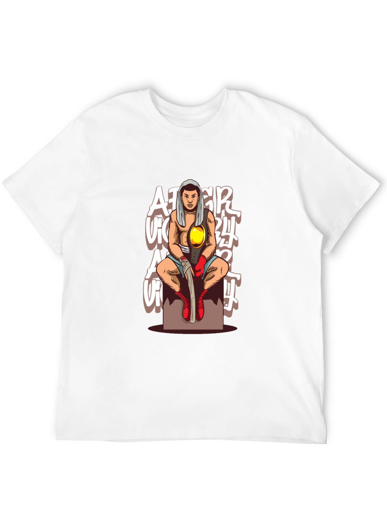Show off your love for boxing with this unique black t-shirt. Featuring a bold graphic of a boxer sitting after a victory with the words "After Victory" vertically aligned to the left and right of the boxer. The design is eye-catching and makes a statement. Made from a soft, breathable fabric, this tee ensures all-day comfort. Ideal for casual wear, gym sessions, or boxing enthusiasts. A perfect gift for boxing lovers or anyone who appreciates a unique and edgy style.