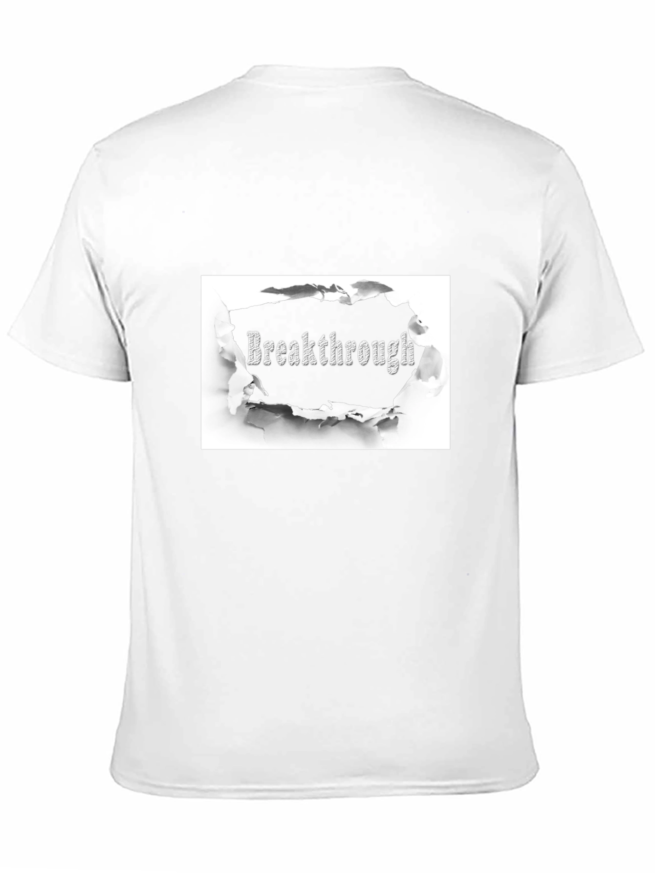 Make a statement with this striking black tee. This classic cut t-shirt features a bold 'Breakthrough' graphic that appears to be emerging through a torn paper effect. The stark contrast of the white graphic against the black background ensures the design stands out. Crafted from what appears to be a soft and comfortable fabric, this shirt is perfect for everyday wear. Wear it casually with jeans or dress it up with a blazer for a stylish edge. This tee is a great conversation starter and a unique addition to any wardrobe.