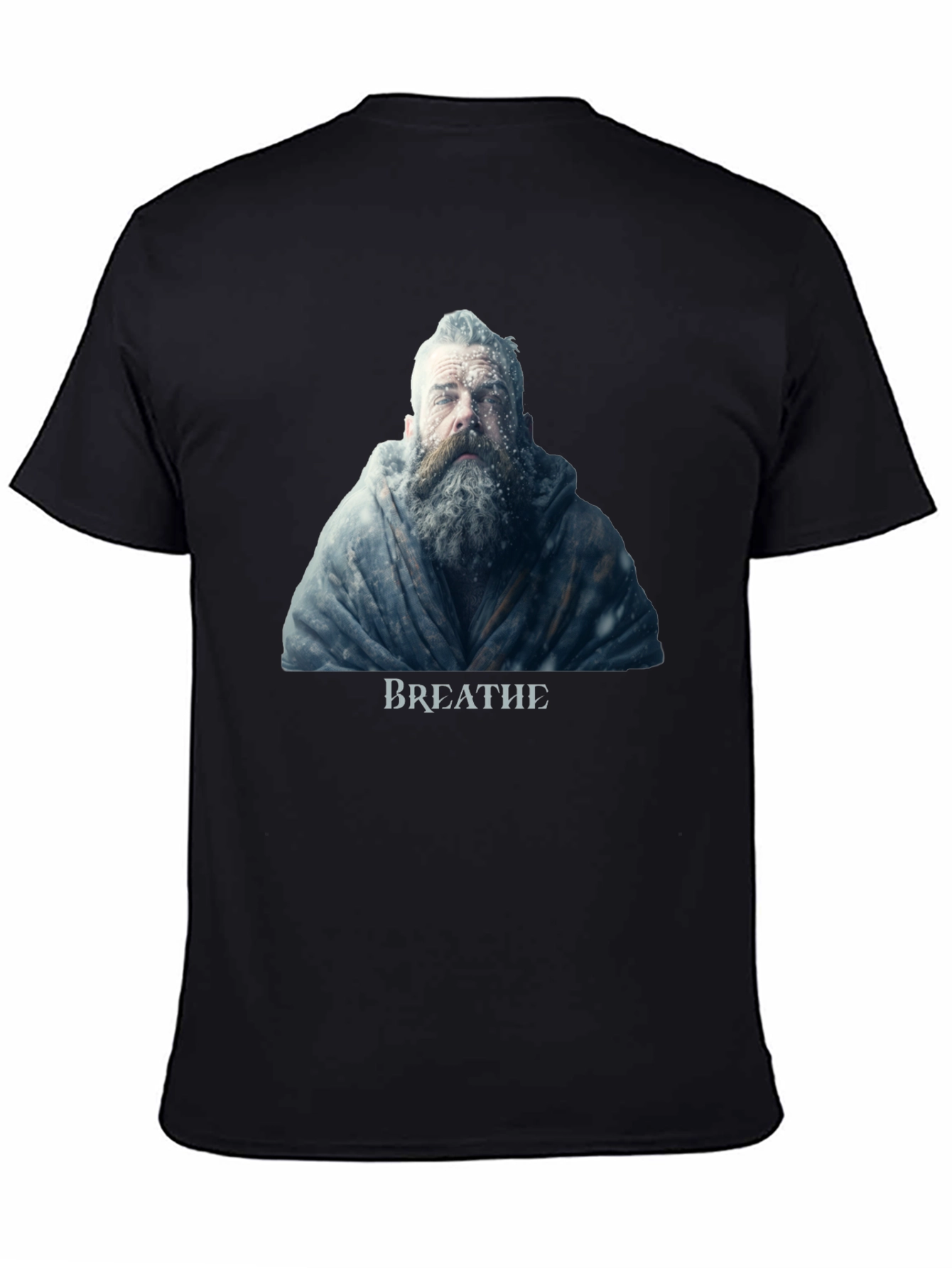 Embrace the elements with this unique "Breathe" graphic t-shirt. Featuring a striking image of a snow-covered man with a distinguished beard, this tee captures the spirit of resilience. The image is printed on a quality black fabric, offering a sharp contrast that makes the design truly pop. The comfortable fit and eye-catching graphic make this shirt a great choice for casual wear or a standout piece in your wardrobe. Wear it with pride and let the world know you're ready to face any challenge, taking it one breath at a time.