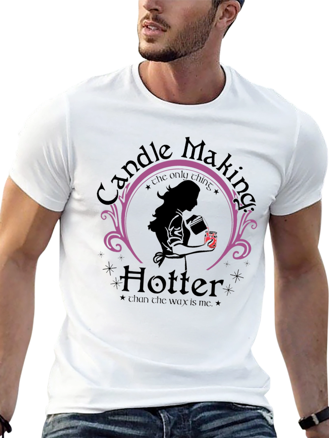 Show off your passion for candle making with this eye-catching black t-shirt. Featuring a unique design, it proclaims "Candle Making Hotter" within an ornate purple frame, alongside a silhouette of a candle maker. The clever saying, "the only thing hotter than the wax is me," adds a touch of humor. This tee is perfect for candle making enthusiasts, craft fair vendors, or anyone who loves unique apparel. Wear it to candle making classes, workshops, or simply as a fun everyday piece. Made from comfortable fabric, this shirt is sure to become a favorite in your wardrobe. Get yours today and let everyone know about your creative passion!