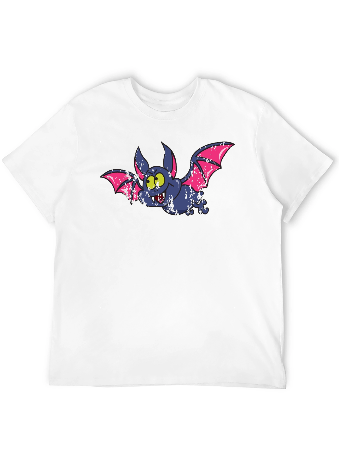 Show off your spooky side with this unique black t-shirt. Featuring a fun, cartoon-style bat graphic with vibrant pink wings and a playful expression, this shirt is sure to turn heads. The design has a cool, slightly distressed aesthetic, adding to its vintage appeal. Made from a comfortable-looking material, it’s perfect for casual wear, Halloween parties, or expressing your love for all things spooky. Pair it with jeans or shorts for a laid-back, stylish look. Grab yours today and let your inner bat fly!
