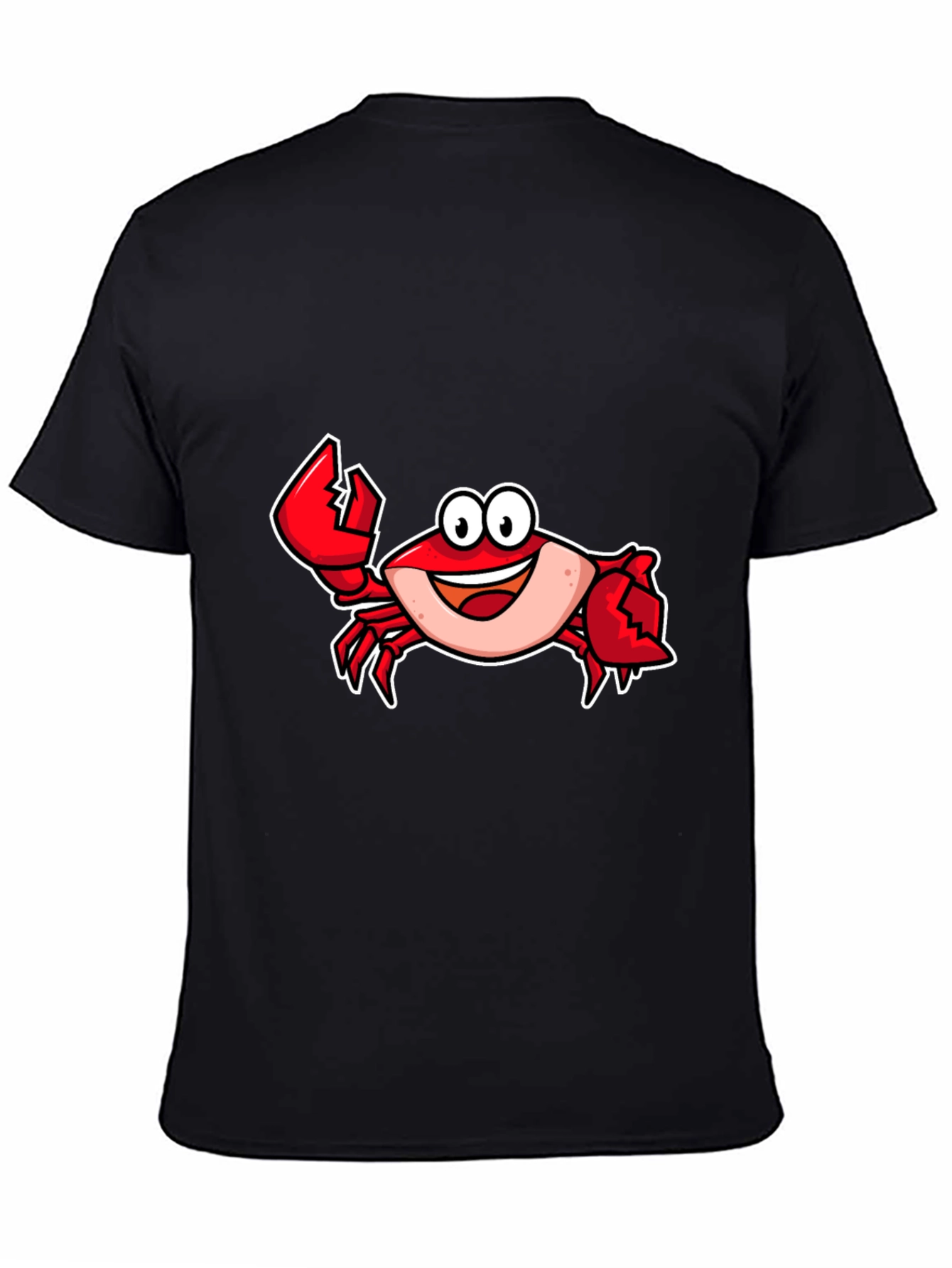 Showcase your fun side with this black T-shirt featuring a vibrant cartoon crab graphic. The cheerful red crab, with its wide smile and waving claw, adds a playful touch to your casual wardrobe. Made from what appears to be a soft, comfortable fabric, this tee is perfect for everyday wear. Its classic fit makes it suitable for various body types, and the quality print ensures the design stays vibrant after multiple washes. Wear it to the beach, parties, or simply while hanging out with friends to add a splash of personality to your outfit. A great conversation starter and a unique addition to any t-shirt collection.